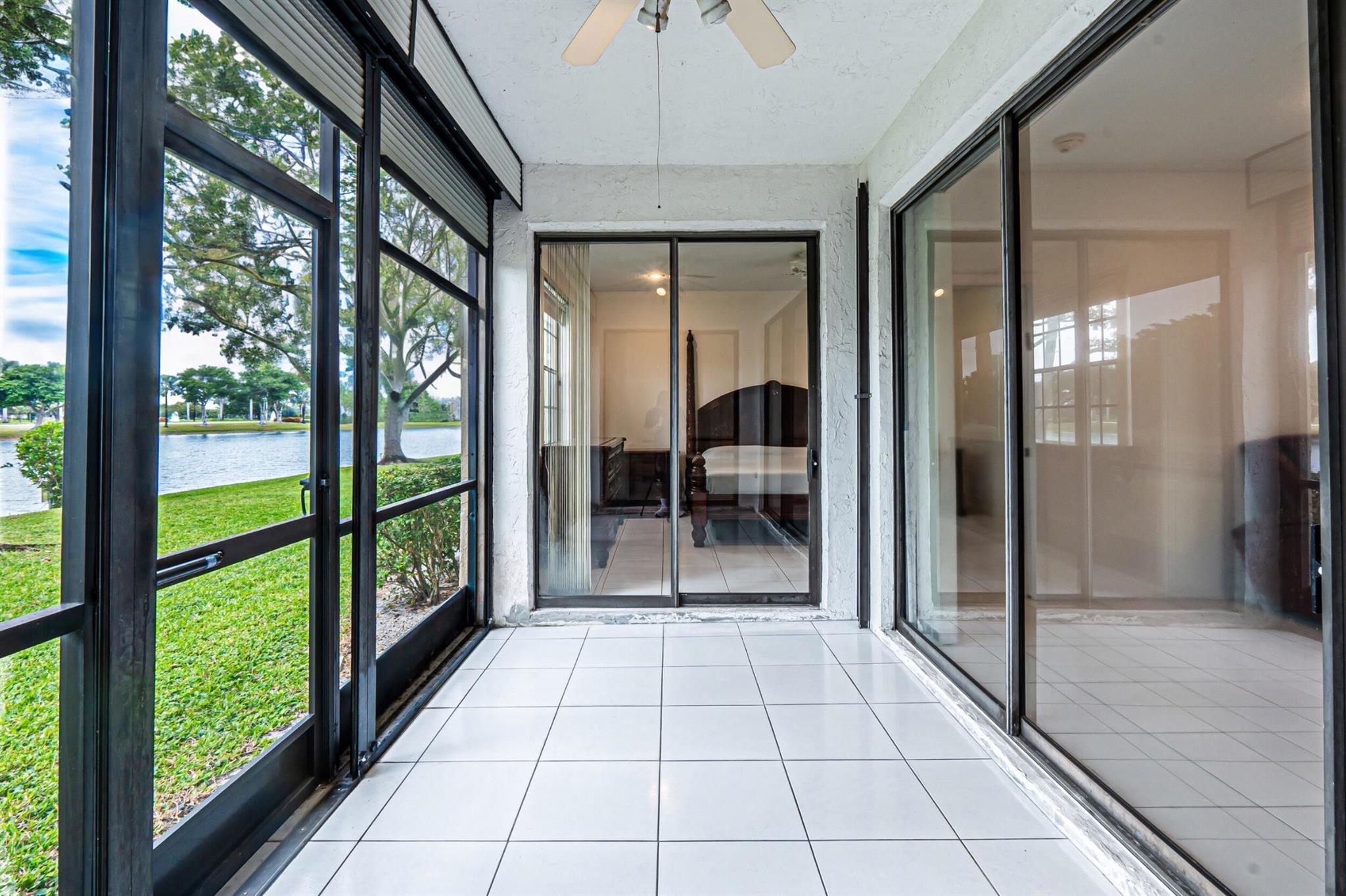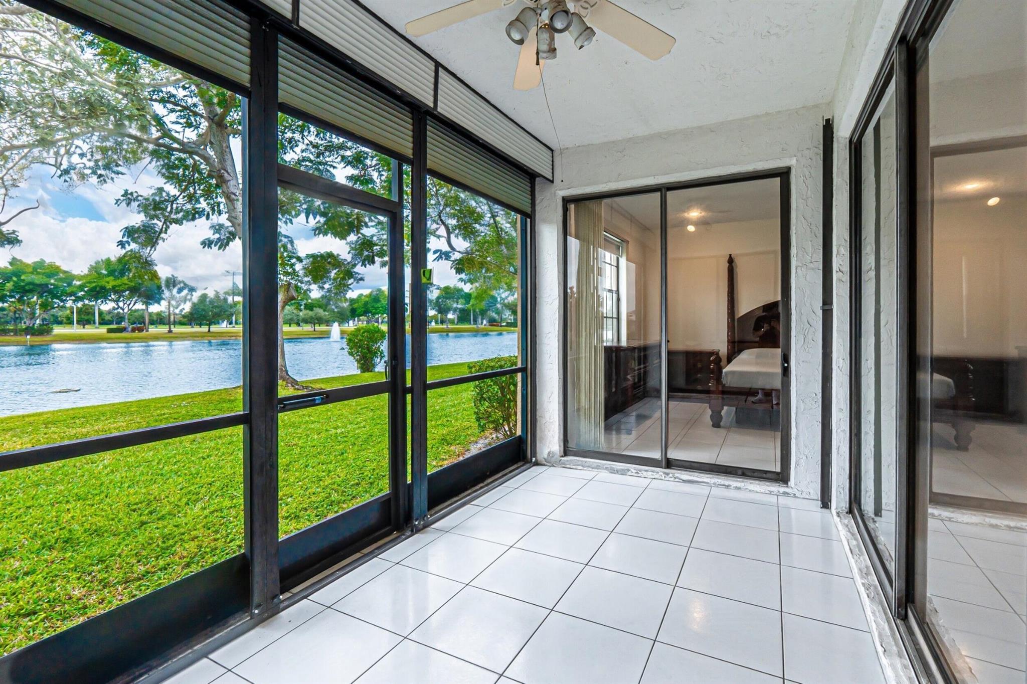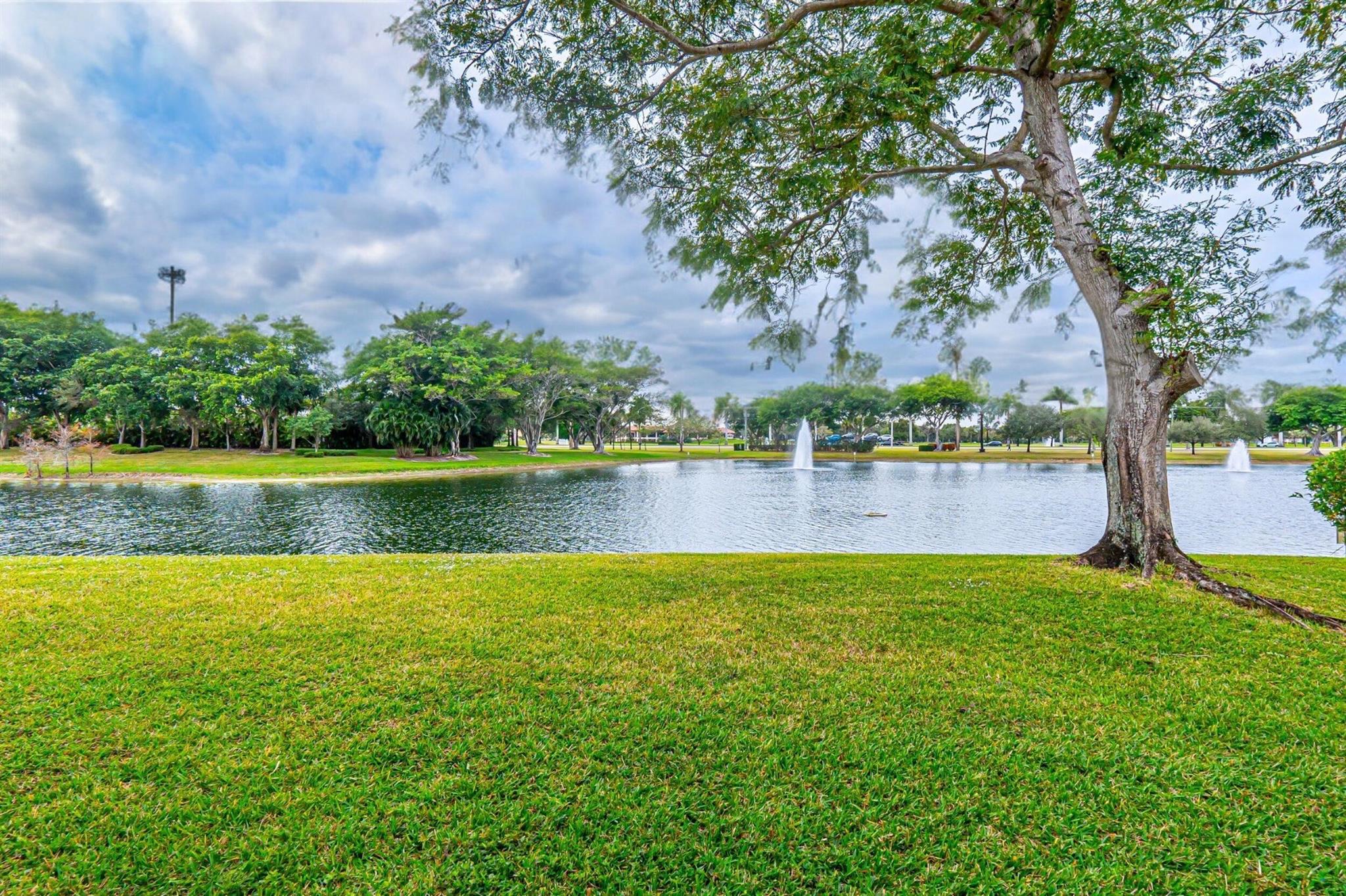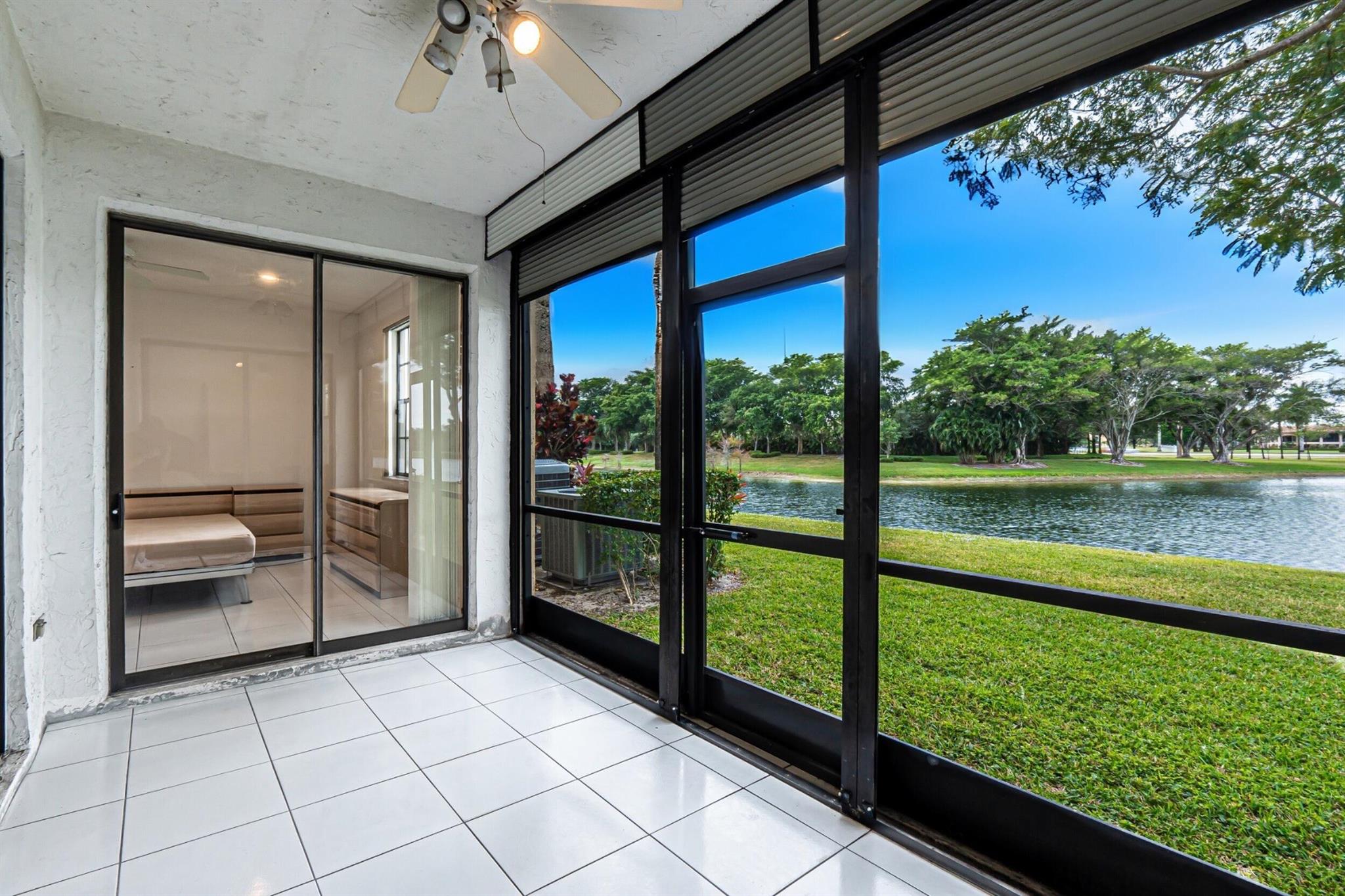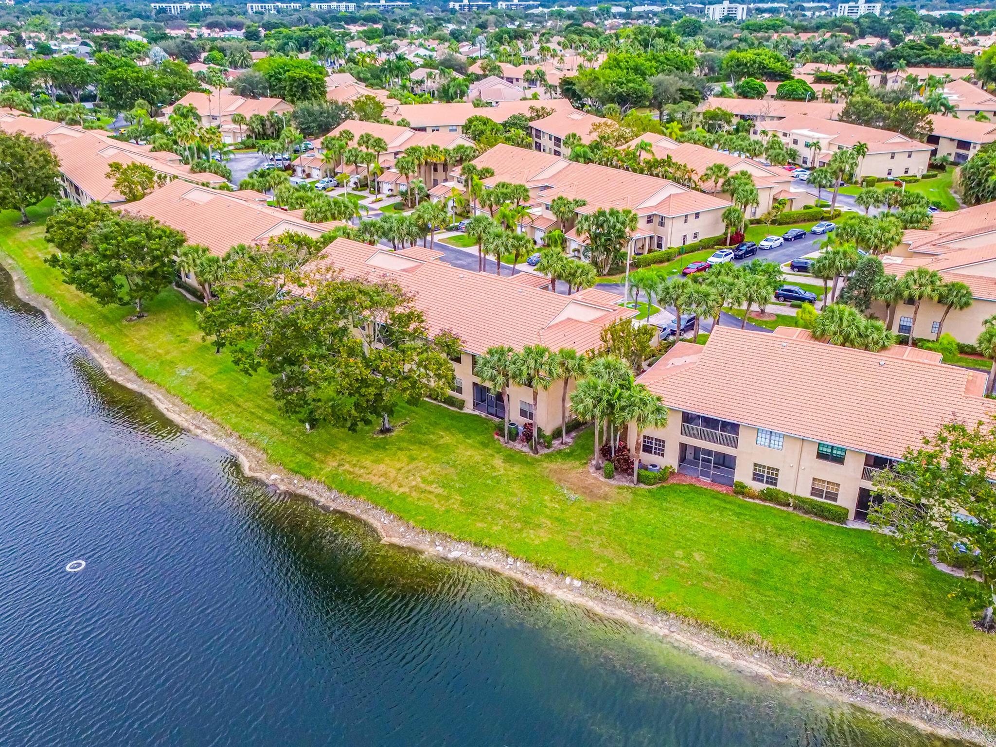 Enjoy lake views from this spacious 3BR/2BA 1st-floor corner unit with a private garage in Boca Pointe. Located west of I-95--no flood zone, no assessments, and not impacted by new condo laws. This home offers rare privacy with no shared walls on three sides and only one neighbor above. Features include a bright split floor plan, granite kitchen, formal dining, tile floors, laundry room, and enclosed patio overlooking the water. The primary suite boasts dual closets and a large ensuite bath. Set in a quiet 2-story building with access to the community pool. Boca Pointe membership not required. Prime location near everything!