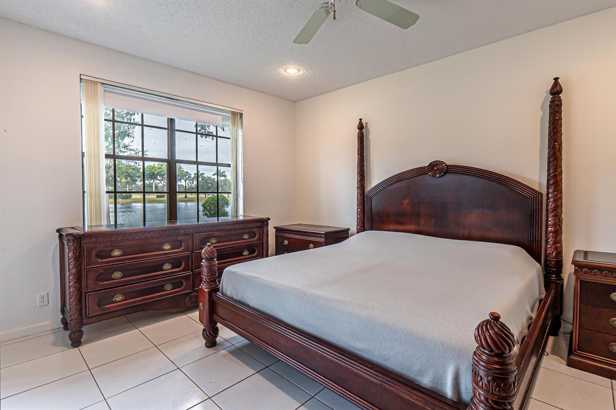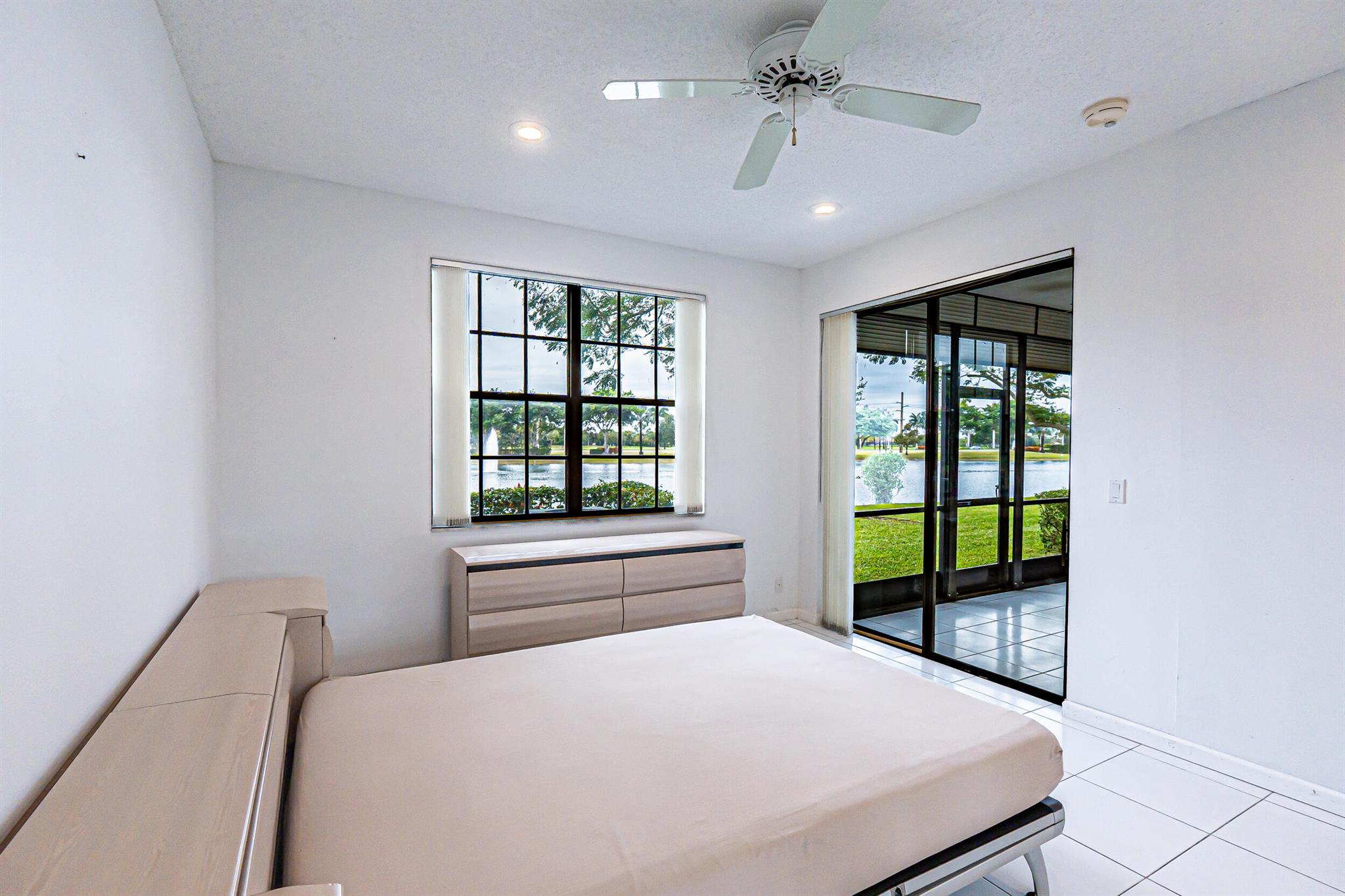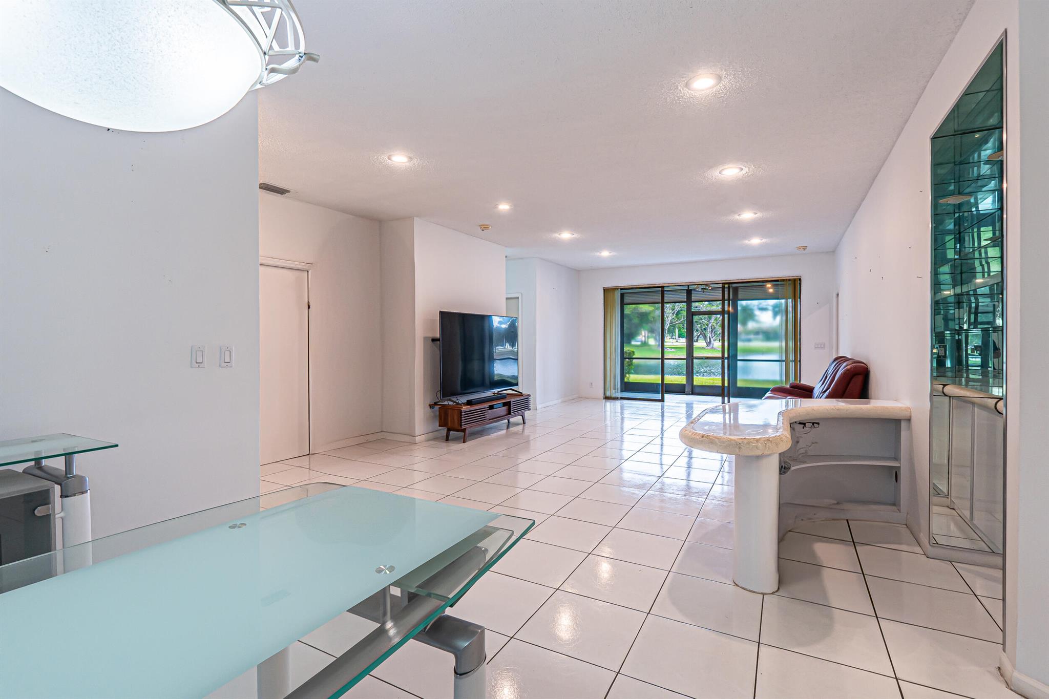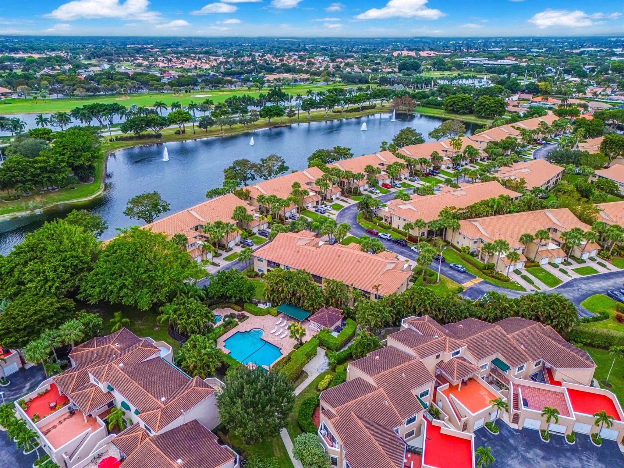Enjoy lake views from this spacious 3BR/2BA 1st-floor corner unit with a private garage in Boca Pointe. Located west of I-95--no flood zone, no assessments, and not impacted by new condo laws. This home offers rare privacy with no shared walls on three sides and only one neighbor above. Features include a bright split floor plan, granite kitchen, formal dining, tile floors, laundry room, and enclosed patio overlooking the water. The primary suite boasts dual closets and a large ensuite bath. Set in a quiet 2-story building with access to the community pool. Boca Pointe membership not required. Prime location near everything!