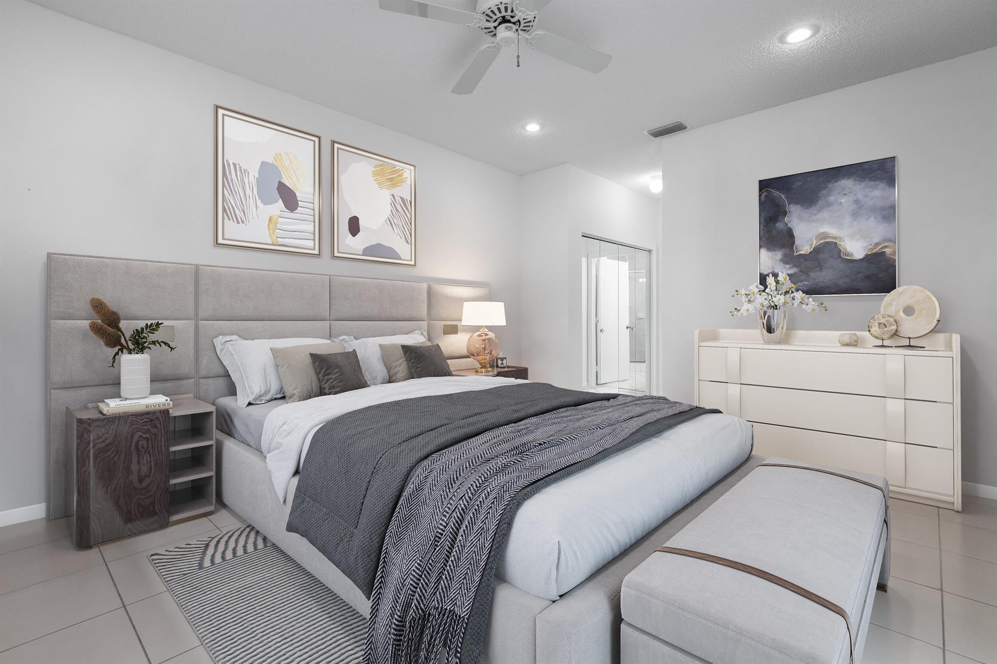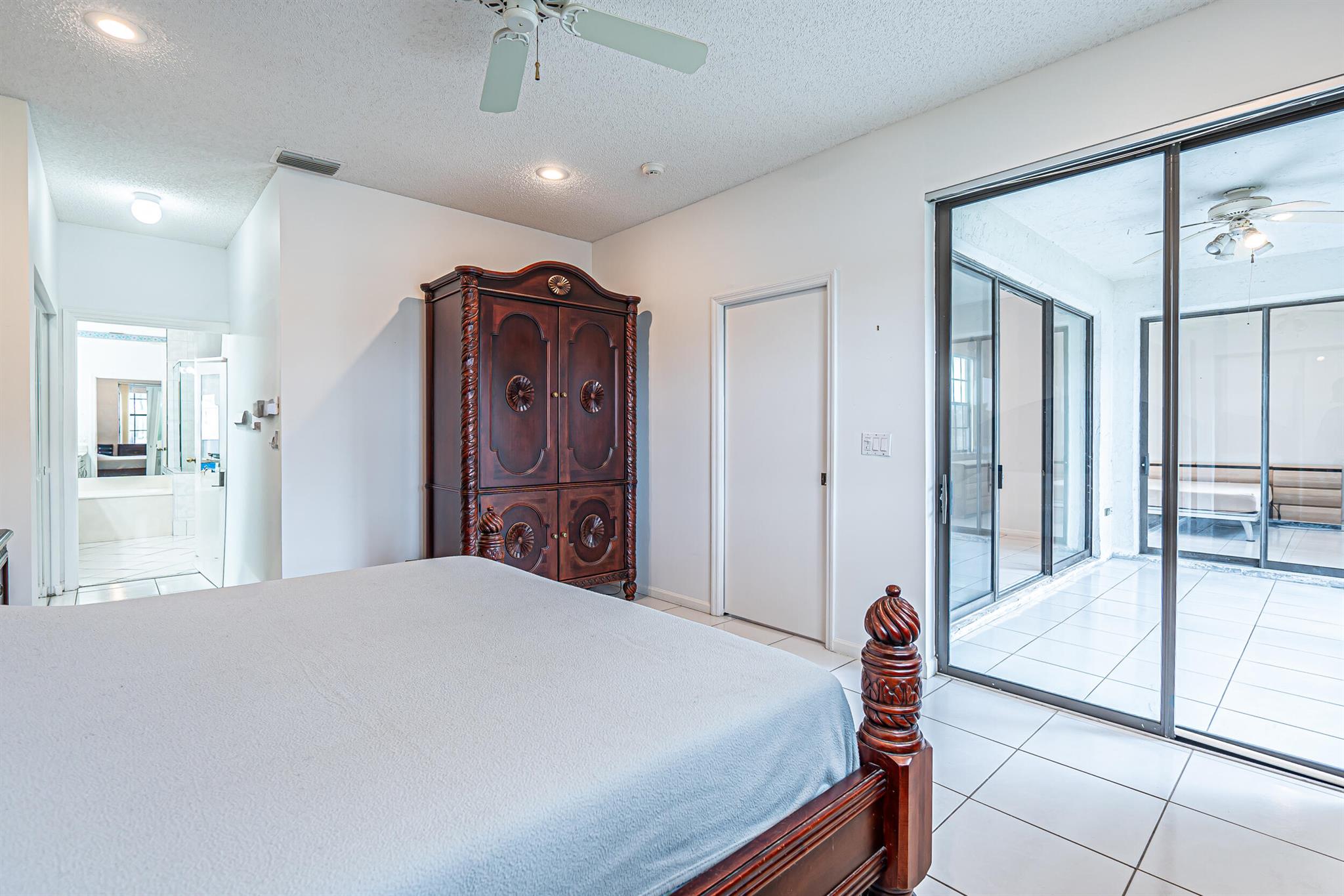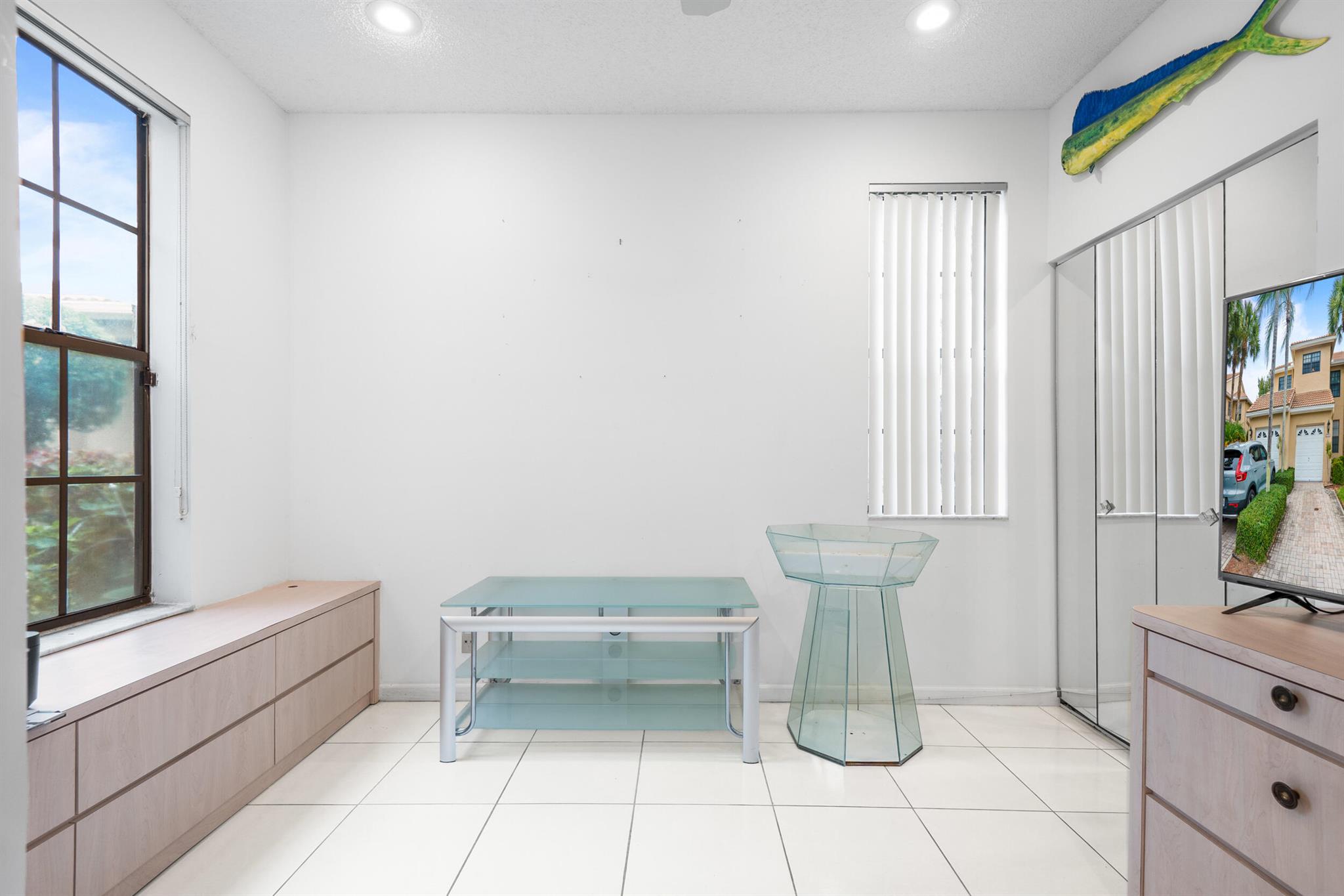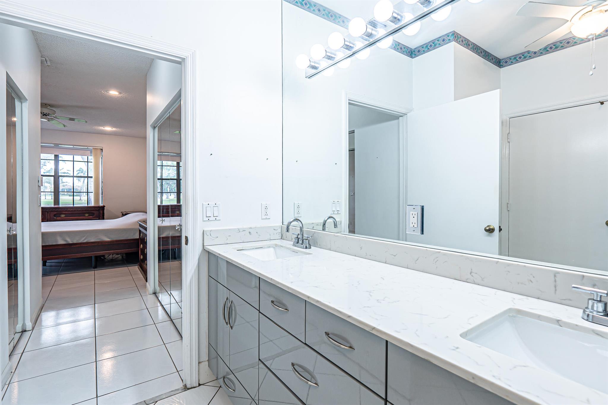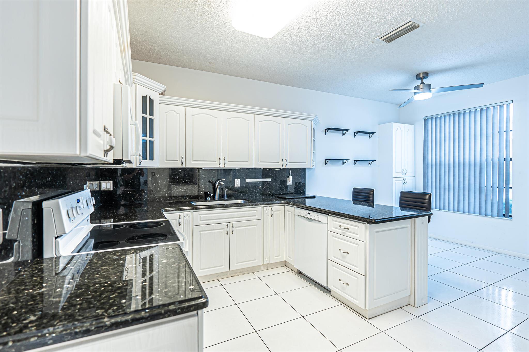 Enjoy lake views from this spacious 3BR/2BA 1st-floor corner unit with a private garage in Boca Pointe. Located west of I-95--no flood zone, no assessments, and not impacted by new condo laws. This home offers rare privacy with no shared walls on three sides and only one neighbor above. Features include a bright split floor plan, granite kitchen, formal dining, tile floors, laundry room, and enclosed patio overlooking the water. The primary suite boasts dual closets and a large ensuite bath. Set in a quiet 2-story building with access to the community pool. Boca Pointe membership not required. Prime location near everything!