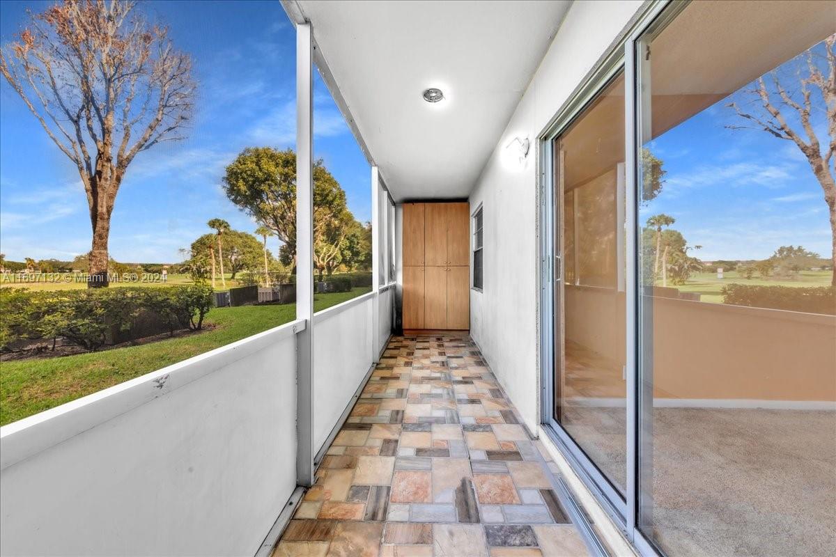 This beautifully updated 2 bed, 1.5 bath unit features modern cabinets and elegant granite countertops. Enjoy the spacious laminate floors throughout, with plush carpeting in the bedrooms for added comfort. The unit offers a peaceful golf course view and is conveniently located within walking distance to the community pool. This vibrant 55+ community offers an exceptional lifestyle with a range of amenities, including a clubhouse, golf course, tennis and pickleball courts, card room, billiards, sauna, multiple pools, gym, library, theater, and much more. Perfect for those seeking an active and social lifestyle!