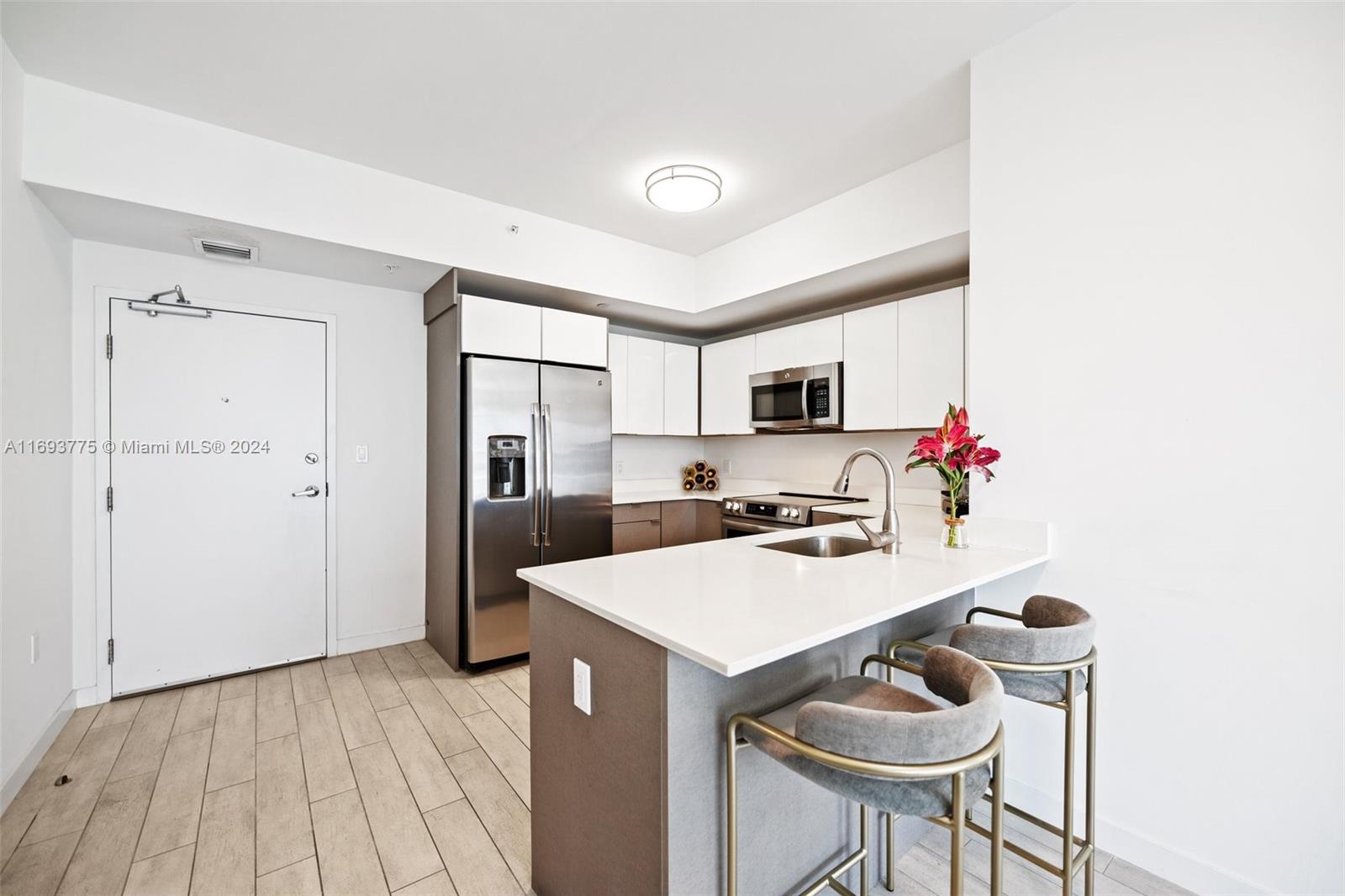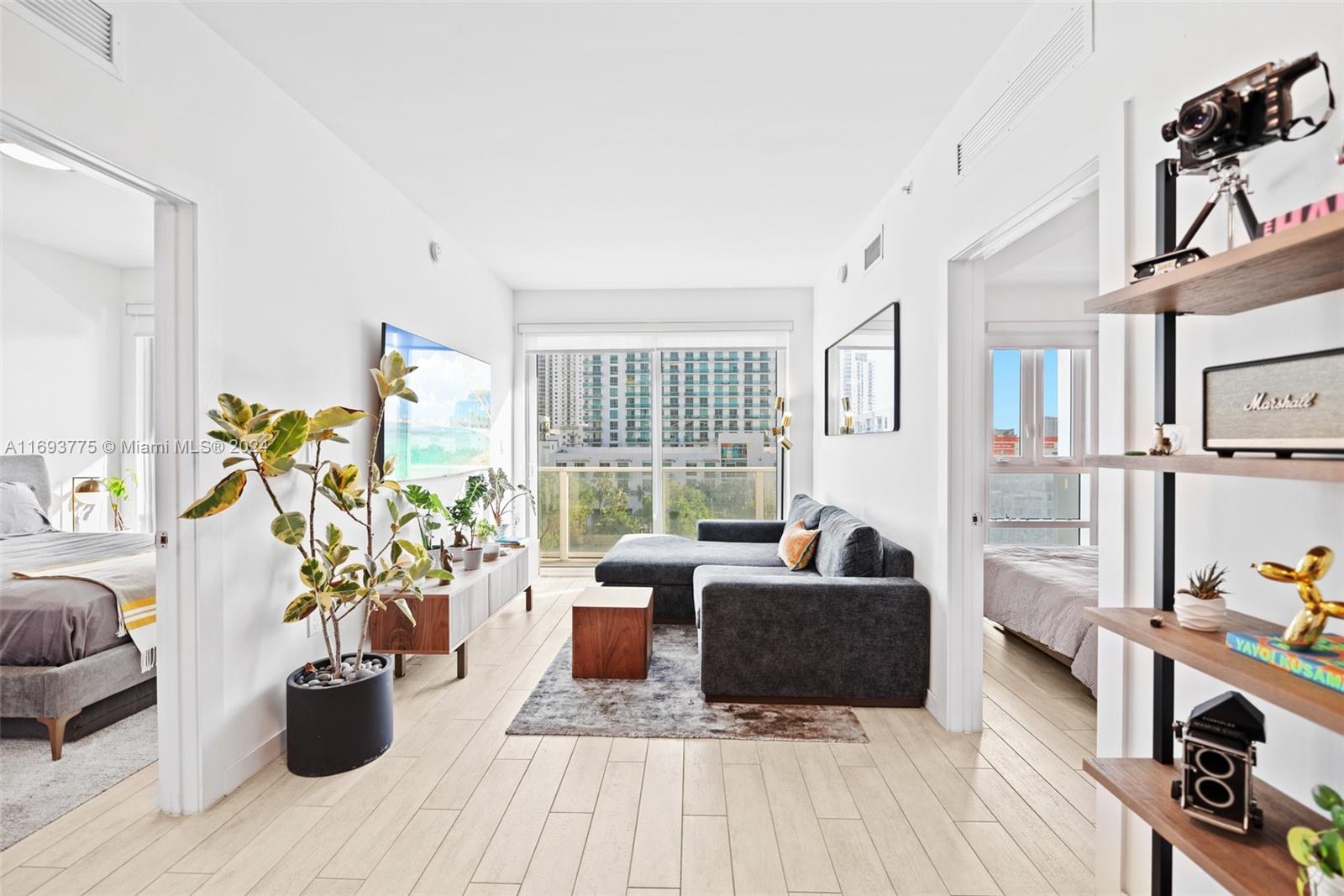 Welcome to 26 Edgewater, a boutique condo building completed in 2018 by Stripey Real Estate Development and Modus Architects. This 2-bed, 2-bath unit offers 815 Sqft of stylish comfort, featuring 9-foot ceilings, impact-resistant windows, and sleek porcelain wood flooring. Both bedrooms include blackout shades for added privacy and comfort. The Italian-inspired kitchen boasts quartz countertops, stainless steel appliances, and quality cabinetry. The bathrooms feature frameless glass showers and designer fixtures. Step onto the 180 sq. ft. balcony to enjoy sunsets or create your personal retreat. Building amenities include a rooftop heated pool, fitness center, and lounge. Located near Wynwood, the Design District, and Miami Beach, this condo is priced to sell—schedule your showing today!