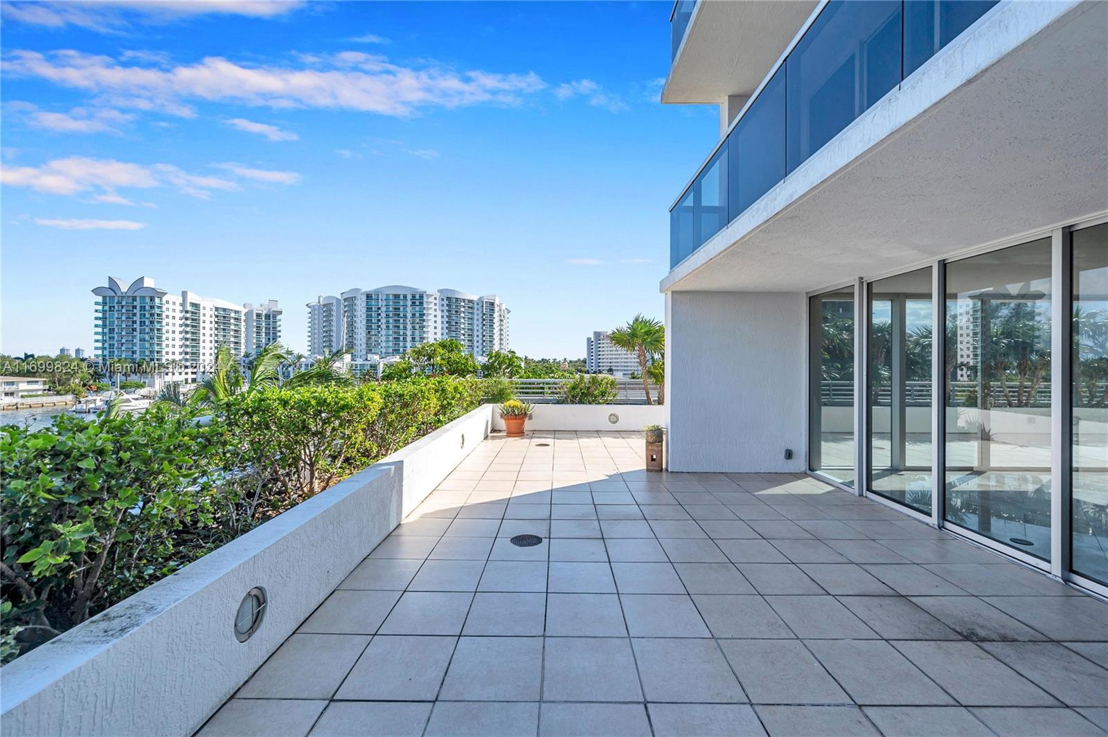 NONE OTHER LIKE IT! 3-bed plus den corner lanai residence with a one of a kind 3,200 sq ft wrap-around terrace! The ONLY residence in the building offering this expansive outdoor living space! Designed for ultimate privacy with no neighbors on three sides, this home provides breathtaking city, water, and lush green views. Open concept & light flooded living area with marble floors, stainless steel appliances, granite counters, and a steel-top kitchen island. In an exclusive boutique condo with three units per floor, enjoy rooftop amenities: pool, gym, BBQ area, sauna, and community room. Boat slips available. Newly updated & move-in ready, this waterfront gem between Miami Beach and Miami represents serene urban living. Buy the best value unit in North Bay Village before being priced out!