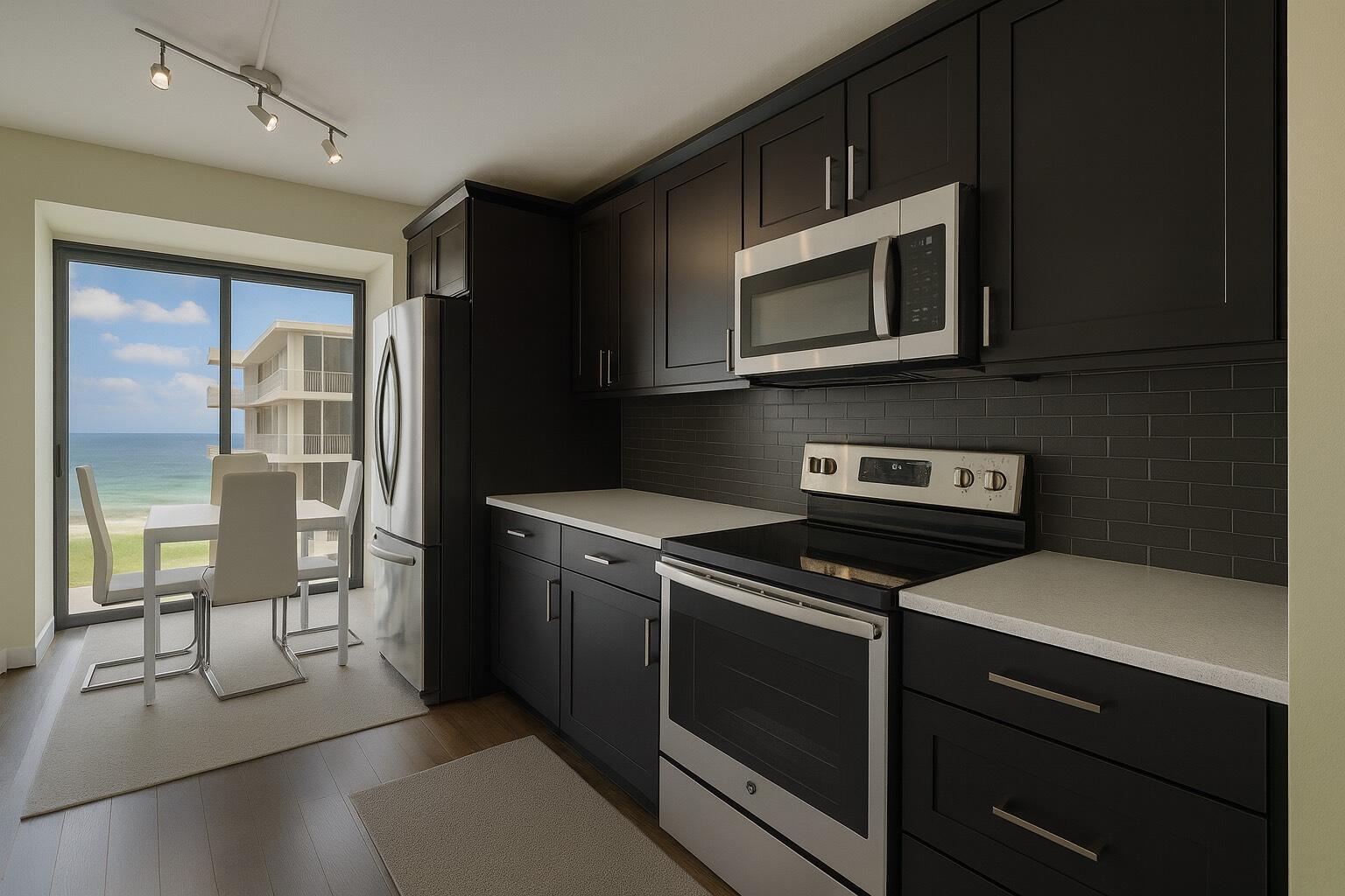This stunning 2 bedroom 2 bath Penthouse with a split floor plan offers breathtaking Ocean Views from every room in the Condo. With its Eastern exposure, natural light fills the space throughout the day. Step onto the expansive balconies stretching over 30 feet and immerse yourself in the beauty of coastal living. This fully upgraded, move-in-ready property boasts: Modern kitchen, granite countertops, newer stainless steel appliances and ample storage. Spacious Bedrooms, large walk in closets and beautiful finishes. Updated bathrooms for comfort and style. Laminate flooring throughout, bathrooms tiled. Complete hurricane shutters, newer AC. and 1 garage parking space. Enjoy your own private beach, heated pool. sauna, clubhouse, fitness room, and storage, Conveniently located near