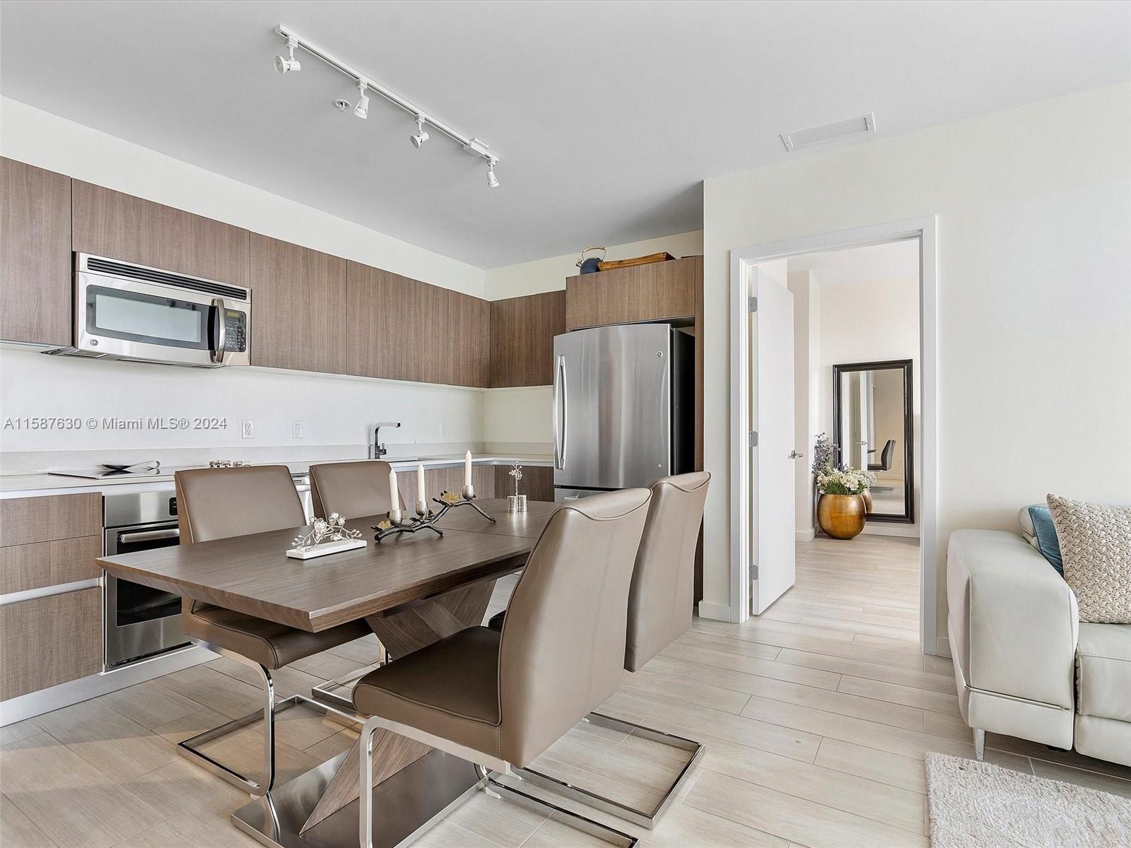 Experience luxury living in this stunning 2 bedroom, 2 bath, plus den corner unit located in a newer boutique building built in 2016 in the heart of Brickell, Miami. Nestled in a highly desirable area, this unique residence offers unparalleled convenience and style, directly across from Simpson Park and The Underline, and just moments away from Mary Brickell Village. This rarely available corner unit boasts a spacious open floor plan with a large dining area and an expansive balcony, offering breathtaking western views of the city and spectacular sunsets. The open kitchen features beautiful cabinetry, quartz countertops, and premium stainless steel appliances. Ceramic floors flow seamlessly throughout the unit, adding to the modern and sophisticated aesthetic.