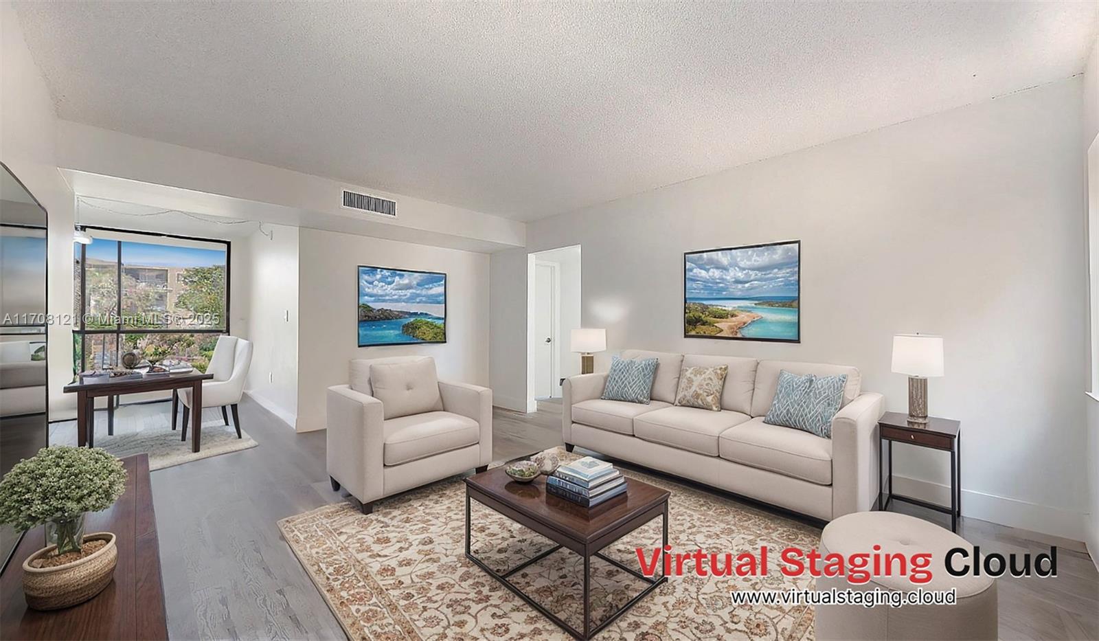 Master Insurance with 100% cover Remodeled and updated 3/2 Apt. As you step inside you will be greeted by a spacious and airy living room filled with natural light. The neutral color floor adds a touch of warmth. All new doors. New kitchen cabinets and new countertops with ample storage space. The open concept design allows you to interact with guests while cooking. Screened balcony looks to the pool and garden areas. Horizons West Property Owners Association $171.90. Horizon West Condominium No 2 Association $533.10. Seller to pay Special Assessment at closing.