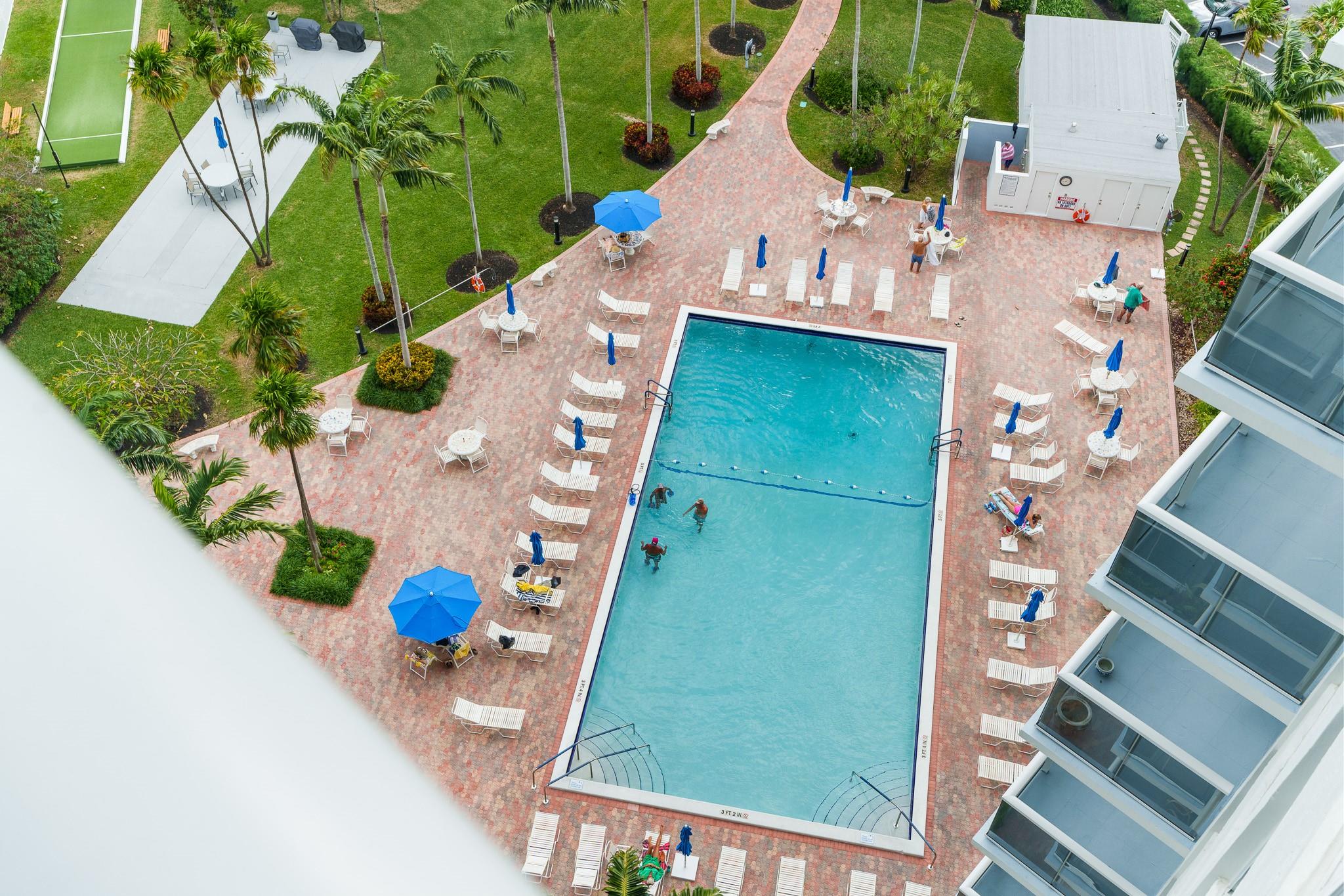 This bright southeast apartment offers sweeping views of the ocean, downtown, and the tropically landscaped pool area. The building has completed a multi-million-dollar renovation, passing their milestone inspections, installing fire sprinklers and alarm, updating halls, new roof, and new glass balconies! Enjoy complete peace of mind with an updated bathroom, tile flooring throughout, and impact windows and door. Coral Ridge Towers East offers all the conveniences of quaint beachside community living, with the peace of mind of 24/7 security and full service professional onsite management. The building offers an array of excellent amenities including a heated pool, and gym.