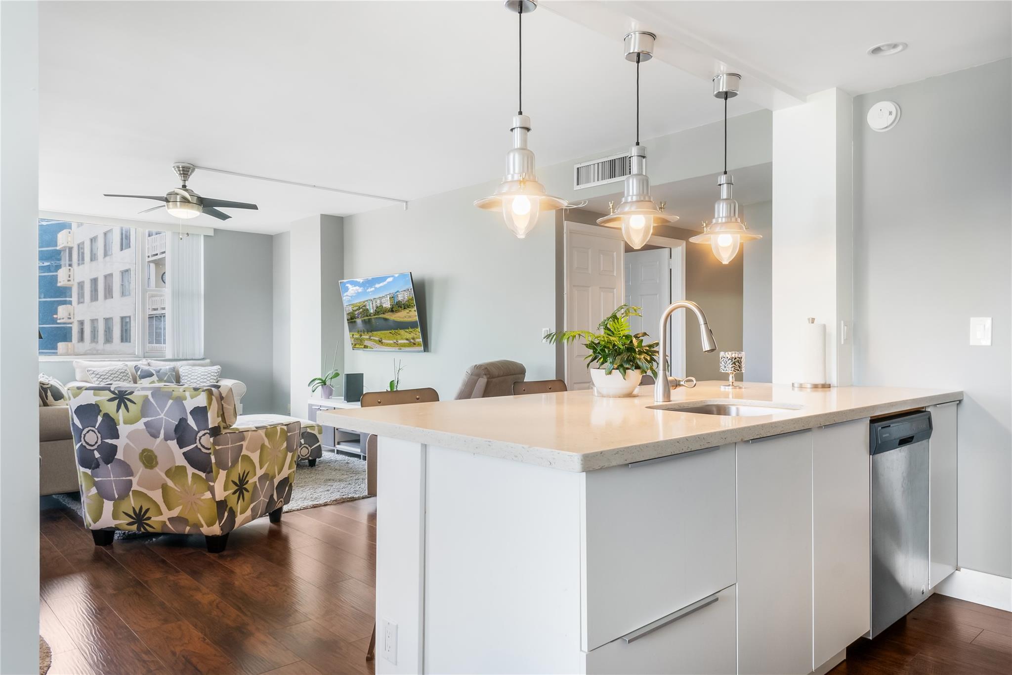 Beautiful 2 Bedroom 2 Bath Corner Unit with Amazing Views of Hard Rock Hotel & Hard Rock Stadium. In The Heart of Hollywood! Updated Kitchen with quartz counter tops, Eat-In Kitchen, luxurious white cabinets and stainless-steel appliances. Lots of Natural Light Throughout the Unit. Living/Dining Room. Lots Of Storage. Large Primary Bedroom, Two Walk-In Closets Built-Ins, Ceiling Fan and Curtain Rods. En-Suite Bathroom. Second Bedroom, Ceiling Fan & Built-In wall unit closet. Upgraded Hall Bathroom modern quart Countertops and Sink vessels, White Cabinets, Lighted Mirror, Updated Shower & Updated Fixtures. Best managed BLDG 24/7 security. Enjoy an area that offers nice walking trails, Community Pool, BBQ. Close to Hardrock Hotel & Casino & Hard Rock Stadium, Hollywood Beach, walk to Temples