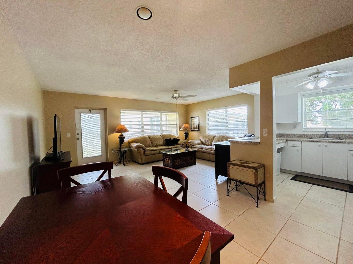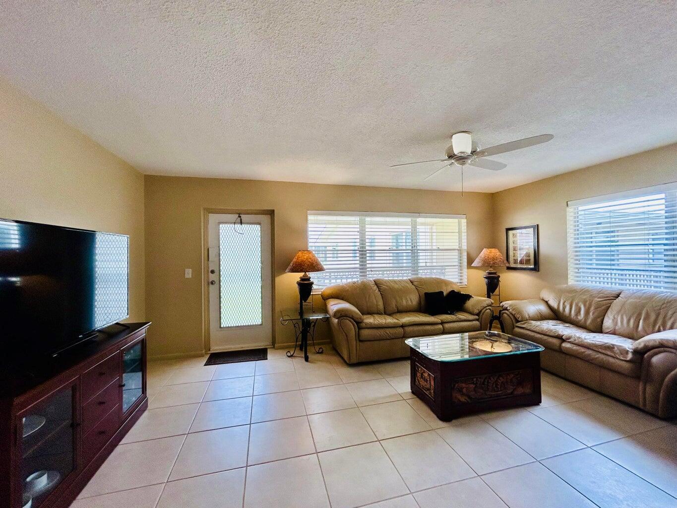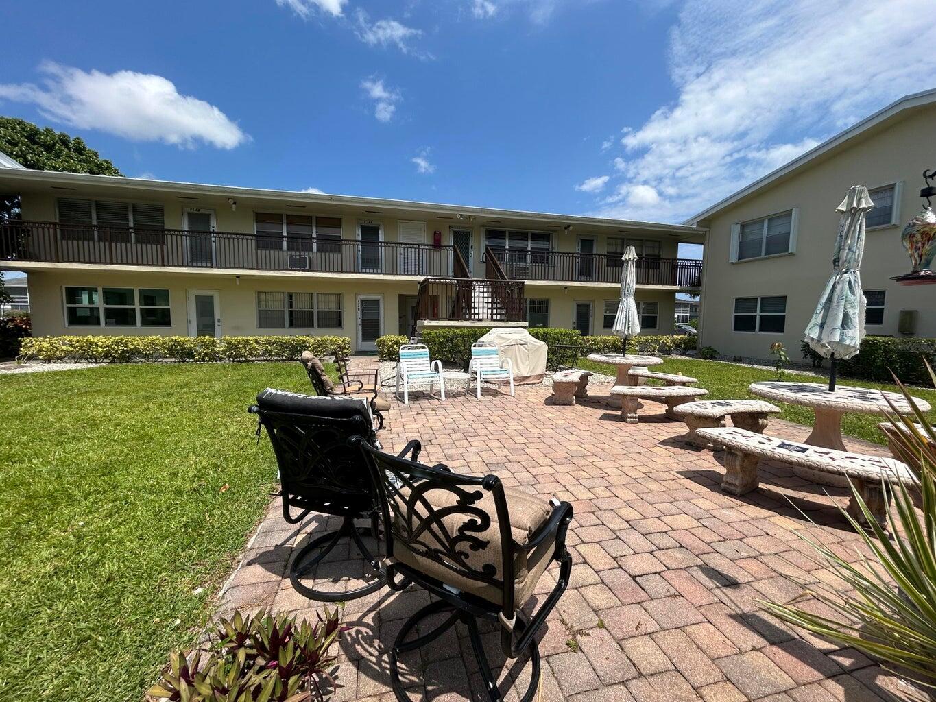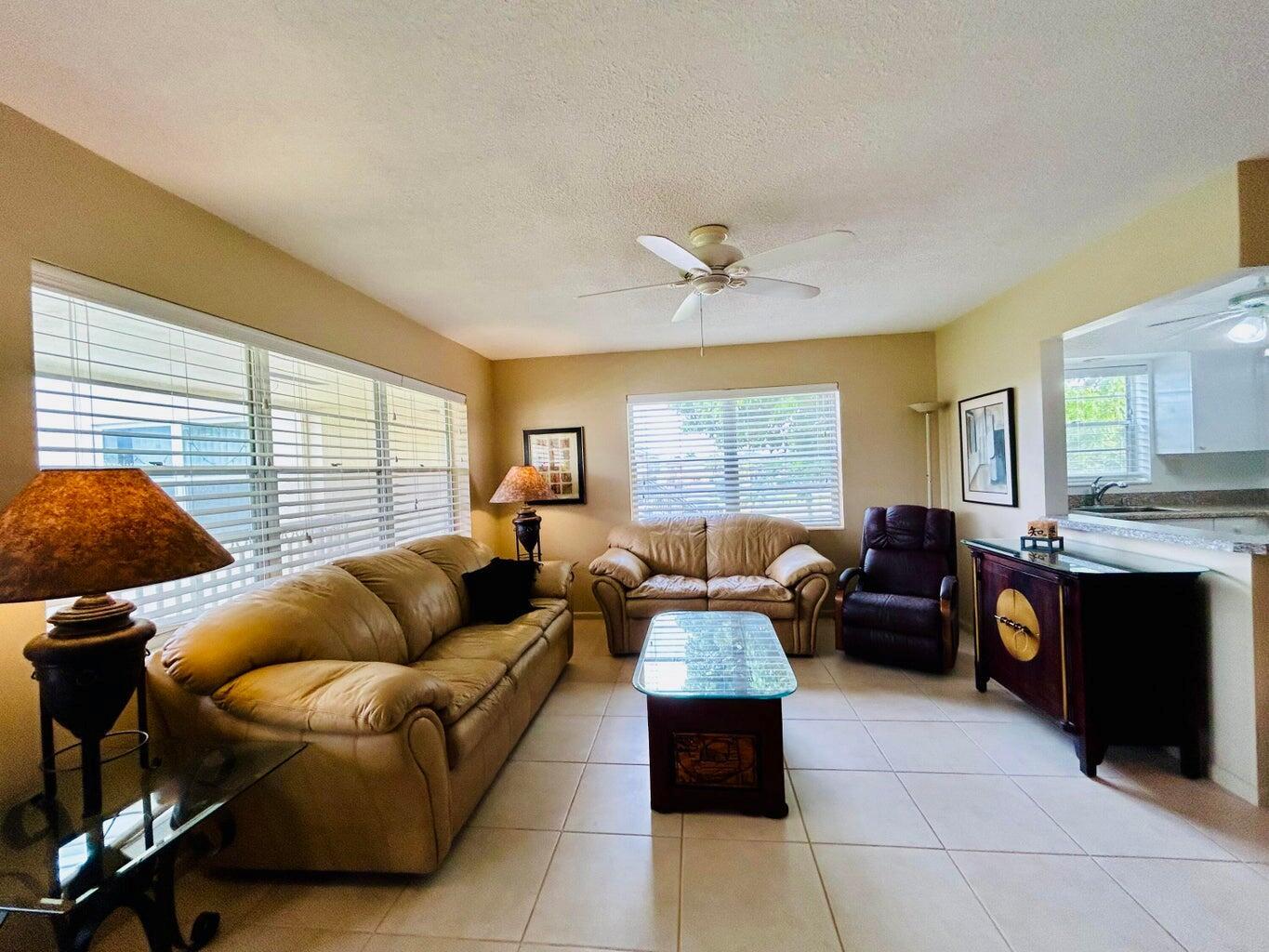 LIGHT AND BRIGHT FURNISHED SECOND FLOOR CORNER 1 BED 1 1/2 BATHS CONDO. MOVE IN READY. BOASTS BRAND NEW CENTRAL AIR, EXTRA WINDOWS, TILED THROUGHOUT.AND A FULLY FURNISHED TURNKEY HOME SUPER CLEAN GREAT ASSOCIATION HAS NEW ROOF, NEW RAILINGS IS FRESHLY PAINTED AND HAS A PRIVATE PATIO TO RELAX ON. NO CHARGE FOR DOING LAUNDRY. COME AND ENJOY RESORT STYLE LIVING IN THIS GATED COMMUNITY FOR ADULTS 55+. Clubhouse with theater, shows, movies, craft and card rooms, billiards, aerobics, yoga, and dance classes.local bus for errands/shopping both within & outside The Village GREAT LOCATION: close to shops, restaurants, PBI airport and beach