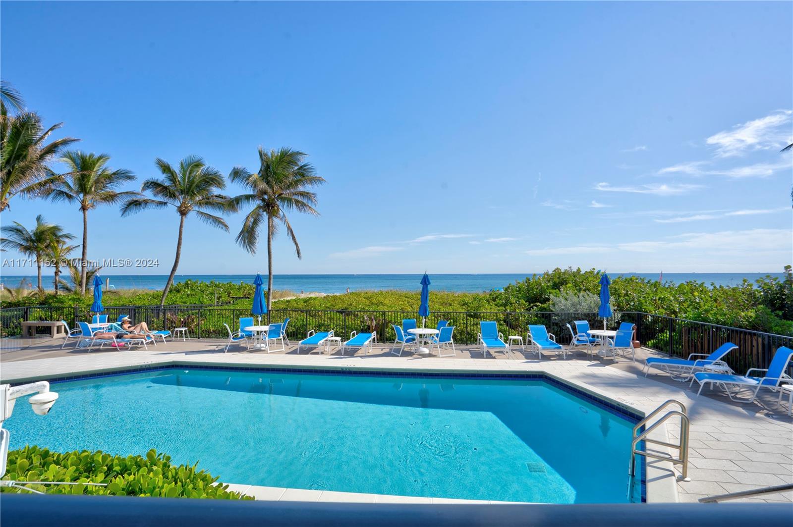 SPECTACULAR DIRECT AND PANORAMIC OCEAN VIEWS FROM THIS RARELY AVAILABLE THREE BEDROOM CONDO IN THIS FULLY RENOVATED BOUTIQUE BLDG. ON THE SAND. LARGEST FLOOR PLAN WITH 1750 SF. NEWER AIR HANDLER AND ROOFTOP AC. NEWER WATER HEATER AND ELECTRICAL PANEL. COMPLETE HURRICANE IMPACT WINDOWS AND DOORS. 2 GARAGE PARKING SPACES. WASHER/DRYER IN UNIT. 40 YEAR CERTIFIED. FULL CONCRETE RESTORATION COMPLETE, NEW ROOF. LOTS OF AMENITIES INCLUDING HEATED POOL WITH NEW PATIO FURNITURE, GYM, PARTY ROOM, BILLIARD, BBQ AREA. DIRECT ACCESS TO BEACH. ONE MAXIMUM 20 POUND DOG WELCOME. CAN BE RENTED FIRST YEAR OF OWNERSHIP, 3 MONTHS MIN. ONCE A YEAR. BEST VALUE IN THE AREA.