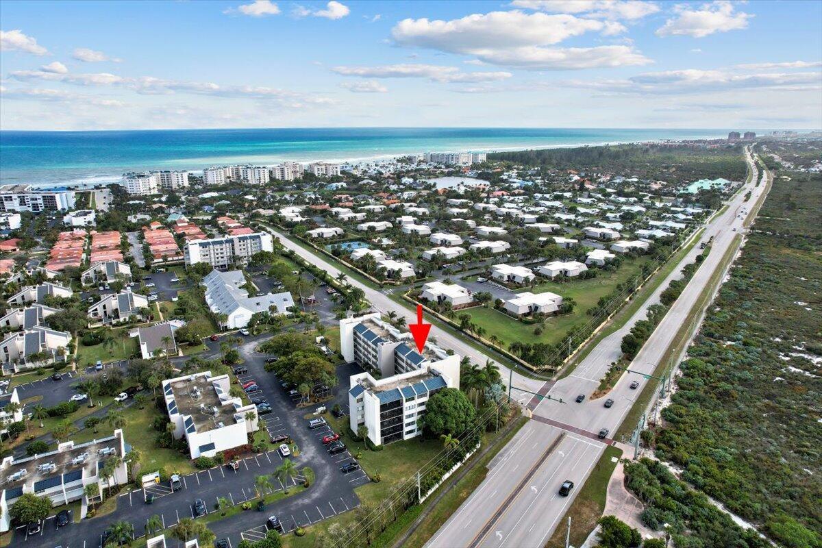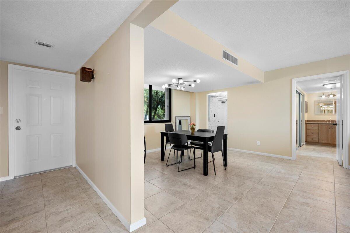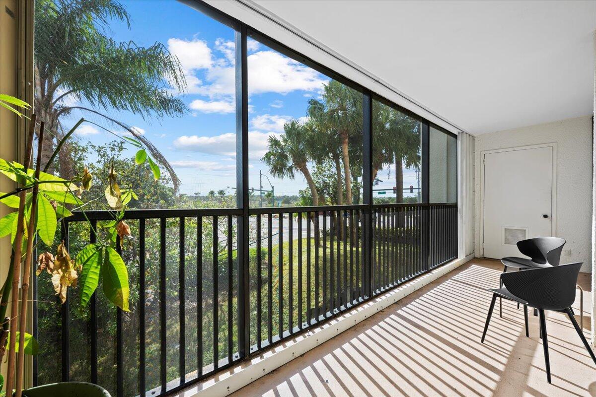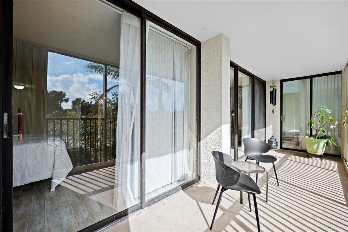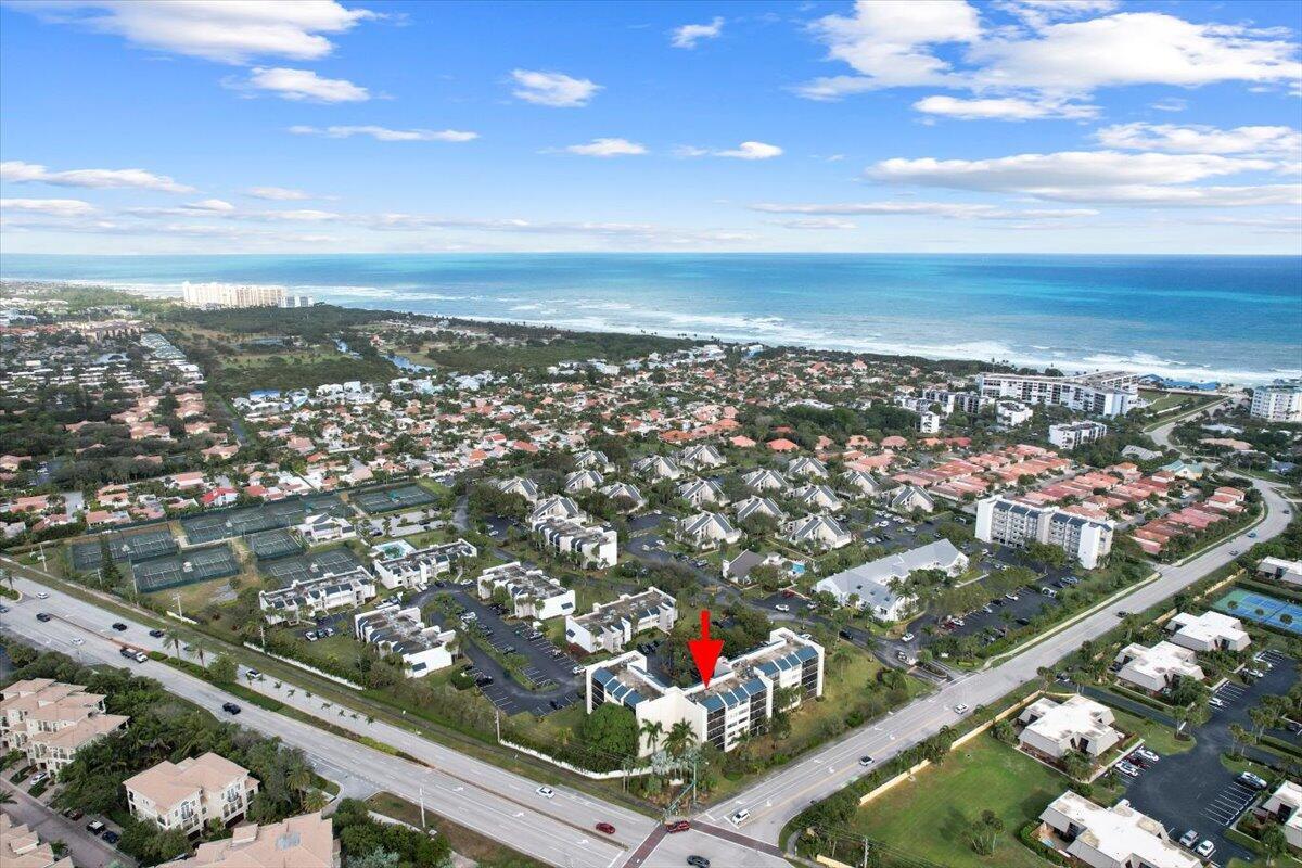 Experience coastal living at Jupiter Ocean & Racquet Club, located steps from Jupiter's picturesque beaches. This spacious 2-bedroom, 2-bathroom condo spans 1500 square feet within a secure building featuring a lobby and elevator. The property boasts a 20-foot screened balcony accessible from both the primary bedroom and the living room, ideal for entertainment and relaxation. The kitchen offers a separate exterior access door and is equipped with stainless steel appliances, replaced in 2019. Additionally, a full-size washer and dryer (2019) enhance daily convenience. Recent upgrades include Impact Windows. There are Accordion Shutters on the sliders, knockdown ceilings, and a newer A/C unit and water heater installed in 2019, housed in a separate outside closet for added interior space.
