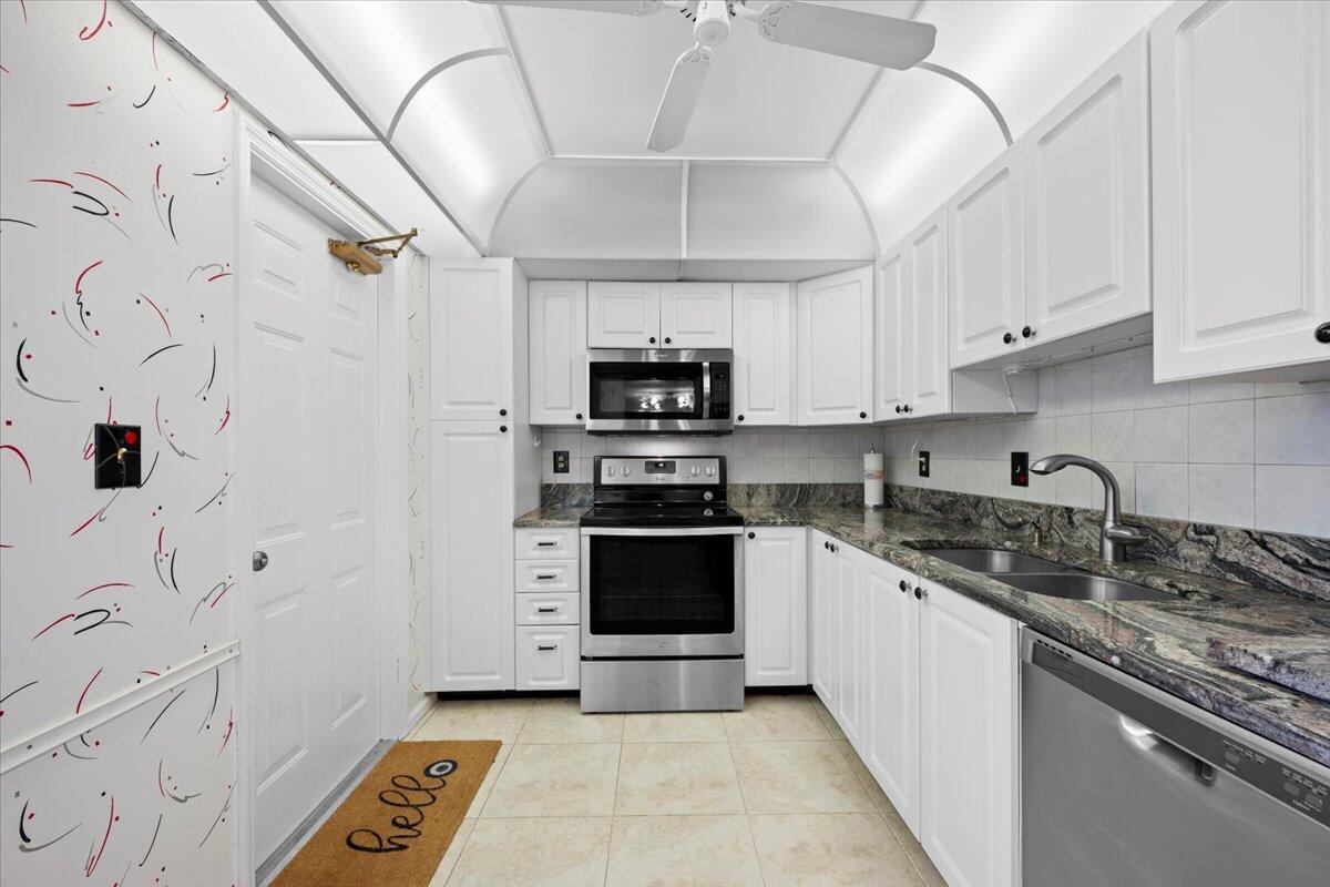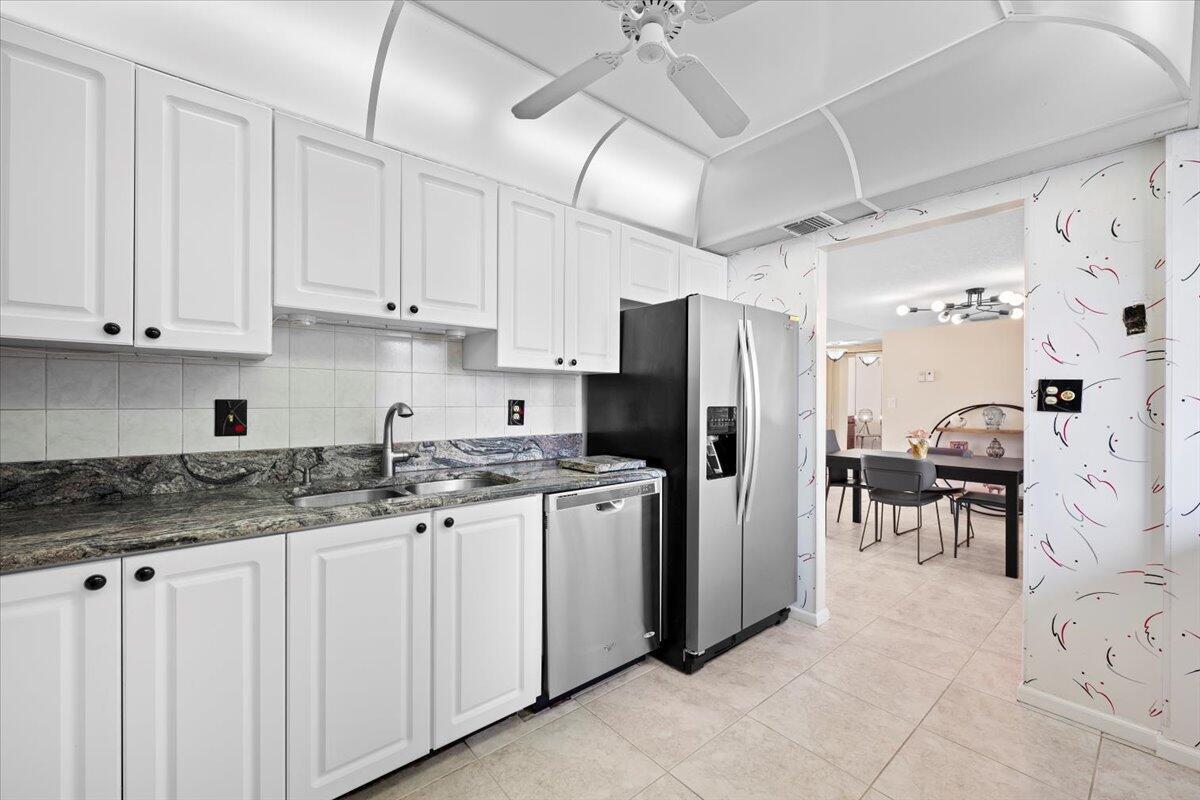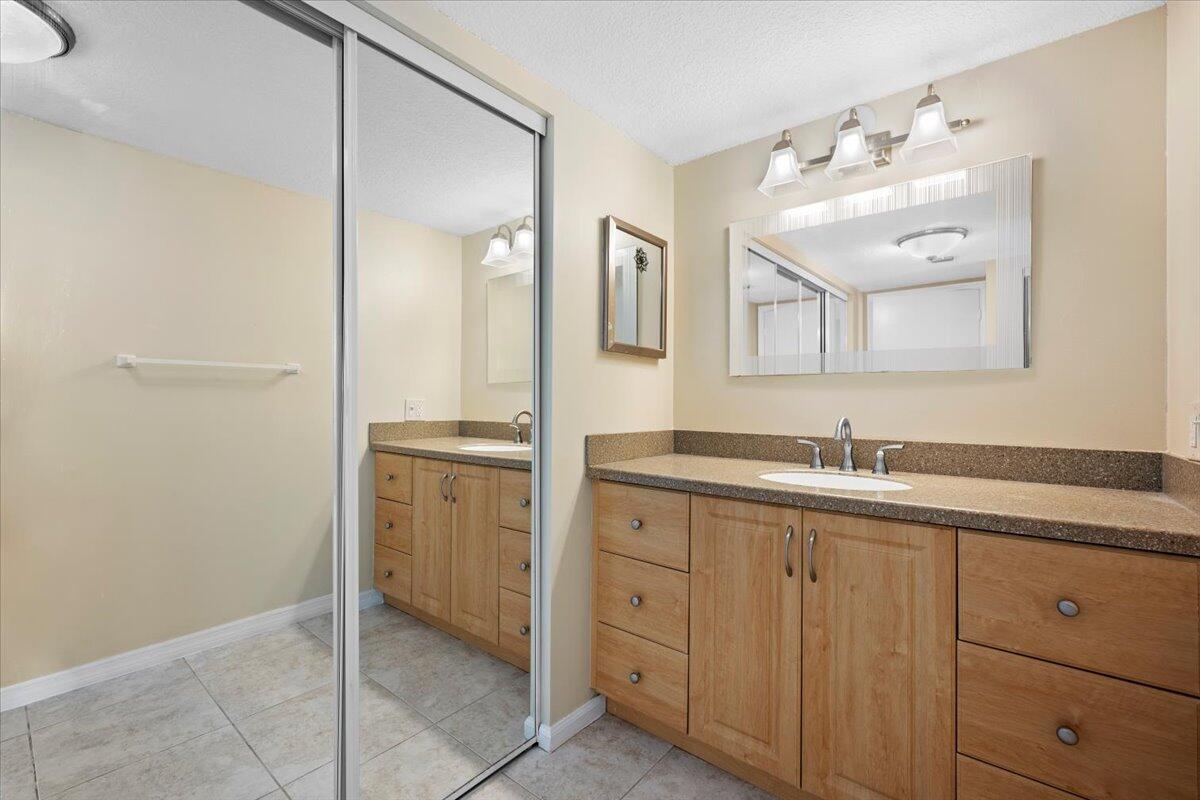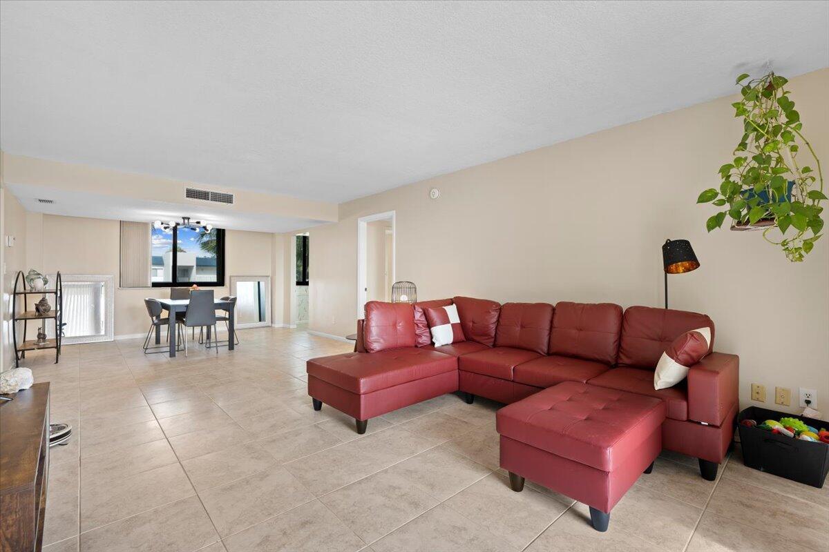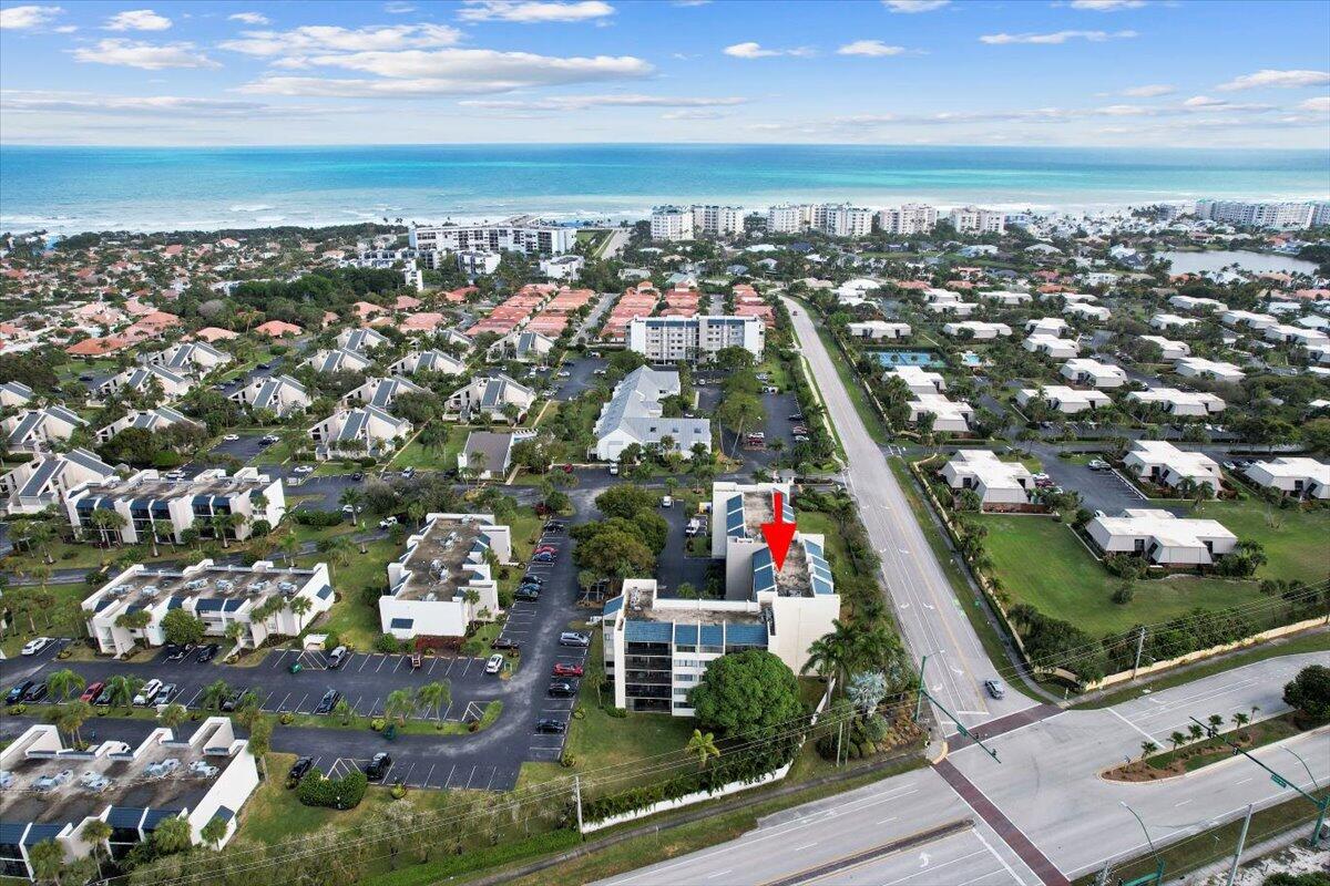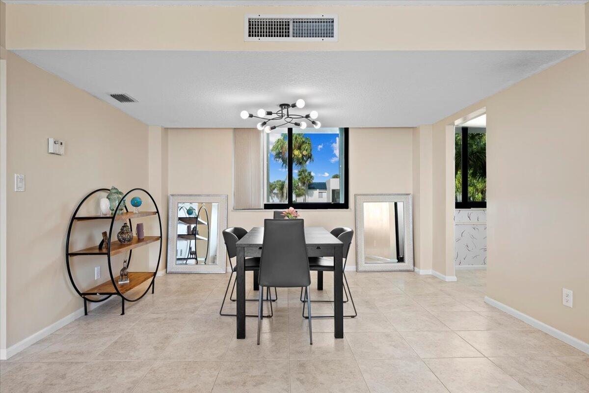Experience coastal living at Jupiter Ocean & Racquet Club, located steps from Jupiter's picturesque beaches. This spacious 2-bedroom, 2-bathroom condo spans 1500 square feet within a secure building featuring a lobby and elevator. The property boasts a 20-foot screened balcony accessible from both the primary bedroom and the living room, ideal for entertainment and relaxation. The kitchen offers a separate exterior access door and is equipped with stainless steel appliances, replaced in 2019. Additionally, a full-size washer and dryer (2019) enhance daily convenience. Recent upgrades include Impact Windows. There are Accordion Shutters on the sliders, knockdown ceilings, and a newer A/C unit and water heater installed in 2019, housed in a separate outside closet for added interior space.