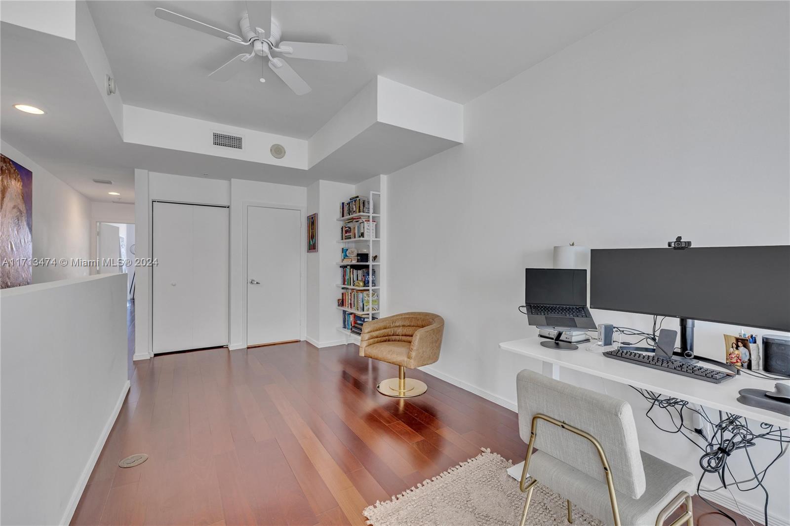 Recently updated 2-BR loft-style unit at Infinity at Brickell Condo. This two-level living space features upgraded bathrooms, closets, flooring, HVAC system, washer/dryer & more. The common area downstairs has an open concept which leads to the east-facing balcony where one can enjoy sparkling views of Biscayne Bay. The Second bedroom has been upgraded with a glass panel creating a more private bedroom and/or office space. The primary bedroom features a west facing balcony which offers more incredible views to the west & southwest. Amenities at Infinity at Brickell include a full service cafe in lobby, pool patio, bbq area, club room, gym, steam, sauna, & cold plunge. Complex is "investor-friendly" whereby residents may rent their units up to 12 times per year at 30-day minimum terms.