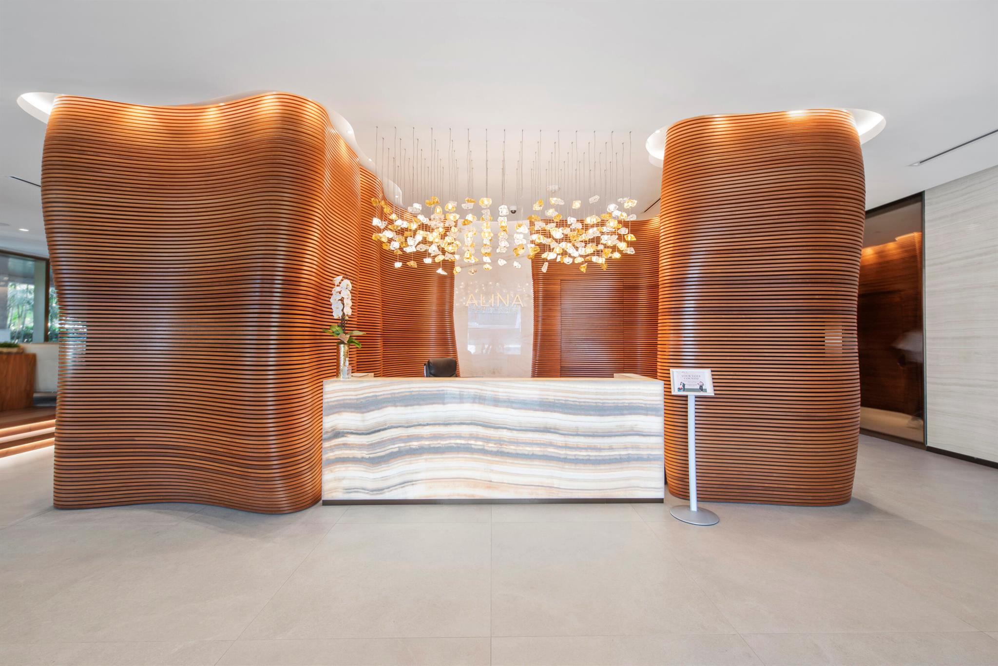 Alina Residences premier NE facing condominium with private elevator foyer and deeded parking spot. Residence 714 features an open floor plan and contemporary design with 3 bedrooms, 3.1 baths, private elevator and an expansive private balcony overlooking the golf course. One bedroom / Den off the kitchen offers a full bath and walk in closet. The interior features include porcelain tile floors, floor to ceiling sliding glass doors, European-style gourmet kitchen with quartz countertops and a cascading kitchen island, Miele appliances, wine cooler, sculptured hood and hidden walk-in pantry. MORE...
