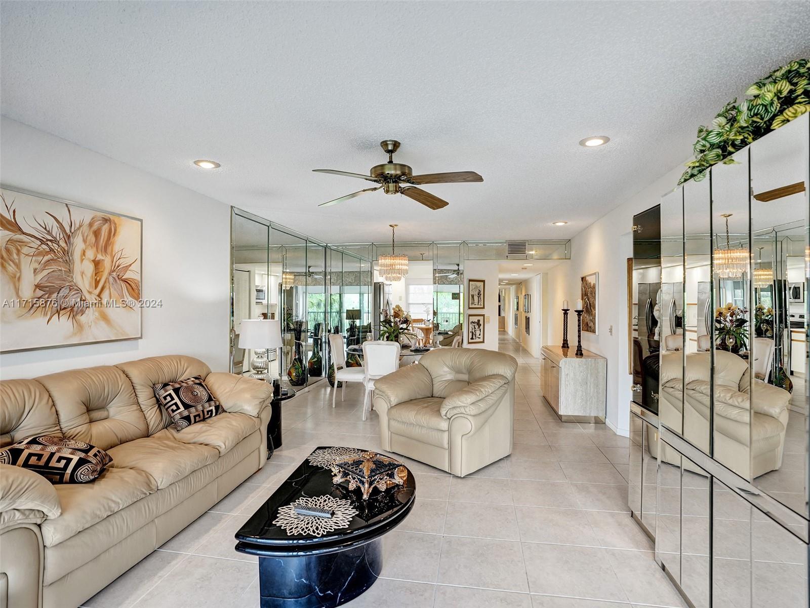 LARGE CORNER UNIT WITH GOLF COURSE VIEW FOR SALE! 2 bedroom, 2 bath. This is one of the largest units with more windows and natural daylight. Enjoy your morning coffee on the balcony overlooking the golf course! The kitchen, bathrooms, and flooring in this condo are white and bright! Both bedrooms have large walk-in closets for plenty of storage. Washer and dryer in unit. Elevator takes you up. Have you been to the clubhouse? It has everything you need to live a life you love! Indoor pool, outdoor pool, jacuzzi, shuffleboard, billiard room, card room, exercise room, sauna, tennis courts, a large theater with shows, and so much more! A trolley will take you around the community and to the grocery stores. Medical center, management, and convenience store on site. Could be sold furnished!