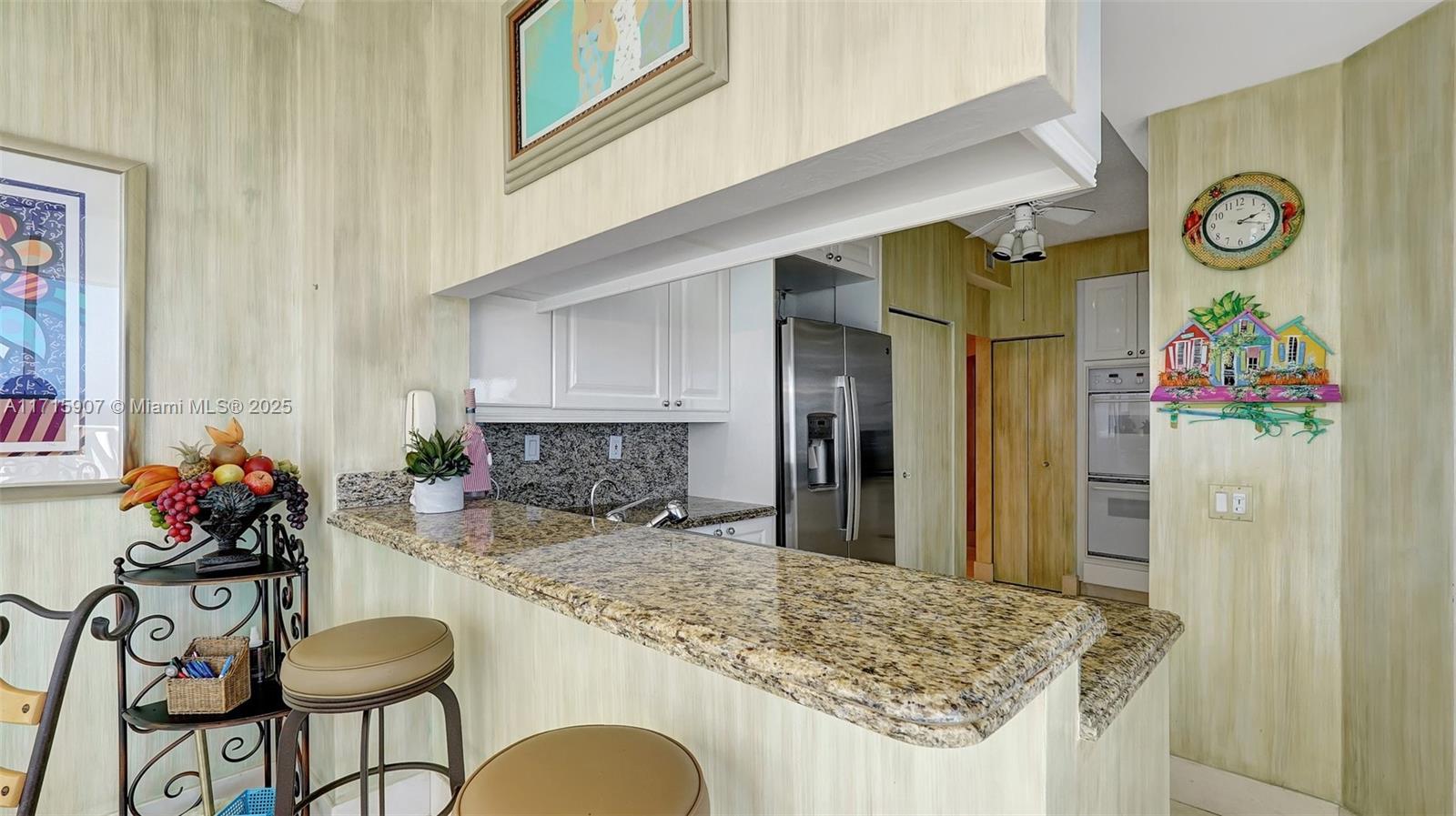 WOW! ENTER AND IMMEDIATELY AND THROUGHOUT SEE THE BEST VIEWS! THIS SPACIOUS 2,640 SQ FT 3 BED/3 BATH IS A GEM. FINEST FINISHES INCLUDE MARBLE FLOORS IN LIVING AREA. COVETED SPLIT FLOOR PLAN FOR EXTRA PRIVACY. SPACIOUS PRIMARY SUITE WITH DIRECT OCEAN VIEWS WITH A HUGE ROOM SIZE WALK -IN CLOSET AND DUAL BATHROOMS. SEPARATE UTILITY ROOM, WHITE KITCHEN, BUILT-INS AND MORE! Enjoy The Resort Lifestyle That Only The Point Can Offer, Including Renovated 25,000SQ FT Resident's Club, Juice N Java Cafe, Gym, Spa, 4 Tennis Courts, 3 Pools, BBQ Area, & Kids Playground.