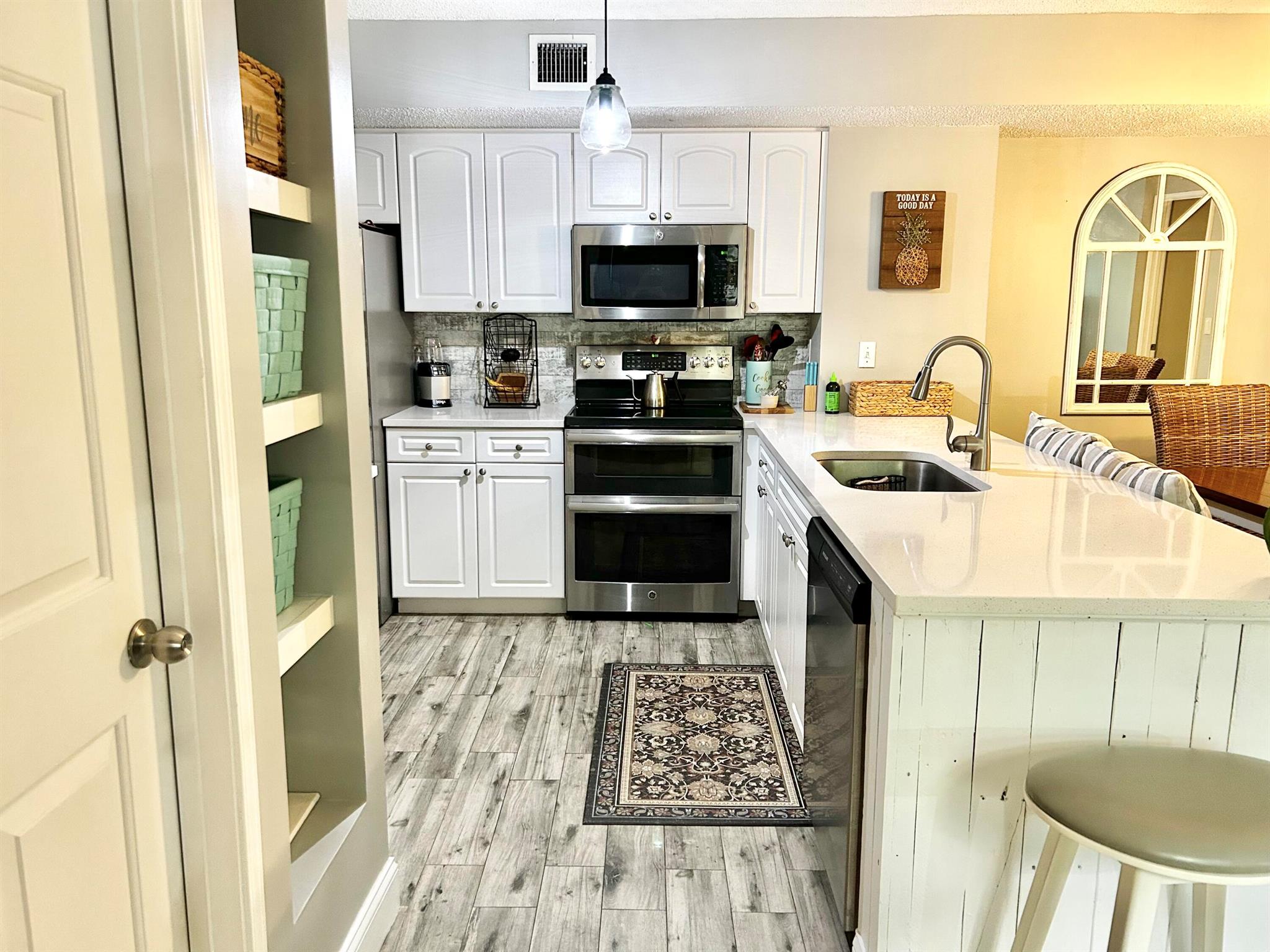 SELLER MOTIVATED! Discover this fully remodeled 2-bedroom, 2-bath condo in the sought after resort-style community of Lighthouse Cove, located in the prestigious Village of Tequesta. This beach-cottage-inspired home features a split floor plan and new porcelain wood-look tile flooring and quartz countertops in the kitchen and primary bathroom. Enjoy stainless steel appliances, custom bench seating with storage in the dining area and a completely updated 2nd bathroom. Both bedrooms offer ensuite baths and custom walk-in closets, while the primary suite boasts elegant shaker molding and shelving. Additional upgrades include accordion hurricane shutters, a new roof (2022), new lighting fixtures, and recent mechanical updatesa"hot water heater (2017) and AC (2019).