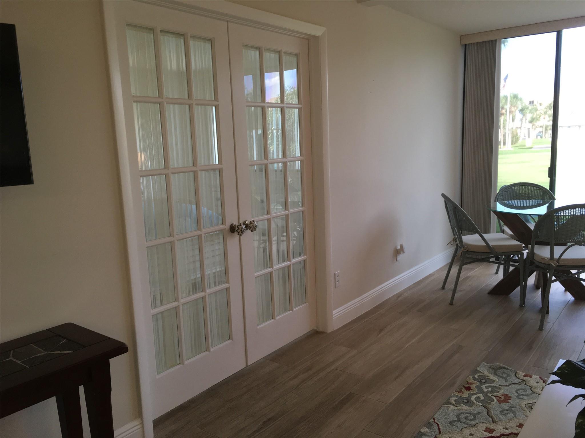 Beautiful TOTALLY Updated condo on the first floor. No stairs to Climb ! The patio has been enclosed for additional interior AC area. This Unit comes COMPLETELY FURNISHED ! TURN KEY !! EVERYTHING you see in the unit comes with the sale and includes all pots, pans, towels, bed, sofa, sheets, art work, beach chairs, small electrical appliances, cooler etc.. This unit can be rented IMMEDIATELY with a minimum of 7 days. View is of the putting green. Next to the NEW Clubhouse and VERY Close to the Ocean. Closest condo within walking distance to the Main pool, Tiki Bar, Restaurant, 1st golf tee and tennis courts. New roof 2023. There's a 9 hole executive golf course, 10 lighted tennis courts, 4 heated pools, jacuzzi, pool side Tiki and Ocean front dining on premise. Washer and Dryer in Unit.
