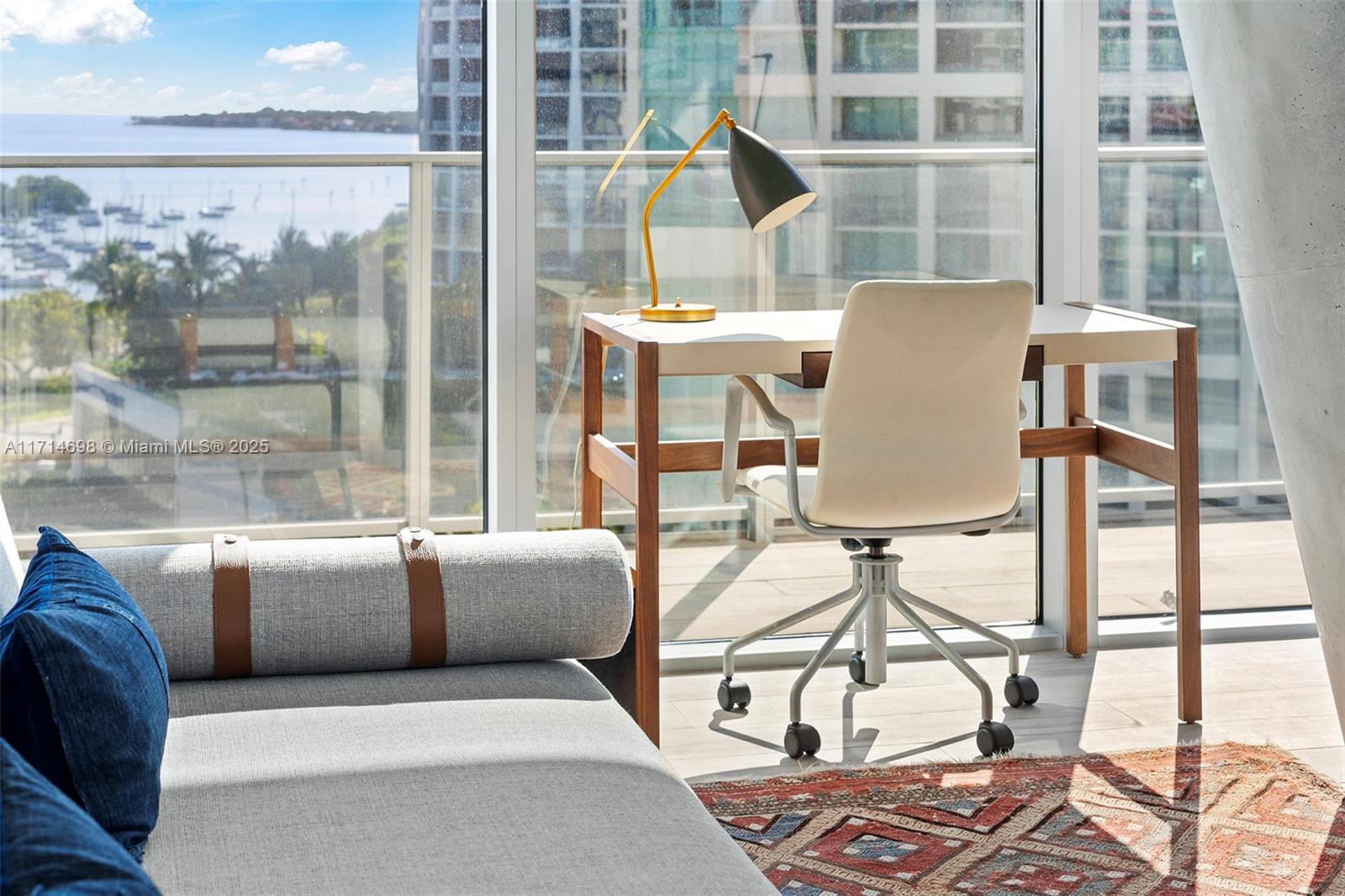 3 Bedrooms + den/office. Amazing architectural design by Bjarke Ingels Group with spectacular water views at this one of a kind luxury modern building. World class amenities include several pools, world class spa, state of the art gym, lounge, club room, library, private dining room to accommodate up to 60 people and great kid’s room. Perfectly located in coveted Coconut Grove. This beautiful and spacious unit offers a perfect split floorplan. Stunning volume ceilings surrounded by magnificent windows making of this a magical place to live, allowing you to enjoy Miami’s water views and splendorous greenery. Beautiful stone floors. Seamless kitchen with high end appliances including gas stove. BBQ in spacious Bay view terrace excellent for entertainment.