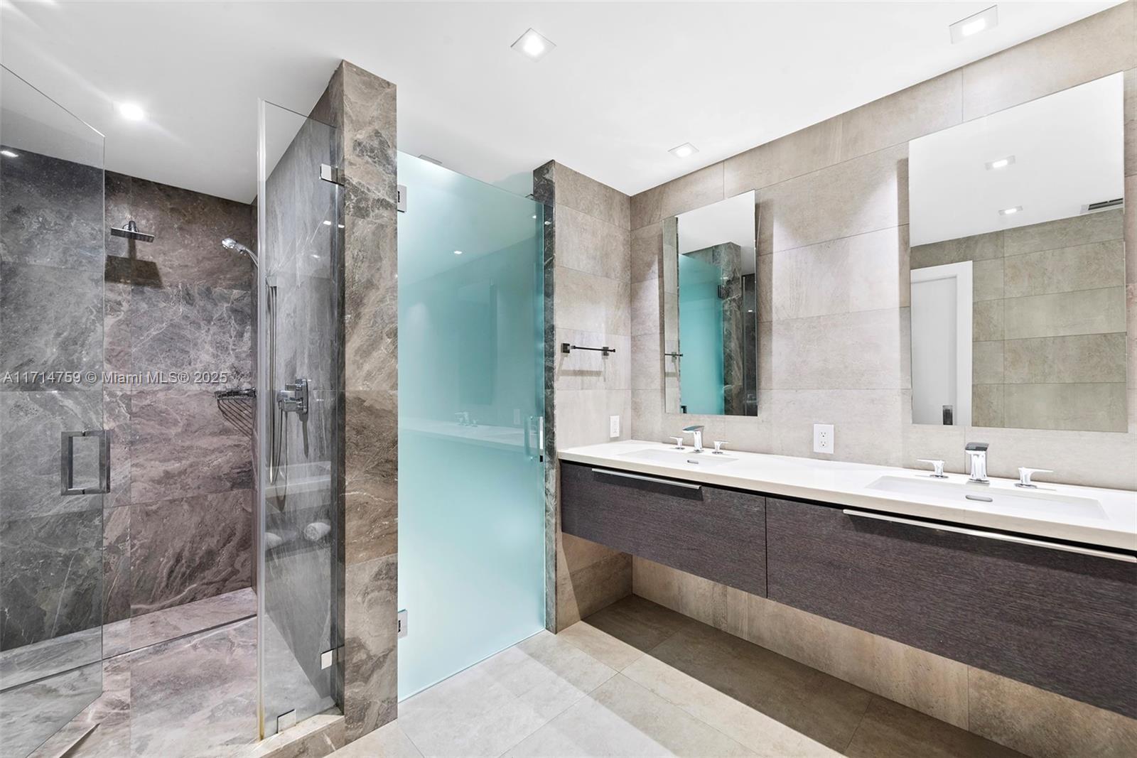 One of a kind unit on the lanai level, providing unmatched family and entertaining space both indoors and out. Created by combining two smaller units into a large 3/3/1 with the Primary Bedroom/Bath and Formal Living & Dining Area at one end, separated by a large open kitchen with informal dining, and ample space for entertaining & art display plus two separated, en-suite Bedrooms and Family area on the other. Walk out of the oversized Terrace to the private Restaurant, Tennis Court, and Pool deck overlooking the Bay. It feels like living in a large house with the benefit of luxury amenities.