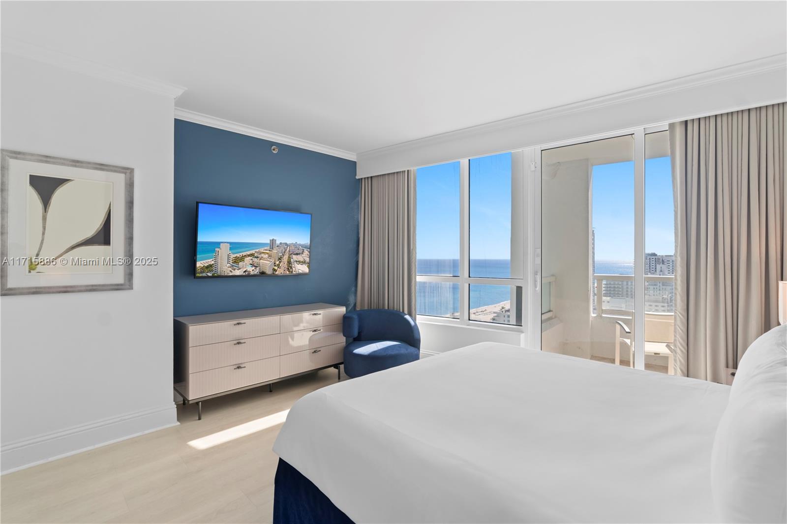 Stunning southeast corner 1-bedroom, 2-bathroom residence at Fontainebleau II, featuring beautiful ocean and city views. Experience luxurious, full-service, vacation-style living in this fully furnished turnkey unit, complete with an open kitchen, dining/living room, king bed, sleeper sofa, walk in closet, 2 balconies, washer/dryer and more. The Fontainebleau resort offers luxury amenities on 22 oceanfront acres, including award-winning restaurants, LIV night club, Lapis spa, and state-of-the-art fitness center. Maintenance includes: AC, local calls, electricity, valet + daily free breakfast in the owner’s lounge. Please click the virtual tour link to see a video of the property & contact me directly for more info.