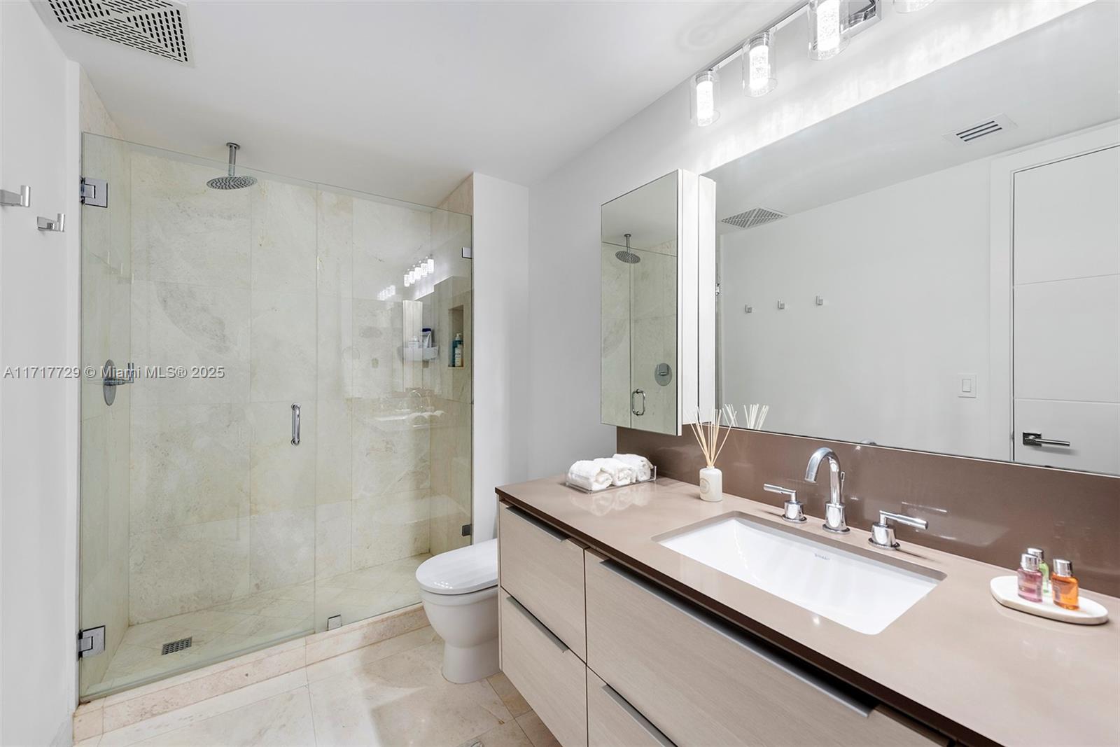 Enjoy stunning panoramic views of Biscayne Bay, the Atlantic Ocean, and the city skyline from every room or your huge balcony! This completely remodeled condo has high ceilings and an ideal split floor plan featuring two master suites with floor-to-ceiling windows. Open modern kitchen with top-quality finishes and appliances like Sub-Zero & Miele. Solid doors, AC linear vents, electric blackouts, shades, custom-built walk-in closets, and much more. This is the newest waterfront building in tree-lined South Brickell with quick access to I-95 & US-1. Amenities include a state-of-the-art gym, steam room, marina, pool, jacuzzi, tennis court, kids’ playground, café with market, dog park, 24-hour valet parking, BBQ area, party room & more!