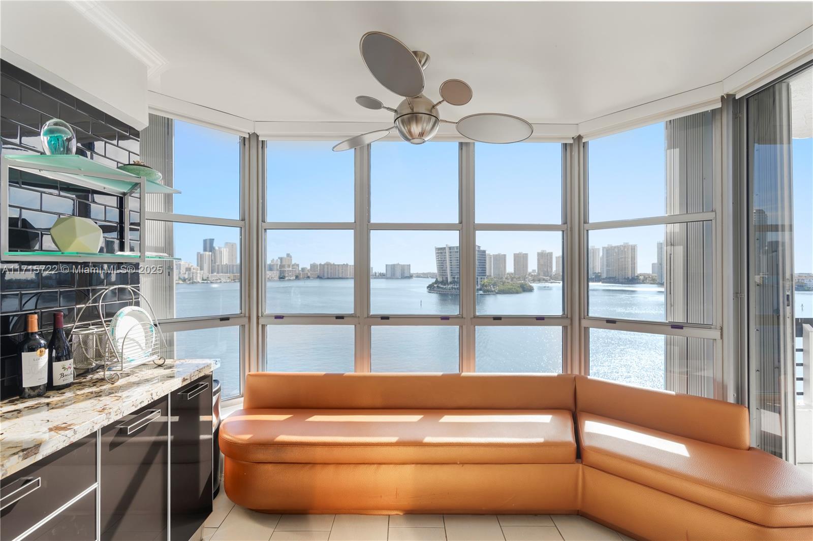 Experience the best line with breathtaking direct Intracoastal views, offering expansive water vistas and unique sunrises and sunsets. This stunning condo features an open, modern kitchen with state-of-the-art appliances, smart home features, floor to ceiling windows, and a seamless integration of ceramic and engineered floors. The spacious primary bedroom boasts an ensuite bathroom with universal shower design and a custom-made walk-in closet. Ample closet space and wrap-around balcony with hurricane shutters. Resort-style amenities such as pickleball, tennis, marina, pool, gym, restaurant, mini-market, lush grounds, private lake, and basketball. Mystic Pointe is located close to houses of worship, Aventura Mall, intl airports, the beach and Bal Harbour Shops. A true waterfront paradise!