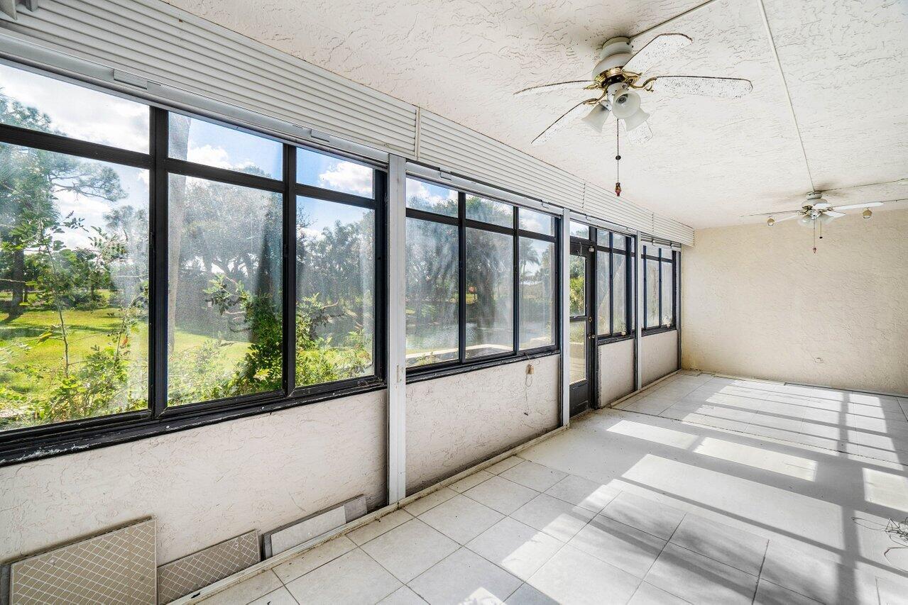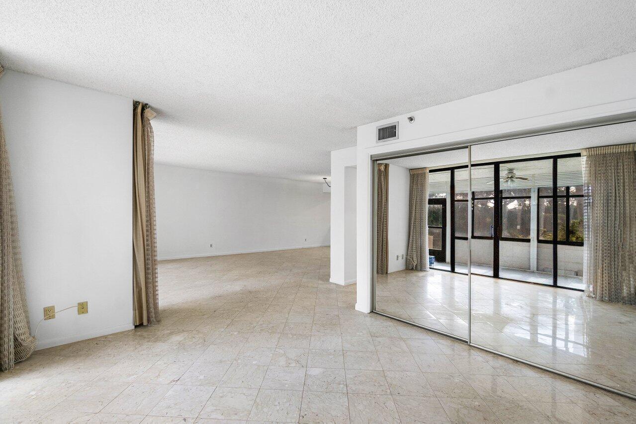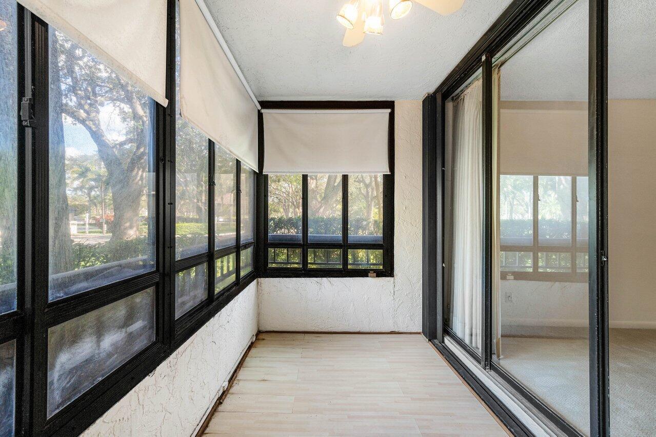 Welcome to this beautifully maintained first-floor corner condo located in the sought-after 55+ community of The Glens in Central Boca Raton. This spacious home offers a perfect blend of comfort and convenience, featuring a combination of tile and carpet flooring throughout. The inviting living area is filled with natural light, creating a warm and welcoming atmosphere. The well-appointed kitchen comes complete with a large pantry and stainless-steel appliances. The primary suite is a true retreat, boasting a generously sized walk-in closet with built-in shelving and an ensuite bathroom, plus an enclosed patio. The split-bedroom layout ensures privacy for both residents and guests. This home also features a walk-in laundry room with ample storage space. The large open dining and living