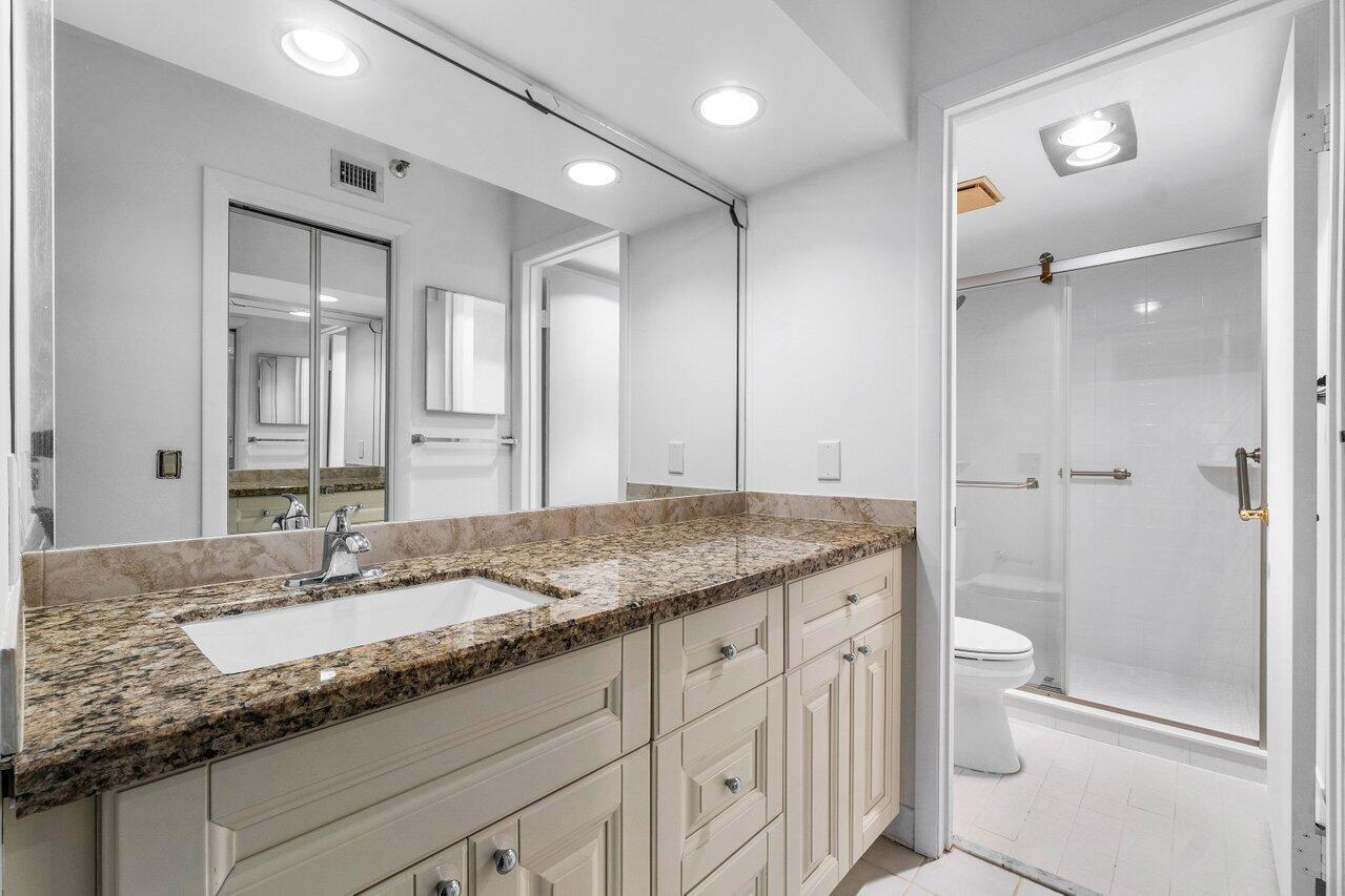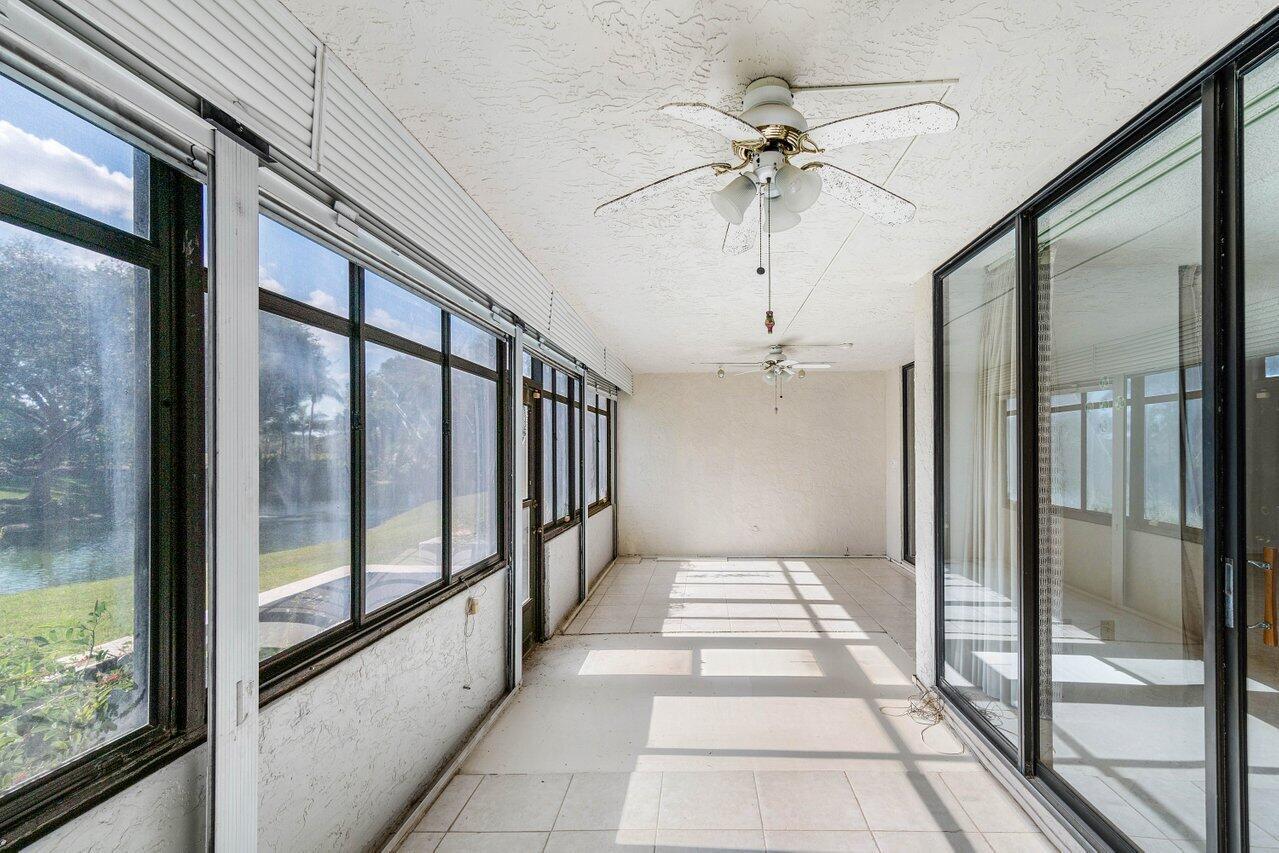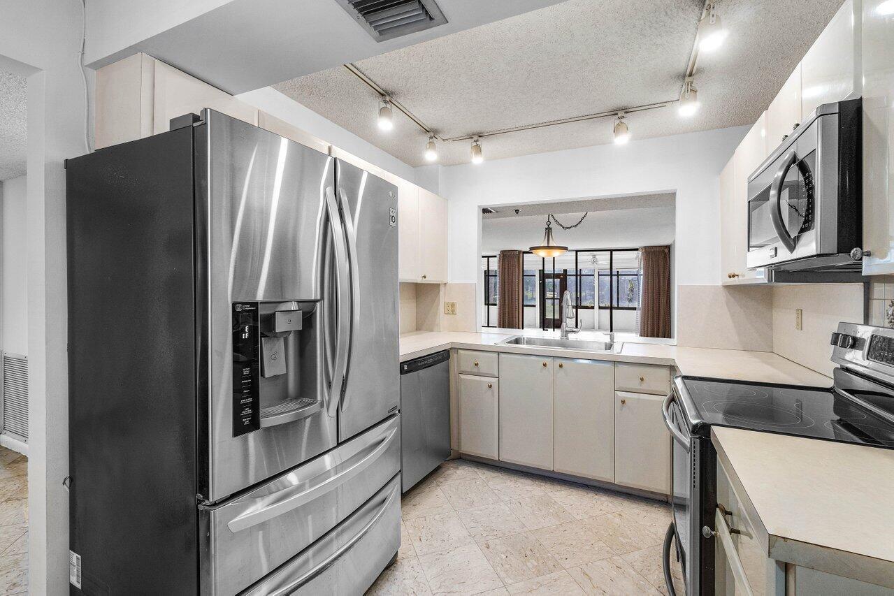 Welcome to this beautifully maintained first-floor corner condo located in the sought-after 55+ community of The Glens in Central Boca Raton. This spacious home offers a perfect blend of comfort and convenience, featuring a combination of tile and carpet flooring throughout. The inviting living area is filled with natural light, creating a warm and welcoming atmosphere. The well-appointed kitchen comes complete with a large pantry and stainless-steel appliances. The primary suite is a true retreat, boasting a generously sized walk-in closet with built-in shelving and an ensuite bathroom, plus an enclosed patio. The split-bedroom layout ensures privacy for both residents and guests. This home also features a walk-in laundry room with ample storage space. The large open dining and living