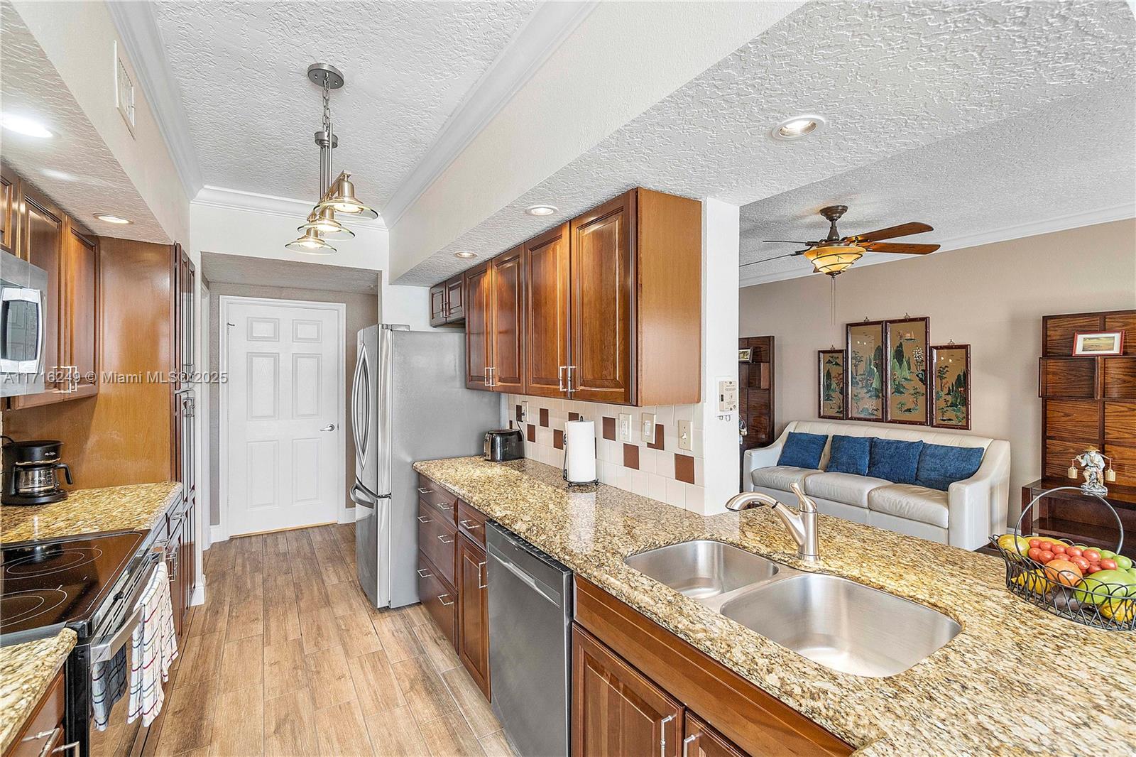 Check out this classically upgraded 2-Bed, 2-Bath first floor unit The Marquesa. This impeccably maintained unit boasts real wood cabinetry & granite countertops in both the kitchen & bathrooms, complemented by ceramic tile flooring throughout the main living area. Neutral paint, crown molding, & storm panel protection add to the home's appeal, while the in-unit washer & dryer offer ultimate convenience. Located in a gated community with 24/7 security and cameras, Marquesa offers a wealth of amenities for residents. This investor-friendly community allows immediate rentals with a minimum lease of 6 months. Situated directly across from Pembroke Lakes Mall, this home is also near supermarkets, restaurants, banks, & a hospital, making it an ideal choice for both owners and investors alike.