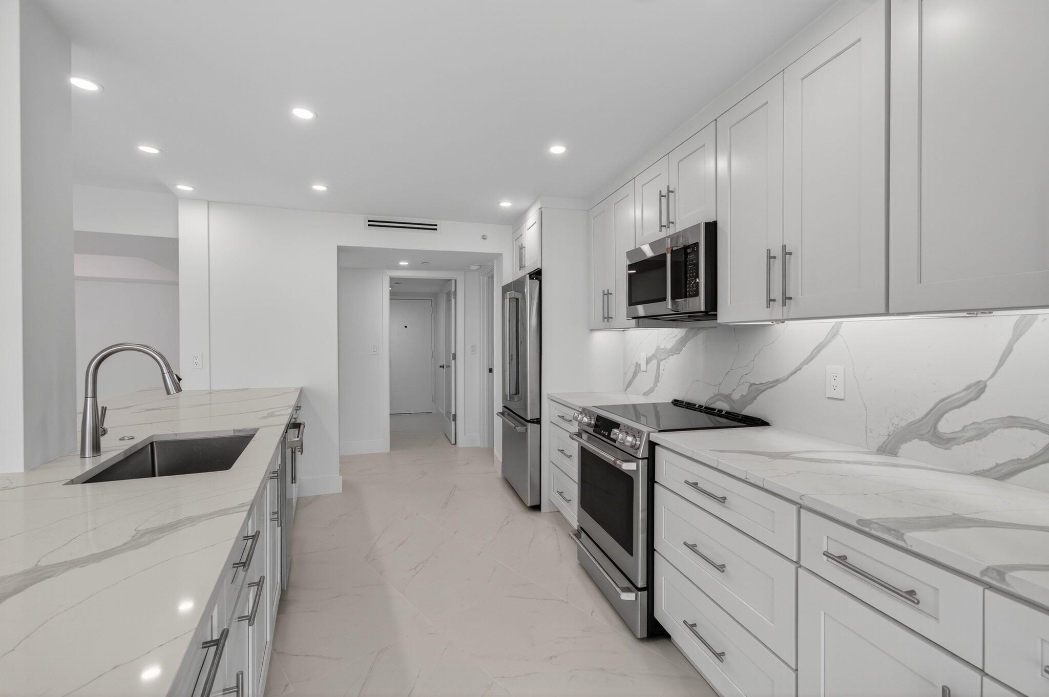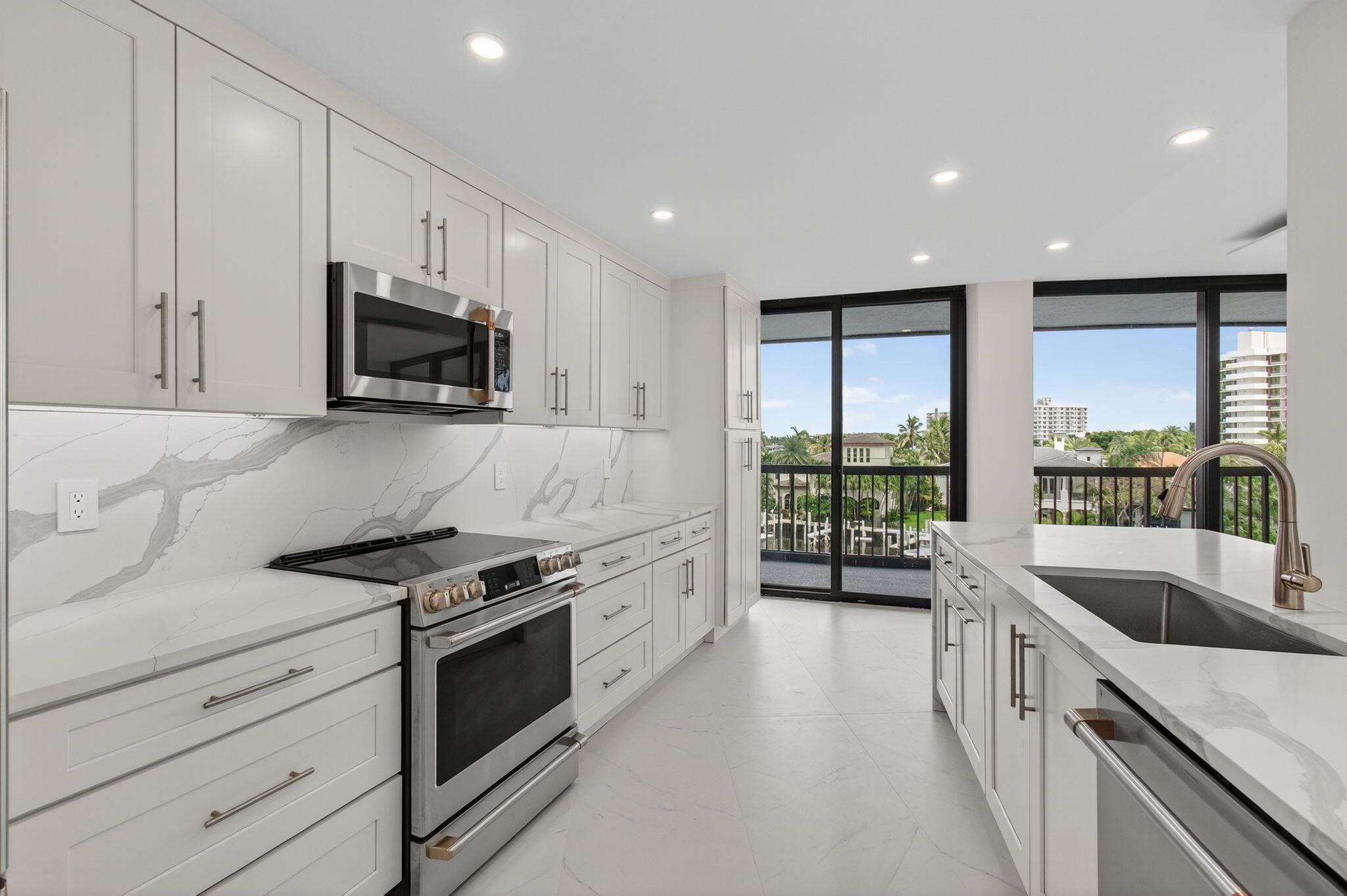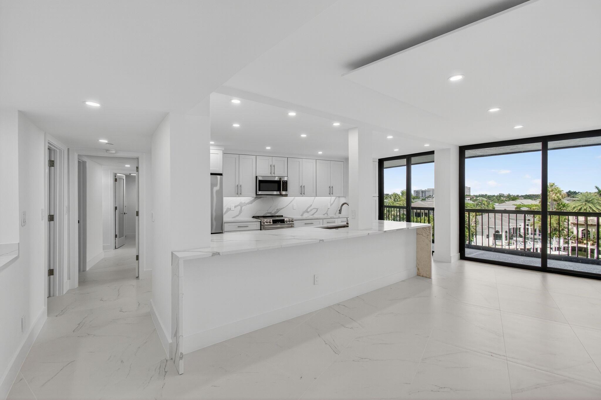 Newly Renovated Braemar Isle residence overlooking marina and Grand Cay Estates just off the Intracoastal waterway. This home features a split floor plan with 2 primary suites of 2350 total square footage for spacious open living. Impact windows. Beautiful contemporary kitchen, GE cafe appliances, Quartz countertops with large porcelain tile flooring throughout. Custom bathrooms and all closets have been built-in for loads of extra storage. New electrical box and hot water heater. A/C is 3 years old. Building includes 24 hour concierge, state of art fitness center, private Ocean Beach Club, tennis courts and marina. Boca Highlands is a gated, guarded community of active lifestyle!