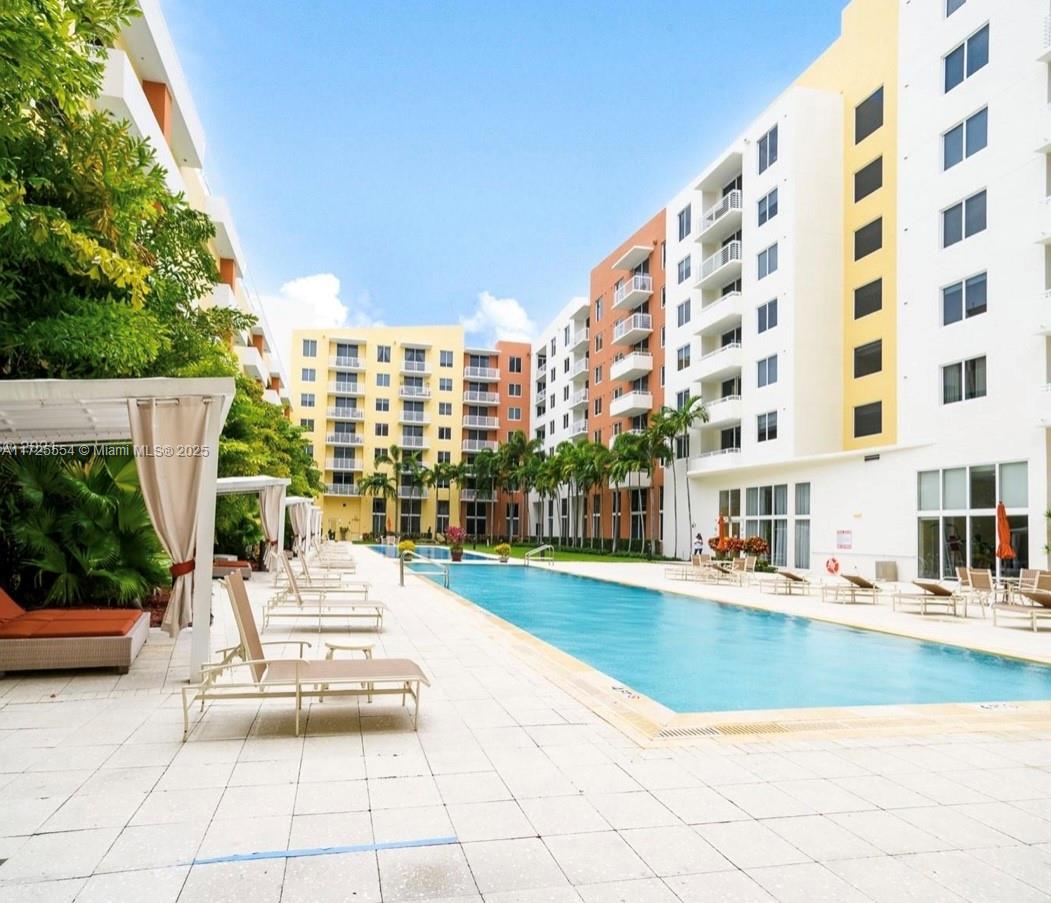Beautiful updated large condo with pool view, 1 bedroom 1 bathroom, plenty of closet space with a custom closet in bedroom. Lots of natural light with hurricane impact windows, sliding doors and balcony facing the pool. Washer & Dryer in unit. Assigned covered parking space. Amenities include, pools, gym, sauna, community room, business center, movie theater. Excellent location, walking distance to shopping mall, banks, restaurants, supermarkets, dry cleaner. Valet service 24 hours, security 7 days a week. Service dogs allowed only with proper paperwork. Unit is rented unit March 2026 for $2,270. Text listing agent 24 hours in advance and showing request please.