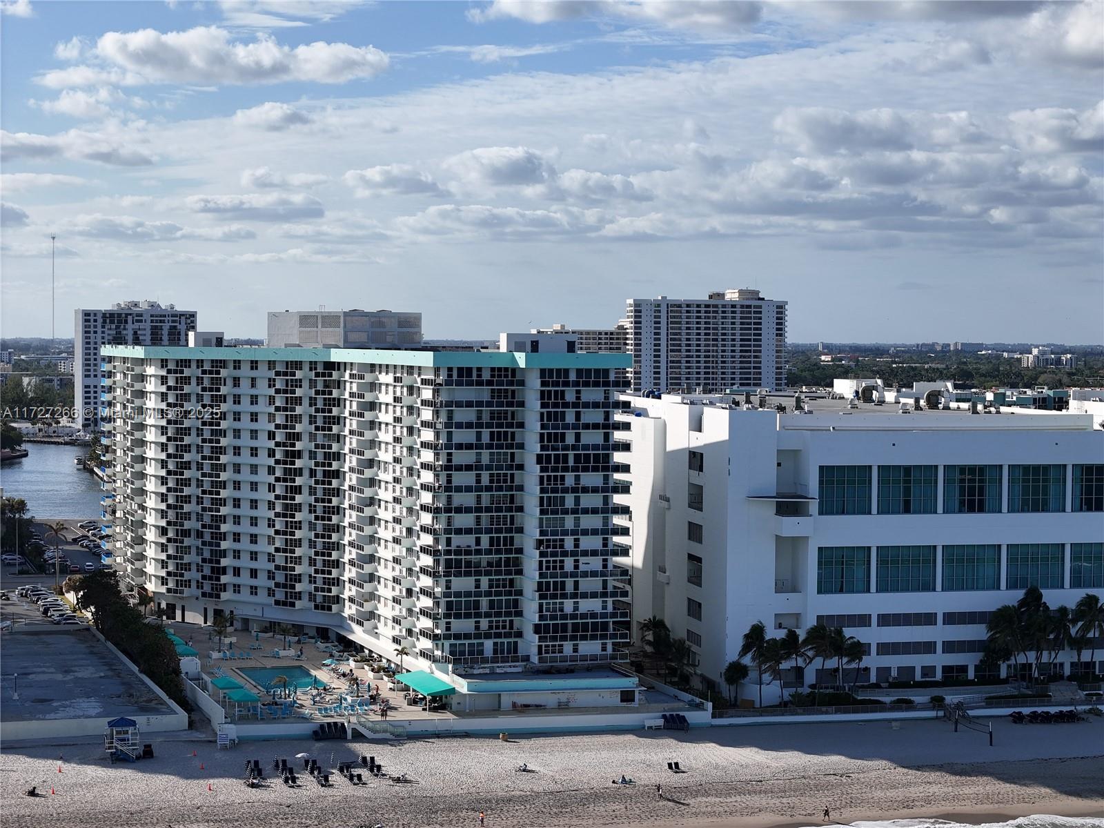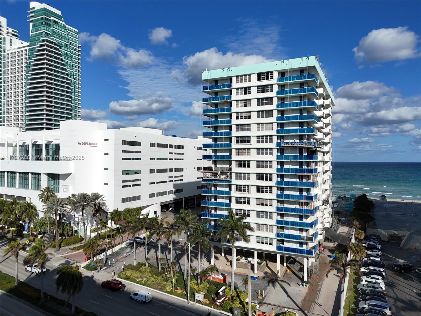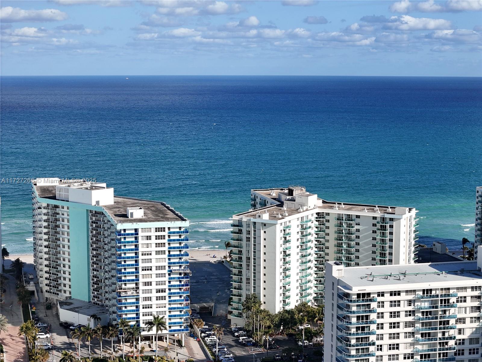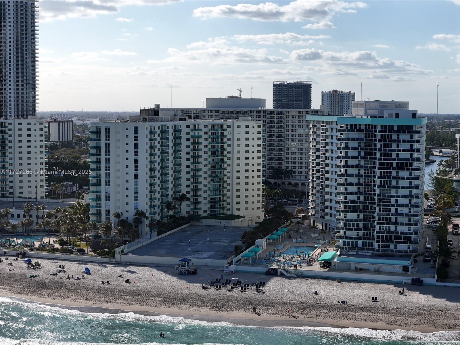 Discover serene coastal living at its finest in this 1-bedroom, 1.5-bath condo located in the coveted Sea Air Towers. Bask in breathtaking city and intercoastal views from the open balcony, and enjoy modern living with sleek laminate and tile flooring. The unit features a spacious layout with central heating and cooling for year-round comfort. Amenities include a sparkling pool, an exercise room, and direct deeded beach access. With elevator access, valet parking, and a guarded entry, convenience and security are guaranteed. This is your gateway to luxurious beachfront living.