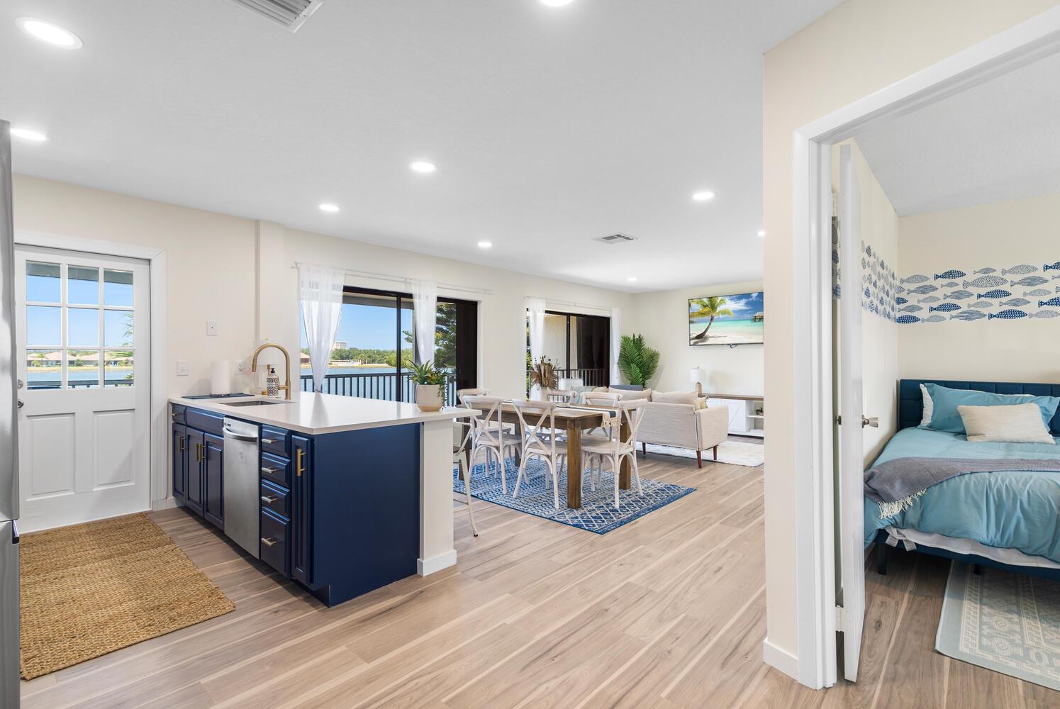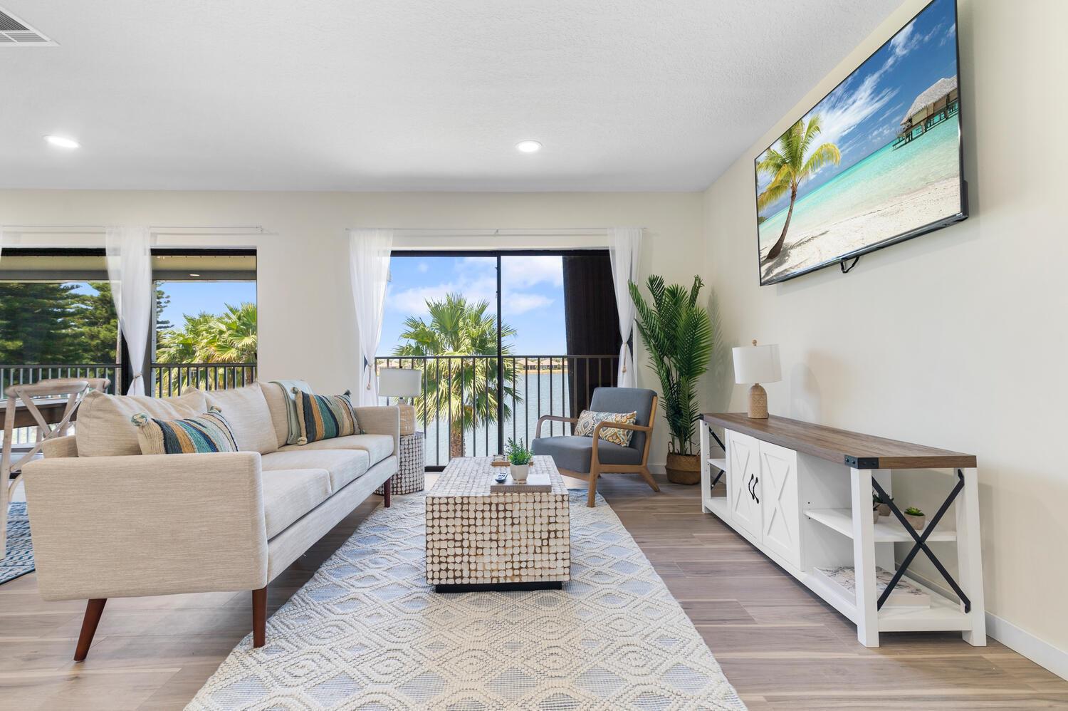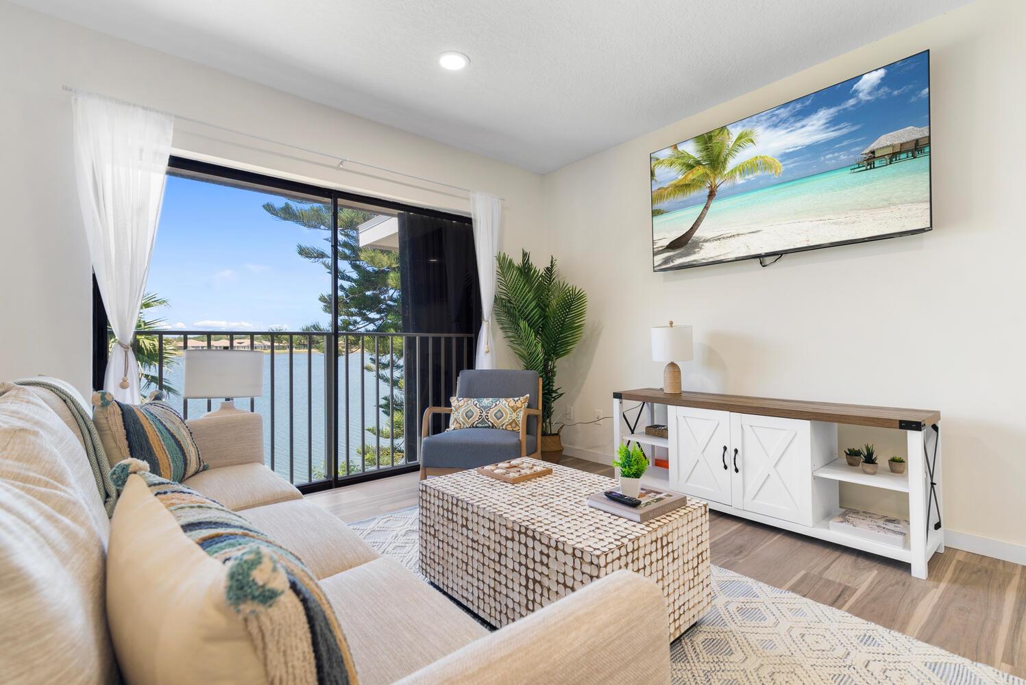 HURRY! Island Dream Opportunity! Yours to use or share the experience for seasonal / short term guests, sold furnished turnkey! INCOME POTENTIAL! Desirable beach home features an immaculate & updated interior w/ coastal blues, soft neutral tones complimented by modern sleek appliances and gold fixtures. The minimalist Zen-like decor & open spaciousness is harmonious with the gorgeous lakefront setting! Take it all in from your living area or the screened patio with coffee or an evening refreshments w/ friends! The ever changing views offer stunning sunrises & sunsets, NASA rocket launches provide remarkable light shows from an hour away, to the natural wildlife that enjoys the lake setting too! Don't miss your chance to embrace the unhurried, tranquil lifestyle of Hutchinson Island!