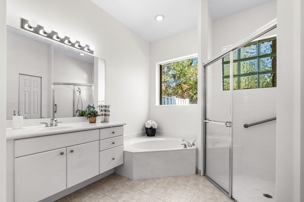 NEW ROOF (3/2025) on this beautiful, spacious 3/2/2 villa, in the gated community of Andros Isle! Great split floor plan. Master bedroom has a tray ceiling, his and her closets and a large bathroom with dual sinks and separate tub/shower. NEW carpet, freshly painted through-out, and NEW light fixtures. Guest bathroom has an NEW vanity with quartz countertop. NEW wtr htr (3/2025). The large paver patio makes it perfect for entertaining and the most serene preserve views are perfect for relaxing!! Watch the deer pass through. Community boasts resort style amenities. Tennis and pickleball courts, pool., clubhouse, and fitness center. Great central location, close to airport, I-95, Turnpike, shopping, fine dining and the most beautiful beaches.