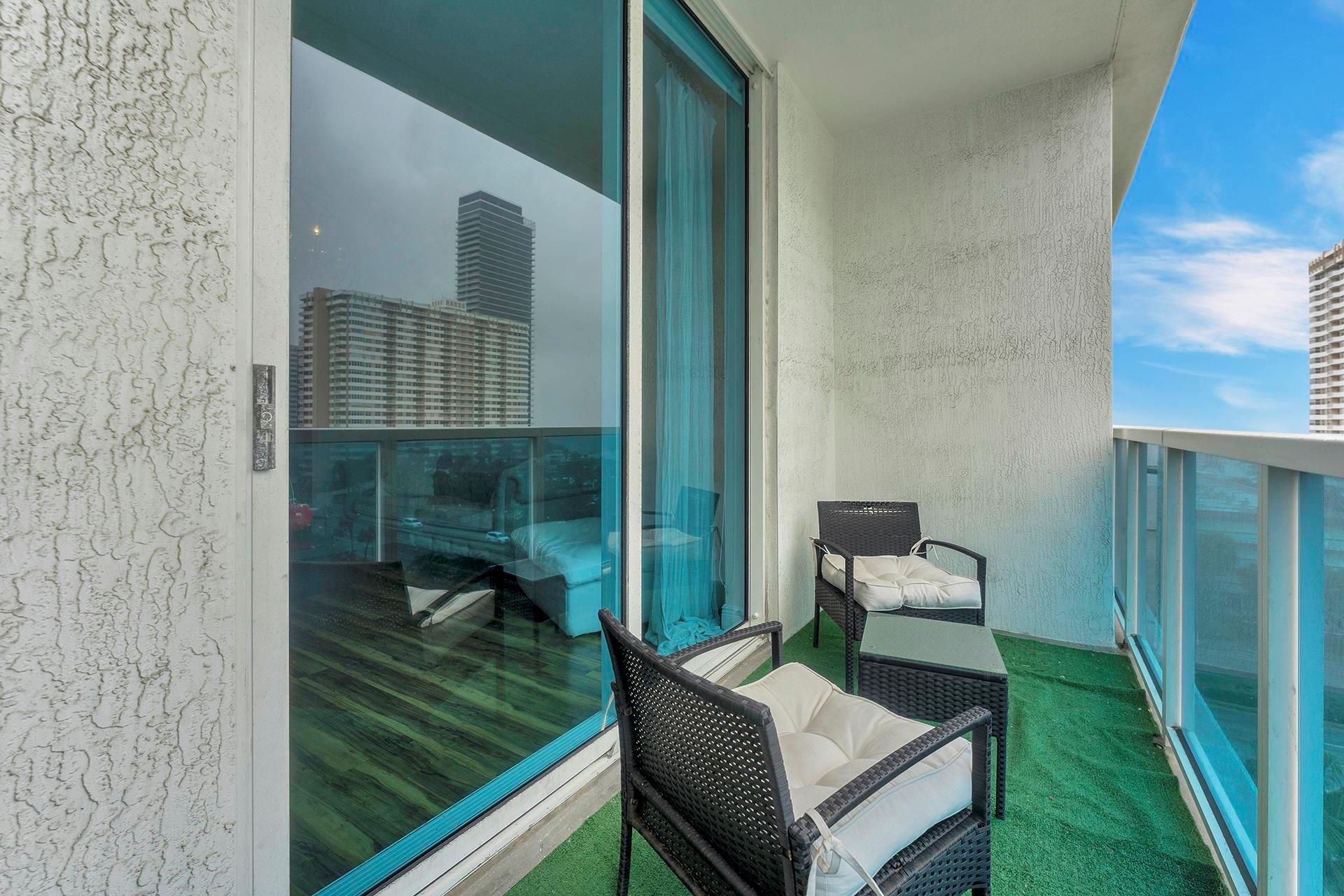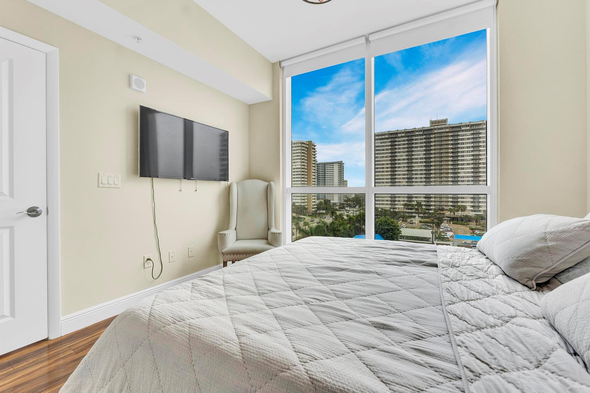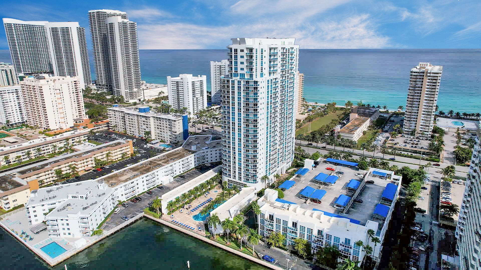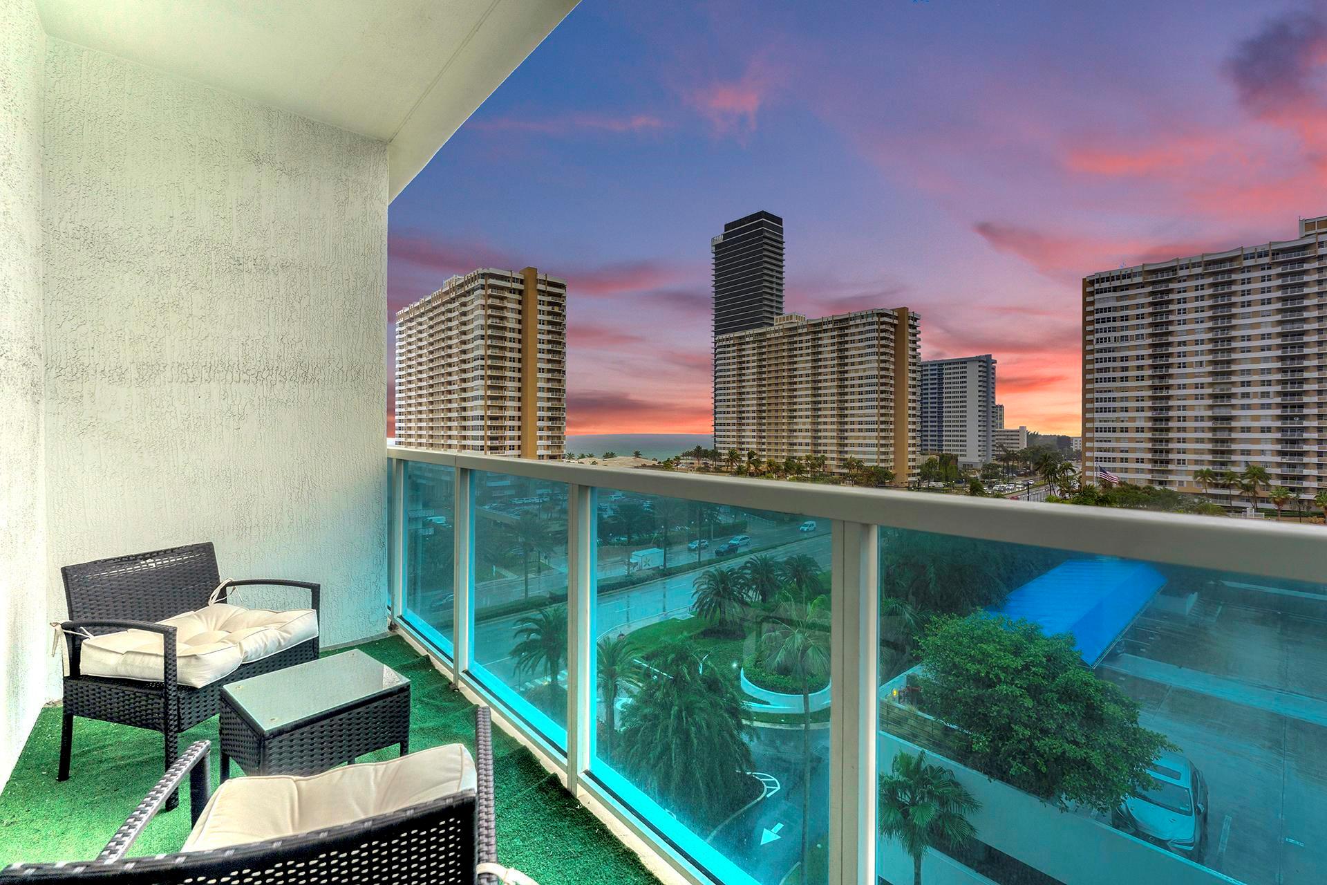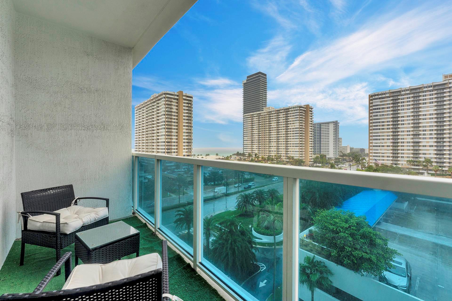 Enjoy coastal living at Ocean Marine Yacht Club. This 1-bedroom plus den condo features a balcony with ocean and city views, floor-to-ceiling hurricane-impact windows throughout, a spacious walk-in closet, and an expansive bathroom with a soaking tub. Tile and wood flooring add a modern touch, and the unit includes a full-size washer and dryer. The condo can be sold fully furnished. The building offers resort-style amenities, including a pool, fitness center, clubroom, 24-hour concierge, valet parking for guests, and more. Conveniently located across from the beach and less than 30 minutes from Miami and Fort Lauderdale International Airports.