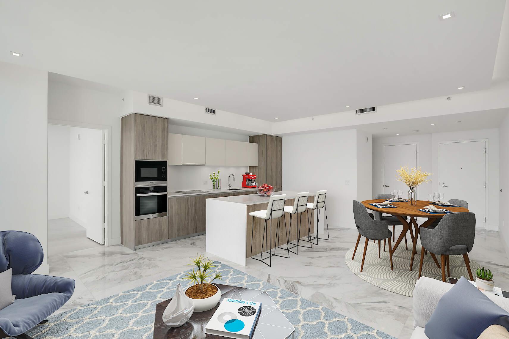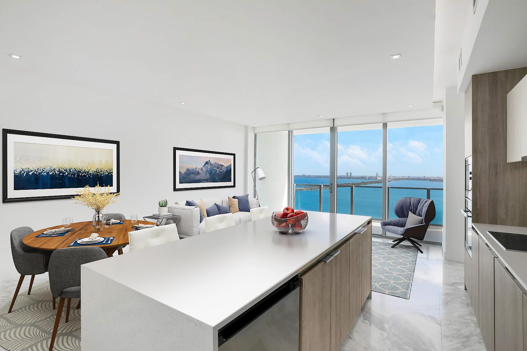 Breathtaking 2-bed, 2.5-bath located on the 27th floor of Biscayne Beach. With panoramic, unobstructed water views, this exceptional home offers luxury living at its finest. Private elevator opens directly into your own foyer, leading into an expansive living space with high-end finishes throughout. Gourmet kitchen boasts top-of-the-line Miele appliances. Open floor plan flows seamlessly into living & dining areas. Spacious primary suite offers a luxurious retreat, featuring a stunning wet room, double vanity & fully designed walk-in closet. 2nd bedroom is ensuite and can double as a 2nd primary. Building features: private beach club, 2 pools, fitness center, spa, party room, tennis courts, basketball & volleyball courts & more.