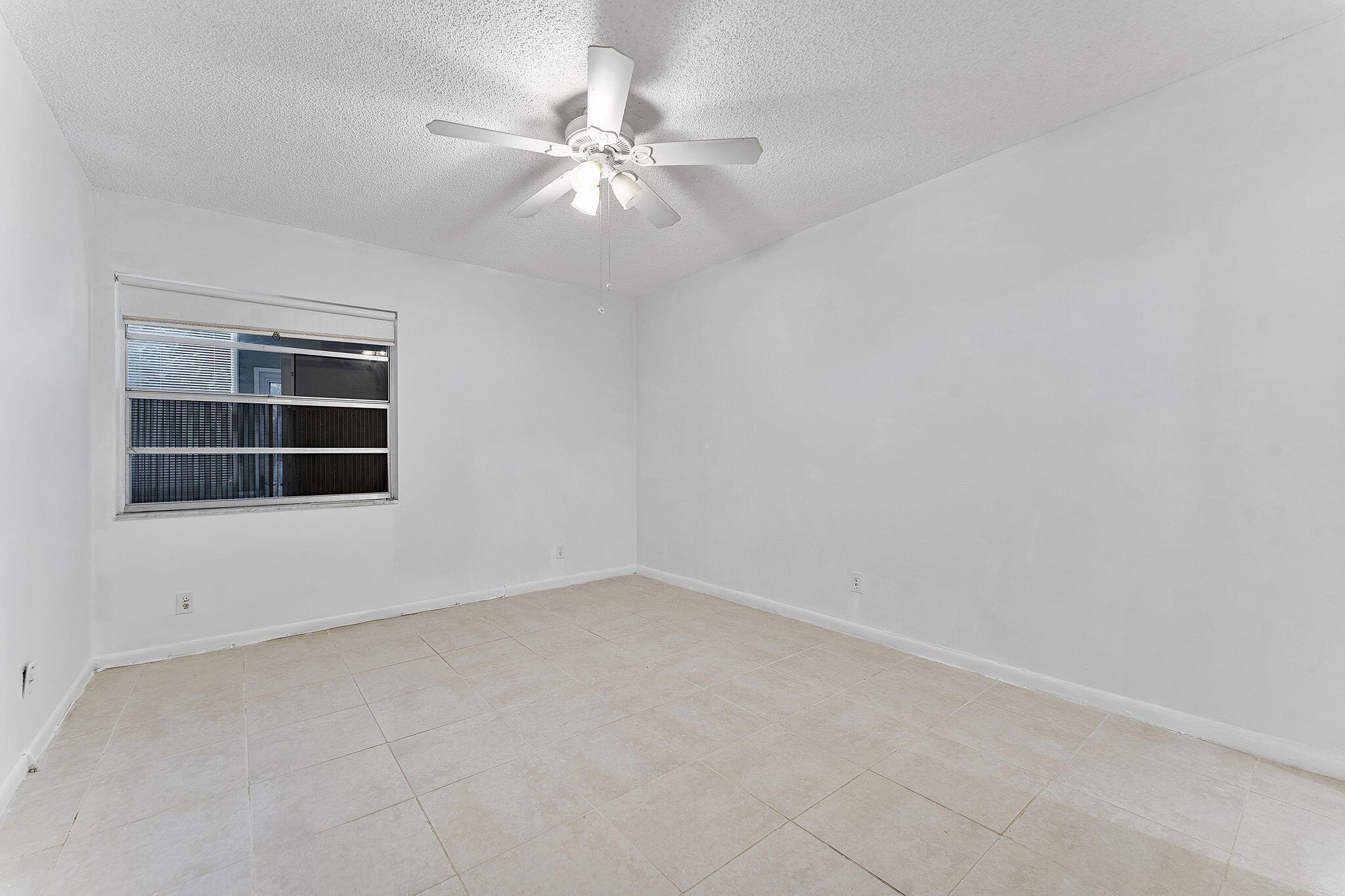 Light, bright, corner Two bedroom, two bath condo on the ground floor facing the garden. Kitchen has refrigerator and range. Stall shower in master bathroom. Tub shower in guest bathroom. Patio has impact windows and washer and dryer. Community offers bus service, golf courses, five outdoor pools, indoor lap pool and resistance pool, shows, ceramic classes, card games, bingo, community events and so much more!
