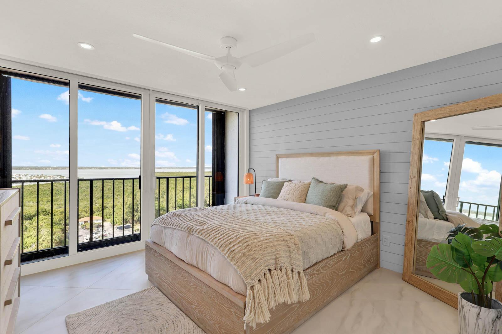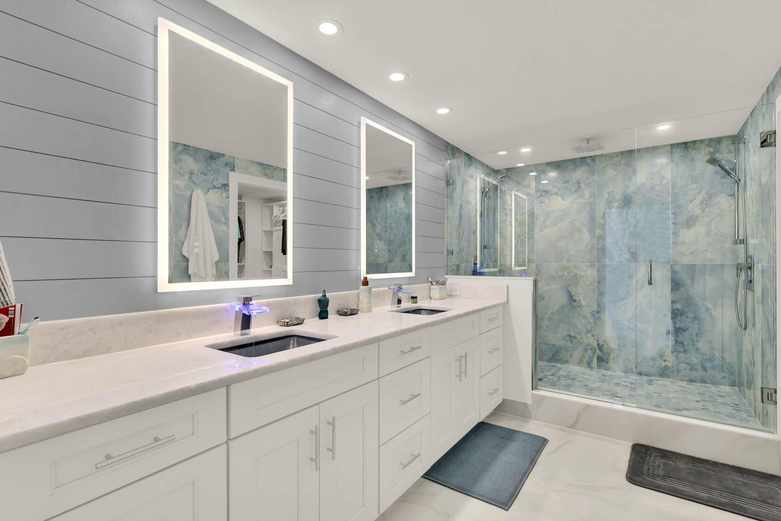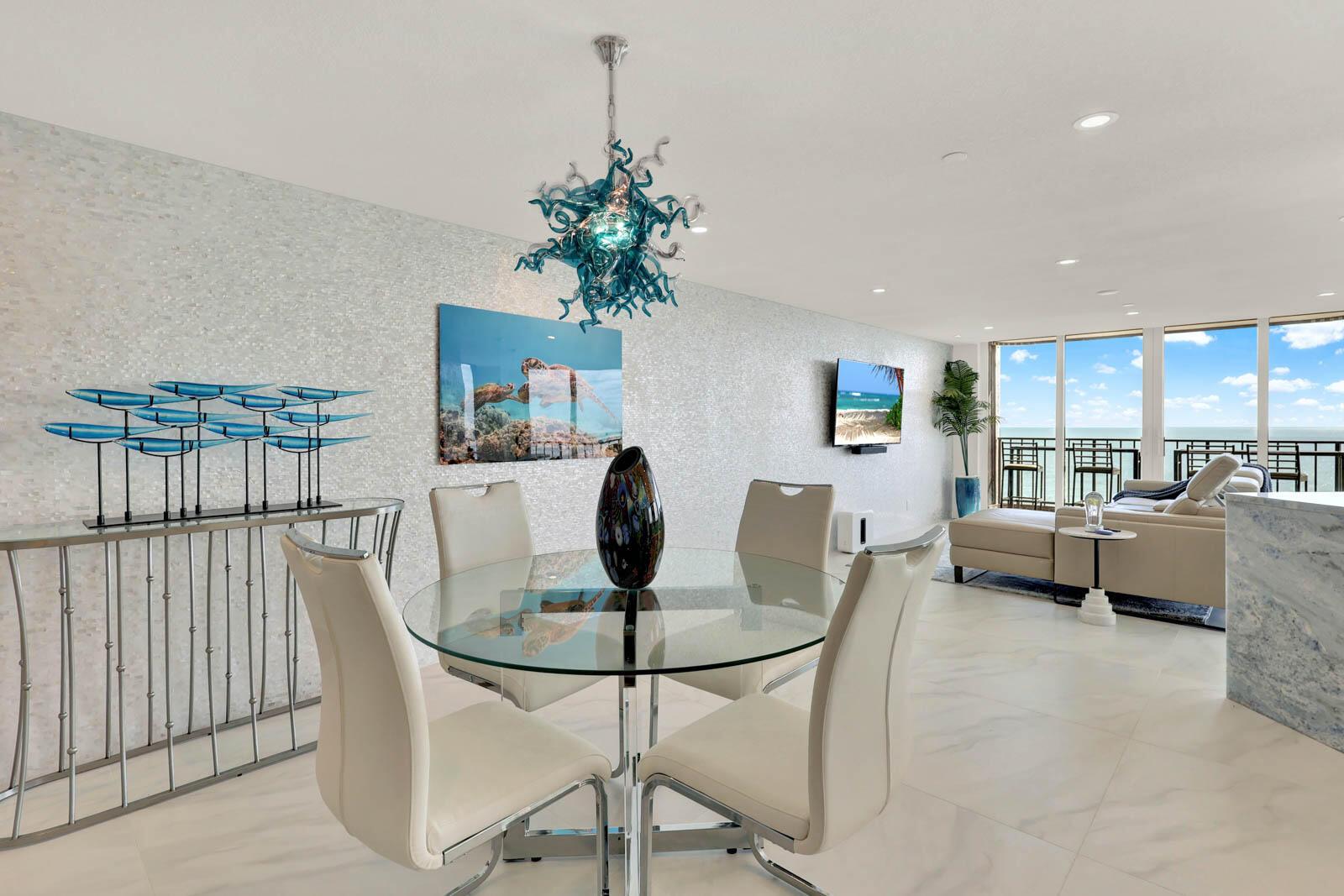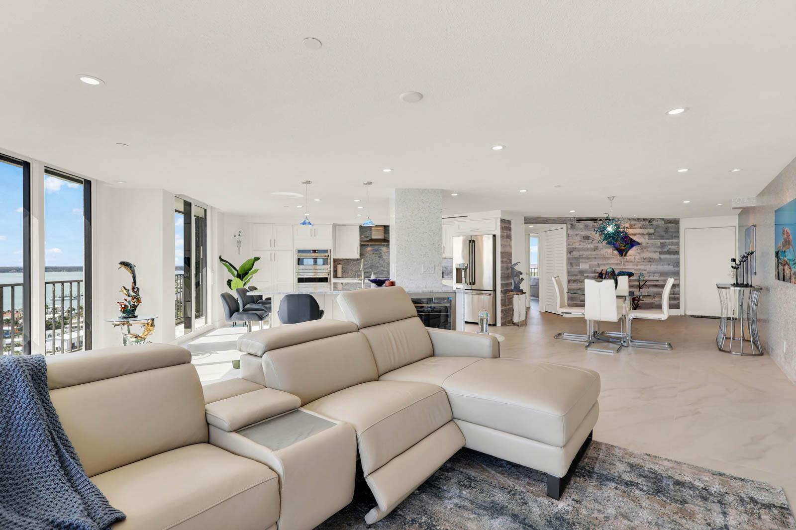 PRINCESS ON HUTCHINSON ISLAND - 2BR/2BA renovated SE end unit. Watch sunrises and sunsets with Ocean and Intracoastal/River views. Features include: renovated in 2024, impact sliders, 36'' ceramic tile, Hunter Douglas electric black out shades, textured ceiling, 6'9'x 8'5' marble center island in kitchen, marble counters in kitchen & bathrooms, shaker-style doors, shaker-style cabinets throughout, 2x4 ceramic tile on walls in bathrooms, Nickel Gap walls, Mother of Pearl tile wall, re-claimed wood planking wall, 3 separate balconies, walk-in closets with custom shelving, full size washer/dryer and so much more! A 3-D Floor plan is in photos. Community amenities include gated, social room with kitchen, billiards, fitness rooms, sauna, pool, tennis, putting green, bocce ball, boat trailer/