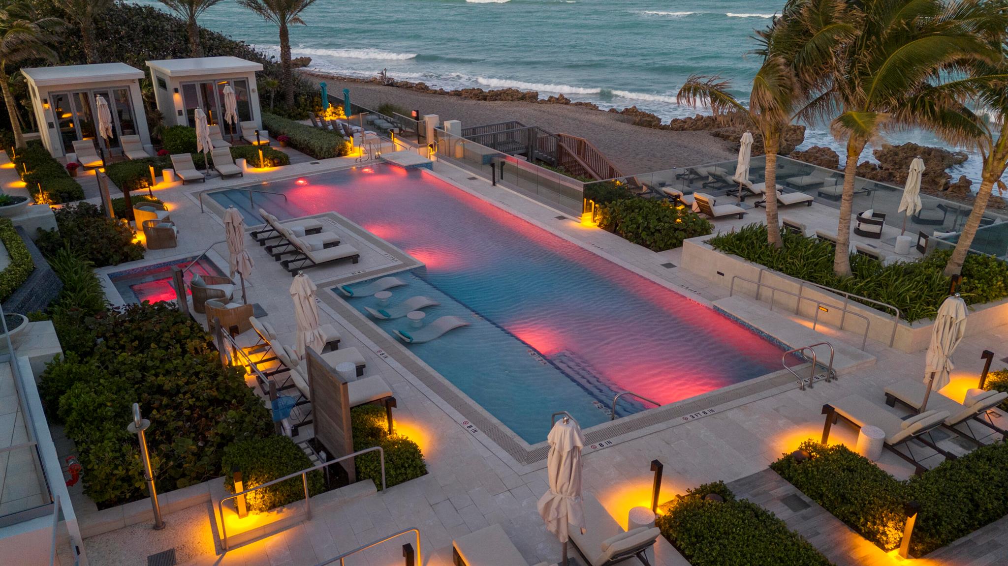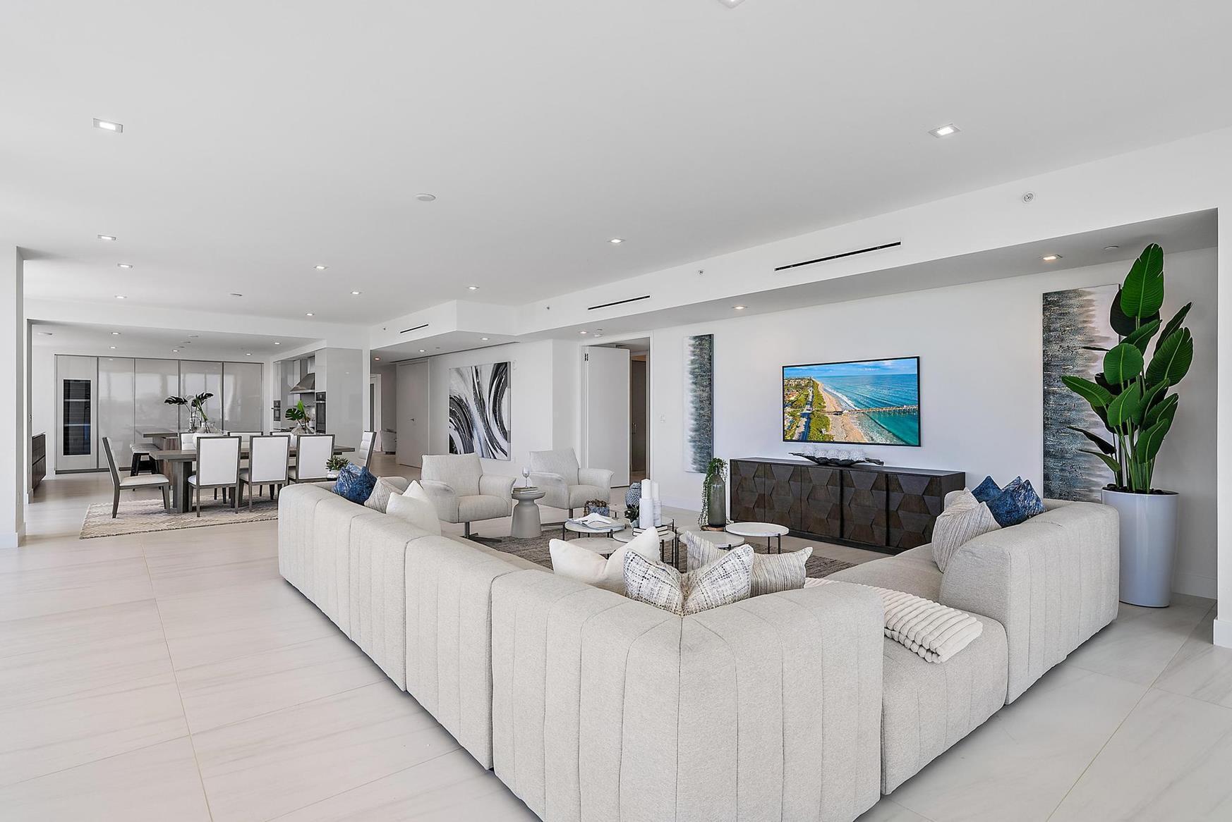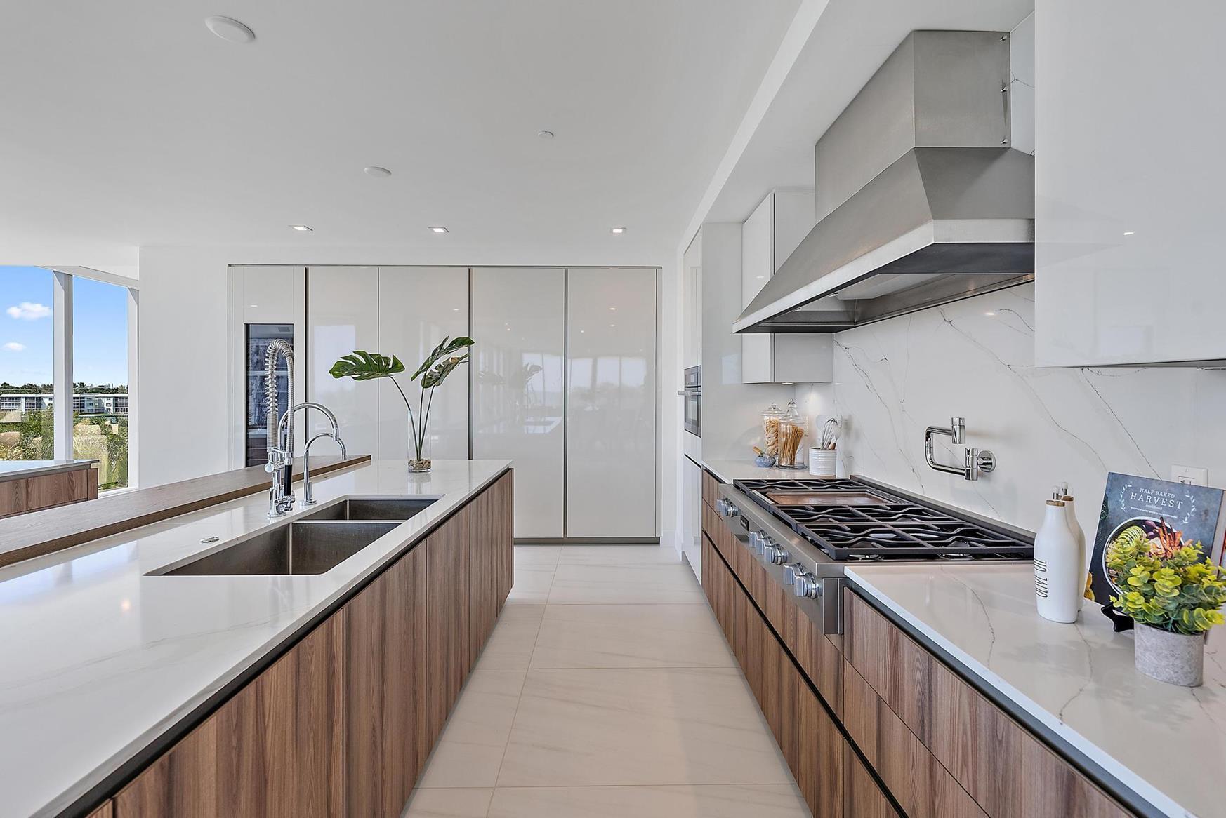 Brand new, never before lived in, this stunning Jupiter Island condo is located in the prestigious SeaGlass on Jupiter Island. Completed in 2022, it boasts unobstructed views of the Atlantic Ocean, the preserve to the South and the Intracoastal Waterway. Highlights include a private elevator and foyer, a separate service elevator, and expansive floor-to-ceiling panoramic windows showcasing the Atlantic Ocean. The high-end kitchen is equipped with a gas range, pot filler, two dishwashers, double wall ovens, and a large kitchen island. Additional features include a laundry room and a spacious wraparound balcony with a private summer kitchen.The thoughtful split floor plan places the primary suite on the ocean side, complete with separate his-and-her bathrooms and closets.