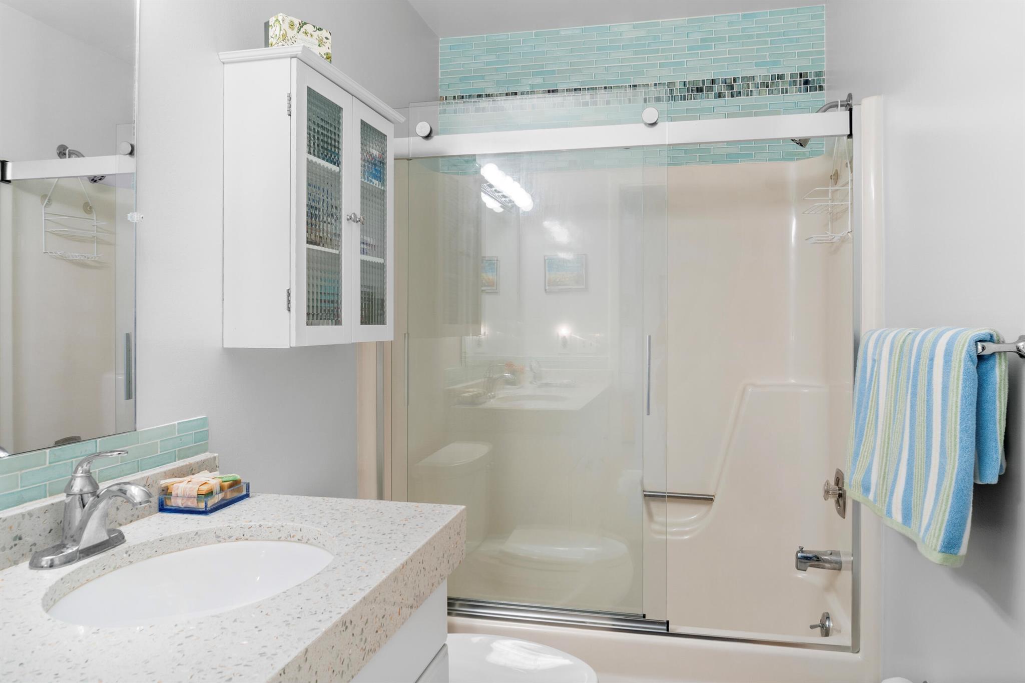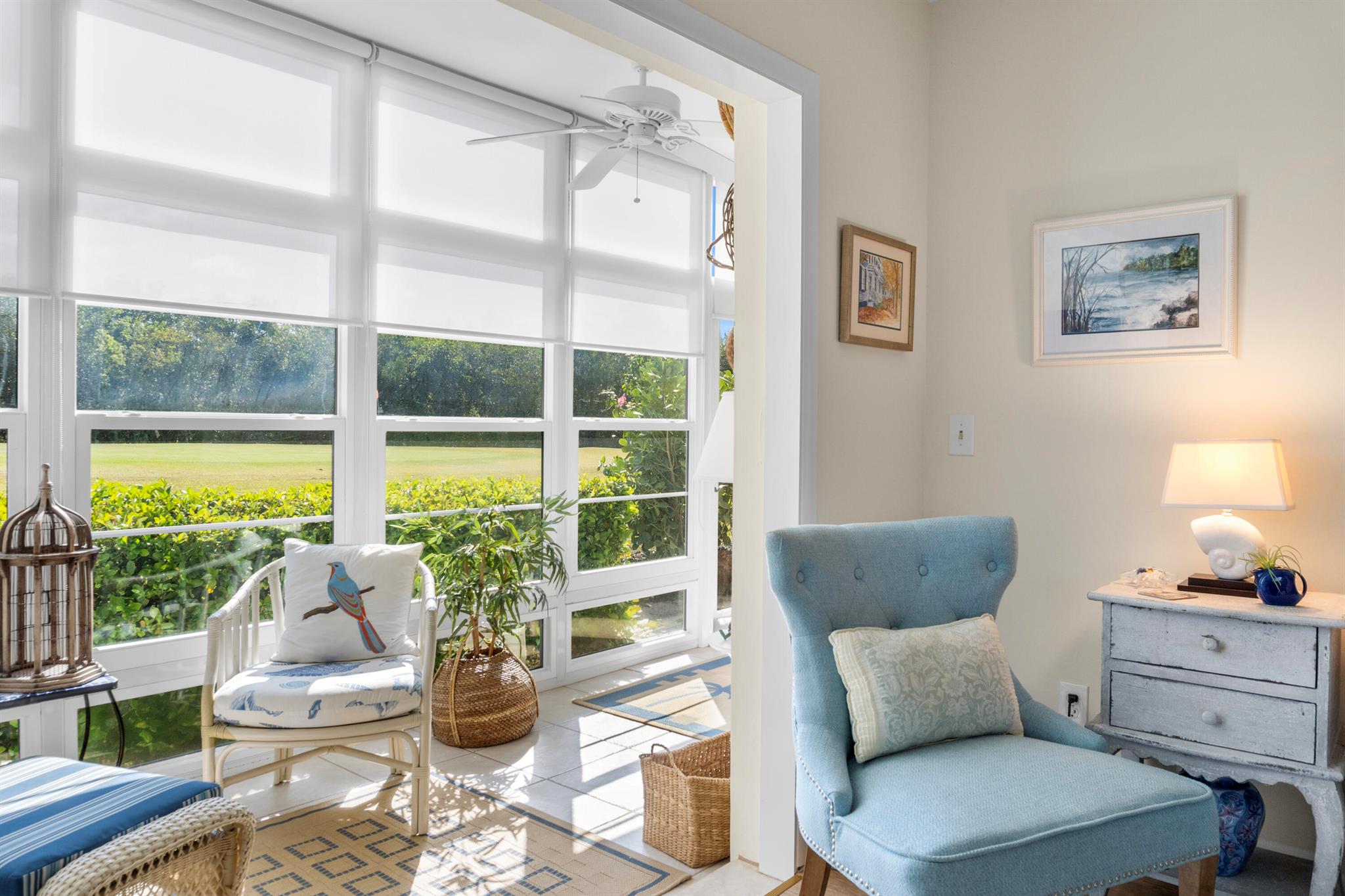 Beautifully updated 1st-floor ''B'' corner unit fully furnished, impact glass thruout. Kitchen boasts sleek quartz countertops, subway tile backsplash, new appliances & oversized opening to the spacious dining/living area. Enjoy new flooring, upgraded lighting fixtures, extra ceiling fans & new custom roll-up shades. Tasteful modern Sunbrella furnishings make this piece of paradise ready to call home. Second bedroom includes a built-in computer/printer workstation to double as an office. Both bathrooms boast stunning glass colored tiles, quartz vanity tops, and beautiful glass shower doors. Situated in the vibrant 55+ community of Vista Gardens enjoy a heated pool, hot tub, tennis courts, gym & more. Less than 15 minutes to beaches & oceanfront dining. New roof coming soon, assessment pai