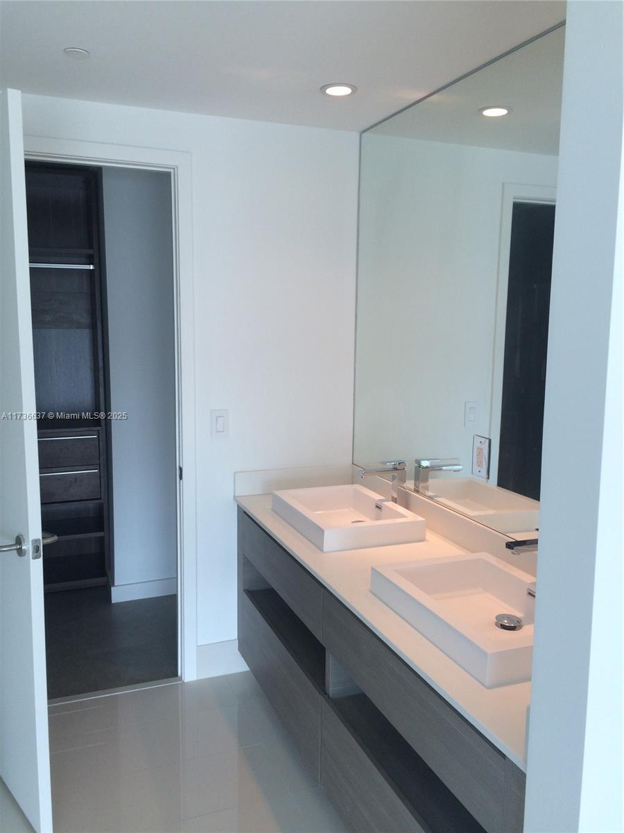 Luxurious Waterfront Living at Icon Bay in Edgewater. Elevate your lifestyle with this exquisite two-bedroom, two-bath condo on the 25th floor of prestigious Icon Bay. This 1,107 sq.ft. unit offers breathtaking, direct views of Miami Bay and the ocean skyline toward Miami Beach, accessed via a private foyer. The floors feature large, modern gray stone-look tiles that are both stylish and durable. The kitchen is equipped with GE Monogram appliances. Icon Bay offers top-tier amenities, including an infinity-edge pool with stunning bay views, a Sky Lounge, a state-of-the-art sauna, a theater room, tennis courts, a 24-hour concierge, and valet parking. Minutes from Wynwood, the Design and Arts Districts, Downtown, and Miami Beach. One assigned parking space included.