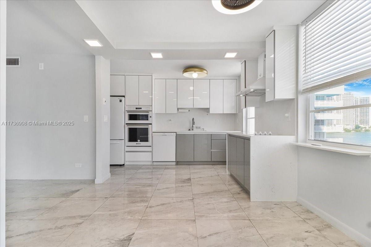 The best Apartment in building. Corner vacant Unit. Almost 2000 s.f. Wide Intracoastal water view from all windows. Beach in 10 min walk Totally renovated and legally reconstructed. Porcelain tile floor, no popcorn, 2full Bdr(3 Bdr), 2 full bath, 2full dens, 1 pantry New doors/locks. L shape balcony 210s.f. Quartz countertop, backsplash, white cooktop, custom Italian acrylic kitchen White high end appliances. Cable, fiber-optic Internet and Total included. All LED lights, spotlights. New 3.5t AC New custom Bathrooms w/one piece toilets. Impact windows WT500 passed 40 years certification. Pool completion in 2025. Parking garage place, storage,24/7 Security,5 new elevators, laundry in. GYM, sauna, play rooms, library, bike room. 10 min to ocean beach. Dogs are welcome. No rent policy but liberal. Close to shops, malls