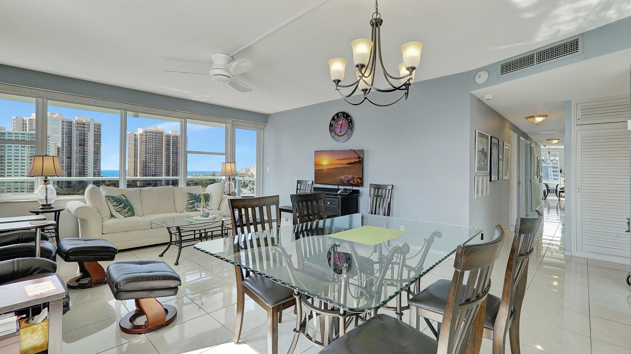 CORNER RESIDENCE - OCEAN VIEWS- FULLY FUNDING RESERVES Move in Ready - fully furnished. Beautiful interior with numerous upgrades. Nicely updated kitchen featuring built-in filtered water system, LED lights, ceiling fan & extra storage. Ceramic tiles floors throughout this apartment. Both bathrooms provide roomy showers. NO UPCOMING ASSESSMENTS IntraCoastal Clubhouse with a brand new dock, gorgeous new outdoor decking, chairs & bbq grills, new roof and raised seawall. Close to restaurants, retail, grocery, entertainment, golf and boating. Full amenity concierge building with porte cochere entrance, heated pool, bocce ball, fitness center, bicycle room on 5 acres resort like setting. 24/7 security, on site management, 55+ community, cash only. There is no land lease.