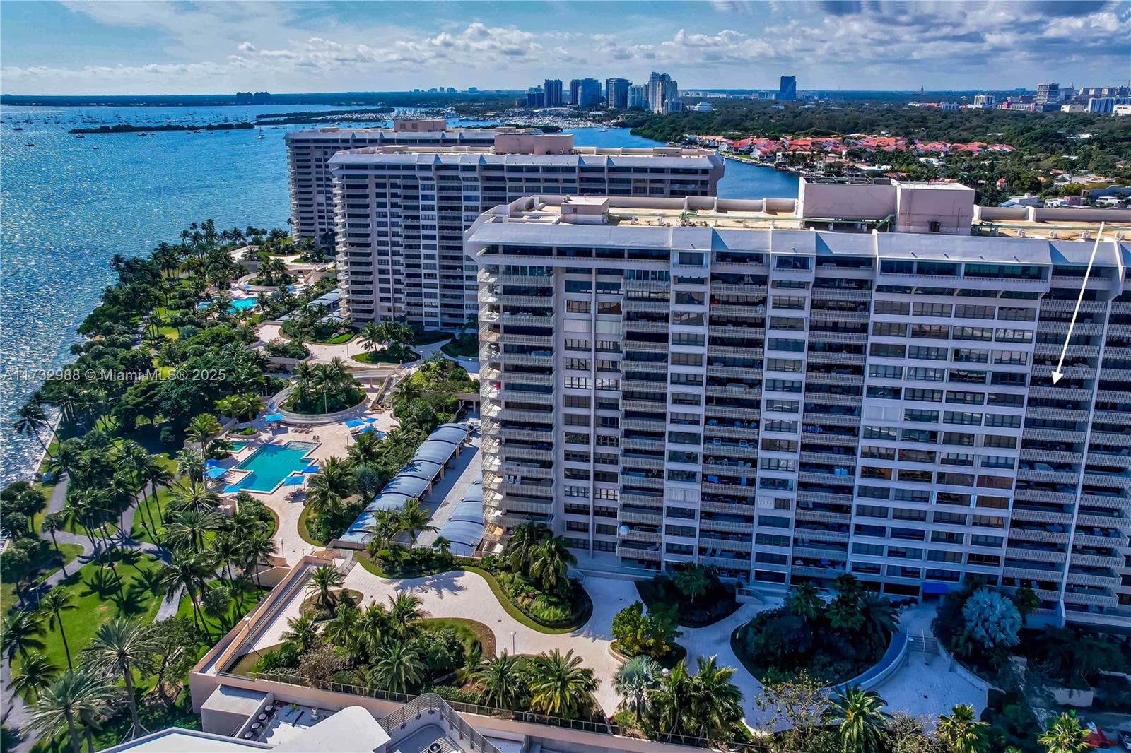 Impeccably designed 2-bedroom, 2-bath 1882 sq ft residence on Grove Isle, a guard-gated island paradise in the heart of Coconut Grove. Sweeping water views of the open bay, Key Biscayne and the glittering Miami skyline. Bathed in natural light, this beautiful home has an open kitchen, sleek porcelain floors, custom built walk-in closets and elegant finishes. Enjoy exclusive, private island security and serenity on Grove Isle, home to a future state-of the art tennis center and signature restaurant. Minutes from Cocowalk, Brickell, Downtown, and Miami International Airport.