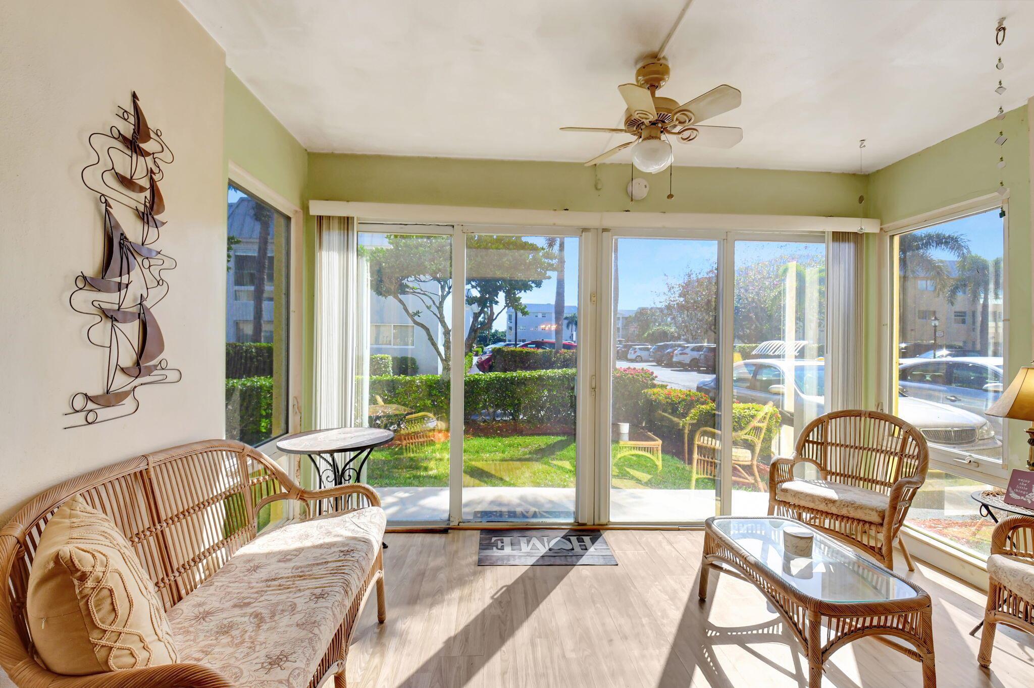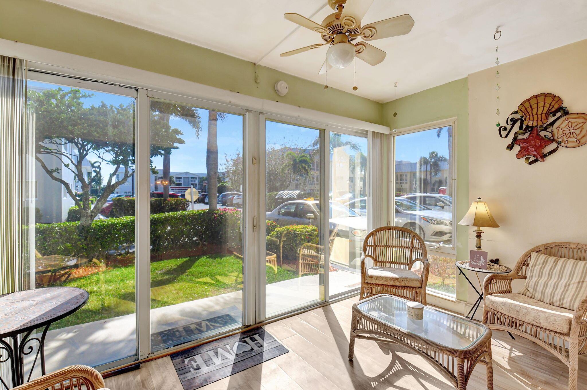 Bring your vision to life in this 1st floor, end corner unit located in the highly desirable Colonial Club, a vibrant 55+ community in Boynton Beach. Enjoy peace of mind with full hurricane impact windows and sliders, a designated parking spot conveniently located just outside the back sliders, and newly installed roofs on all buildings within the community. While a shared laundry room is available in the building, washer and dryers are allowed in the units if you wanted to install one.