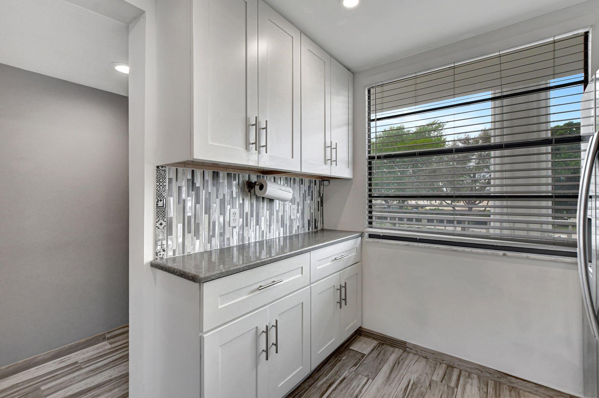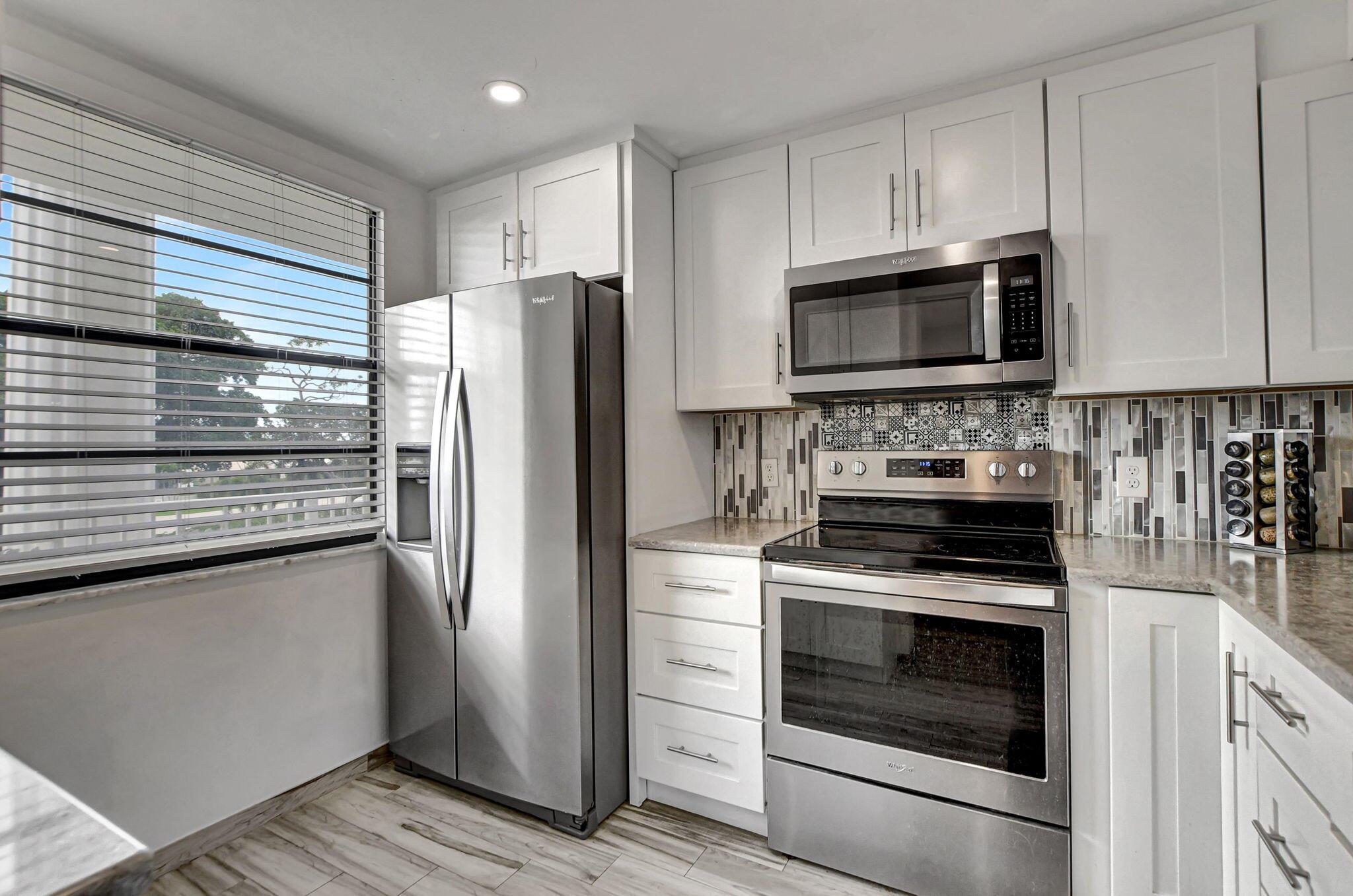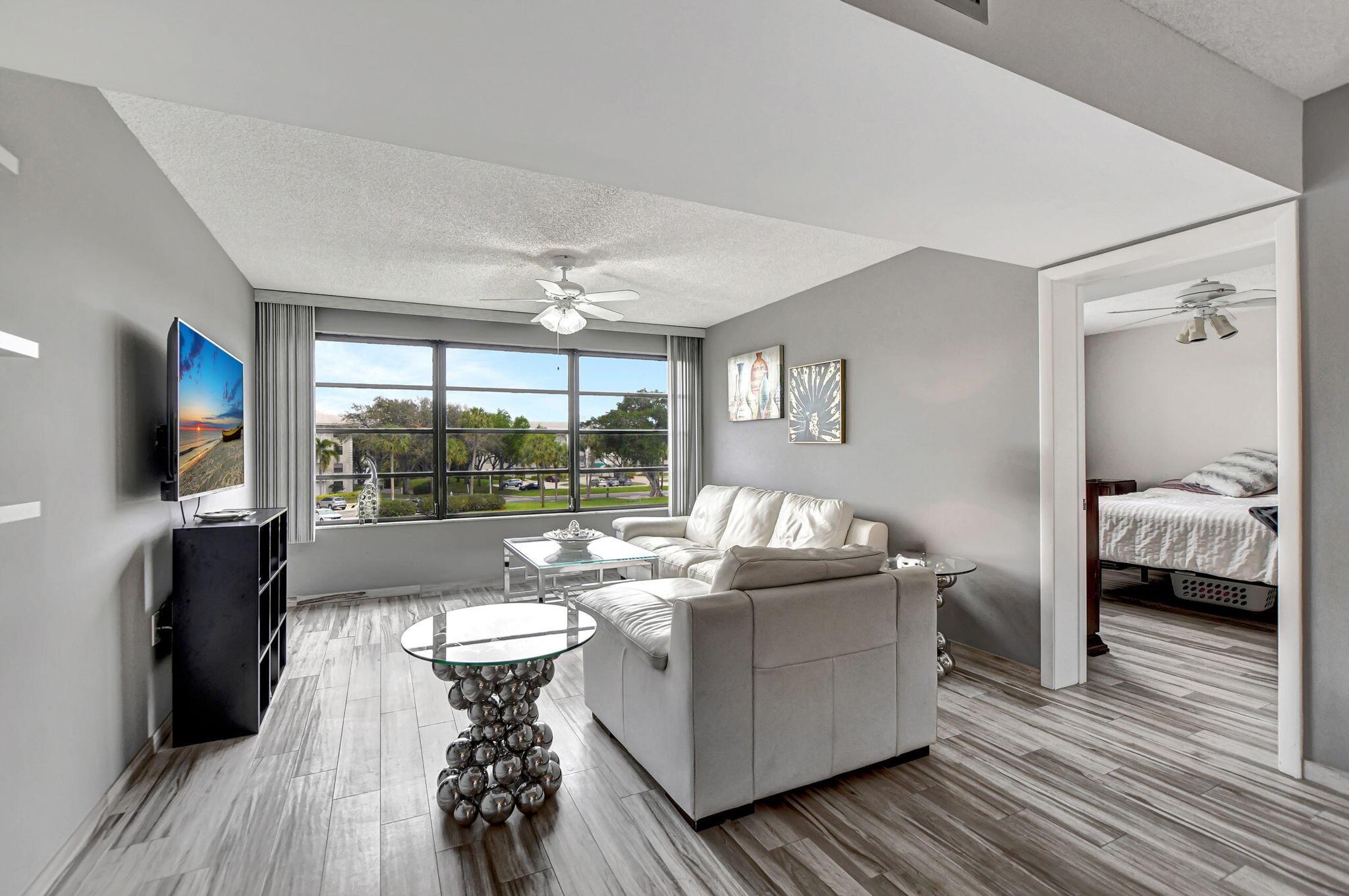 Priced to SELL! MOVE IN READY! Welcome to your exquisite lakeside retreat in the heart of Central Boca Raton, where luxury meets tranquility! This stunning 2-bedroom, 2-bathroom condo boasts panoramic lake views from both the elegant living room and primary suite. Relax in the comfort of a brand-new A/C unit with a transferable warranty, complemented by an oversized washer and dryer for ultimate convenience. The residence features sophisticated ceramic tile throughout, a chef's kitchen adorned with custom cabinetry, and recessed lighting that enhances its charm. Both bathrooms and the kitchen have been tastefully updated, offering a contemporary flair. Freshly painted in calming neutral tones, this home is a canvas ready for your personal touch. Located within A-rated schools