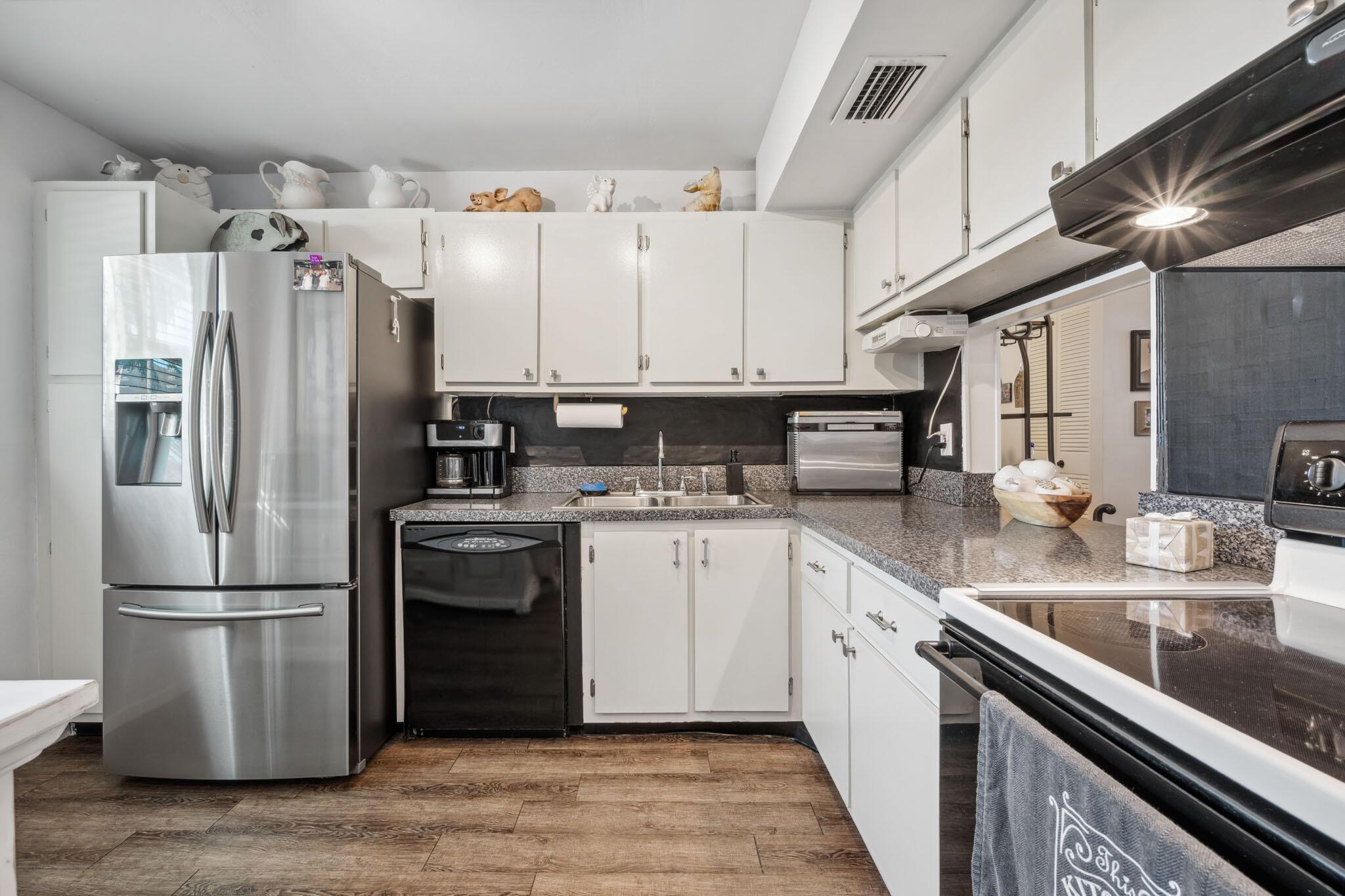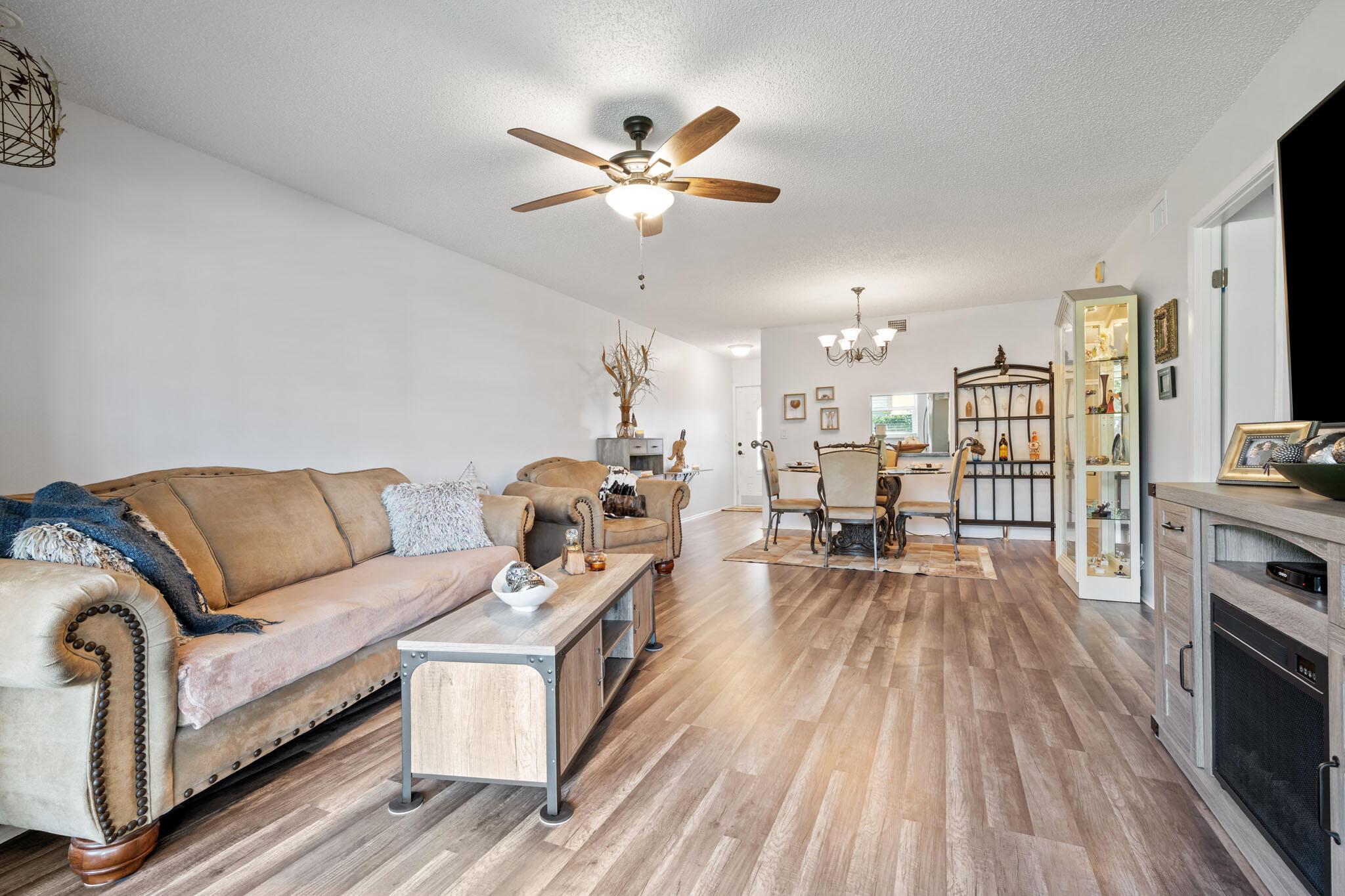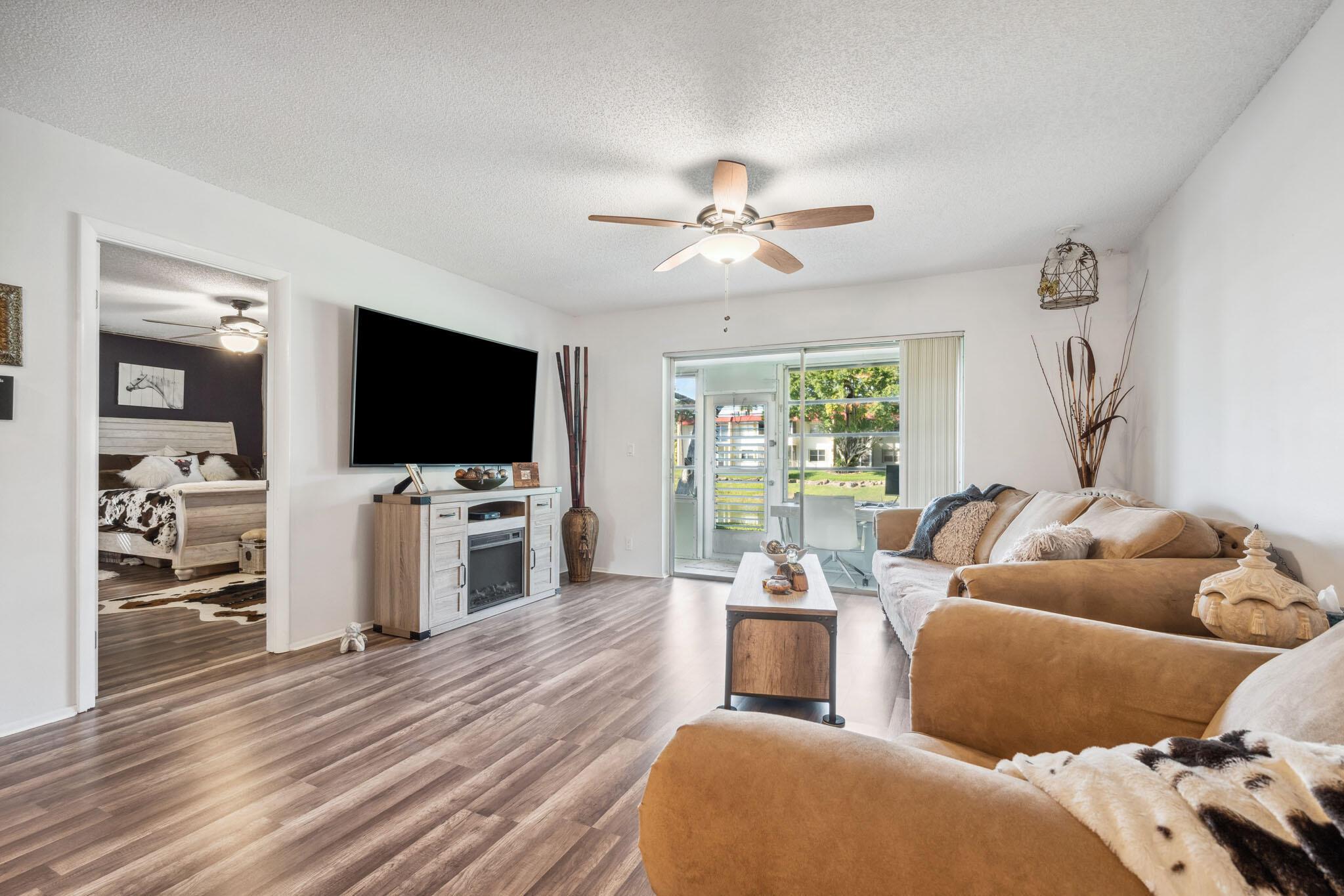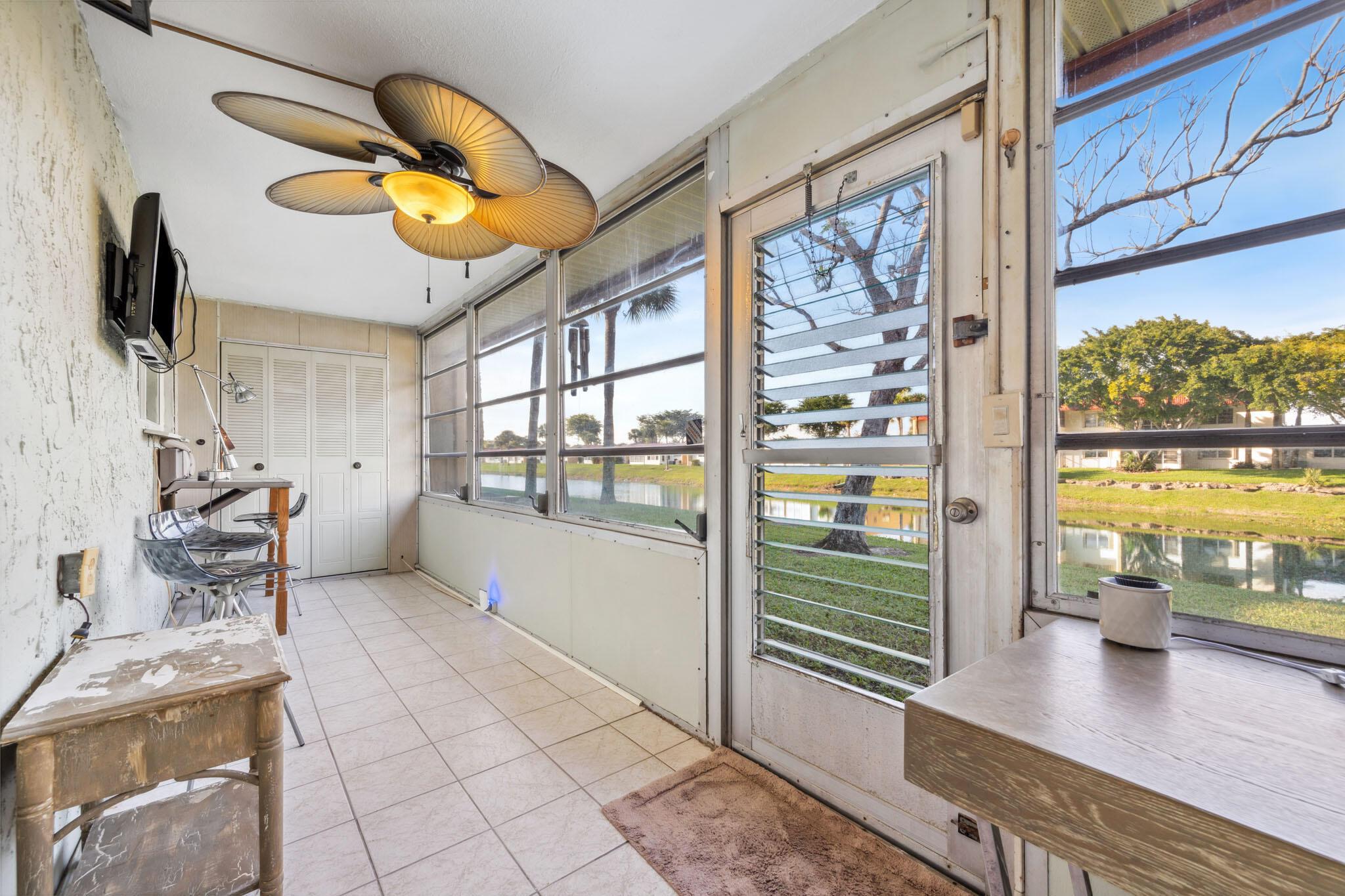 Well maintained Large End unit condo with a water view will not last. This 2 bedroom 2 bath condo with Washer and dryer has been updated with waterproof laminate flooring throughout, Impact glass windows. Large living area with enclosed porch across the back facing water. Porch has an extra storage room. Large master bedroom and bath.Golden Lakes is a very active 55+ community with 2 Olympic pools, Jacuzzi, Saunas, Shuffleboard, Tennis Courts, Bacce Ball, Fitness Center, Game Room, Billiards, Table Tennis, Free bus service to shopping areas and banks. 2 cats allowed and documented service dogs only.