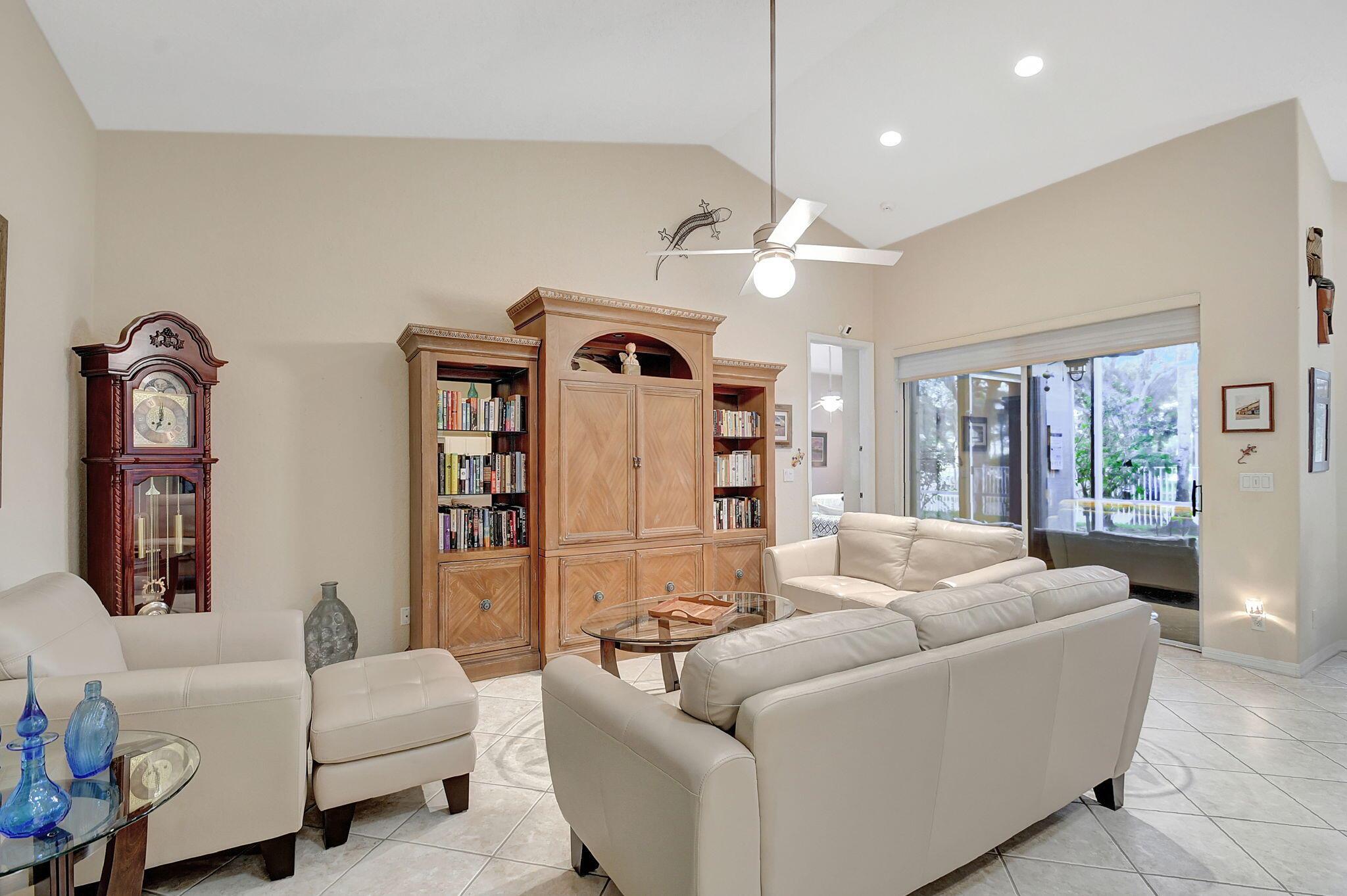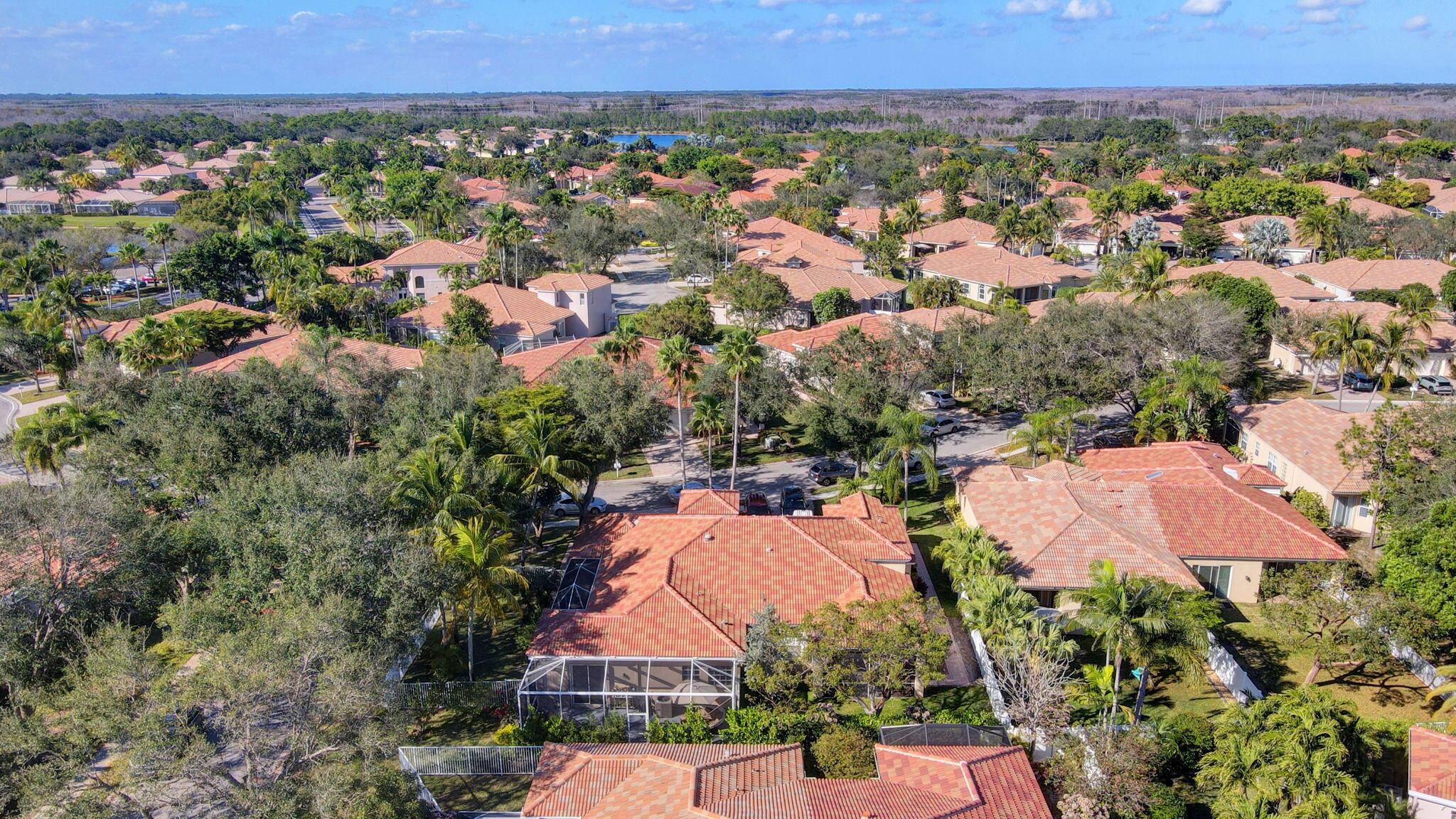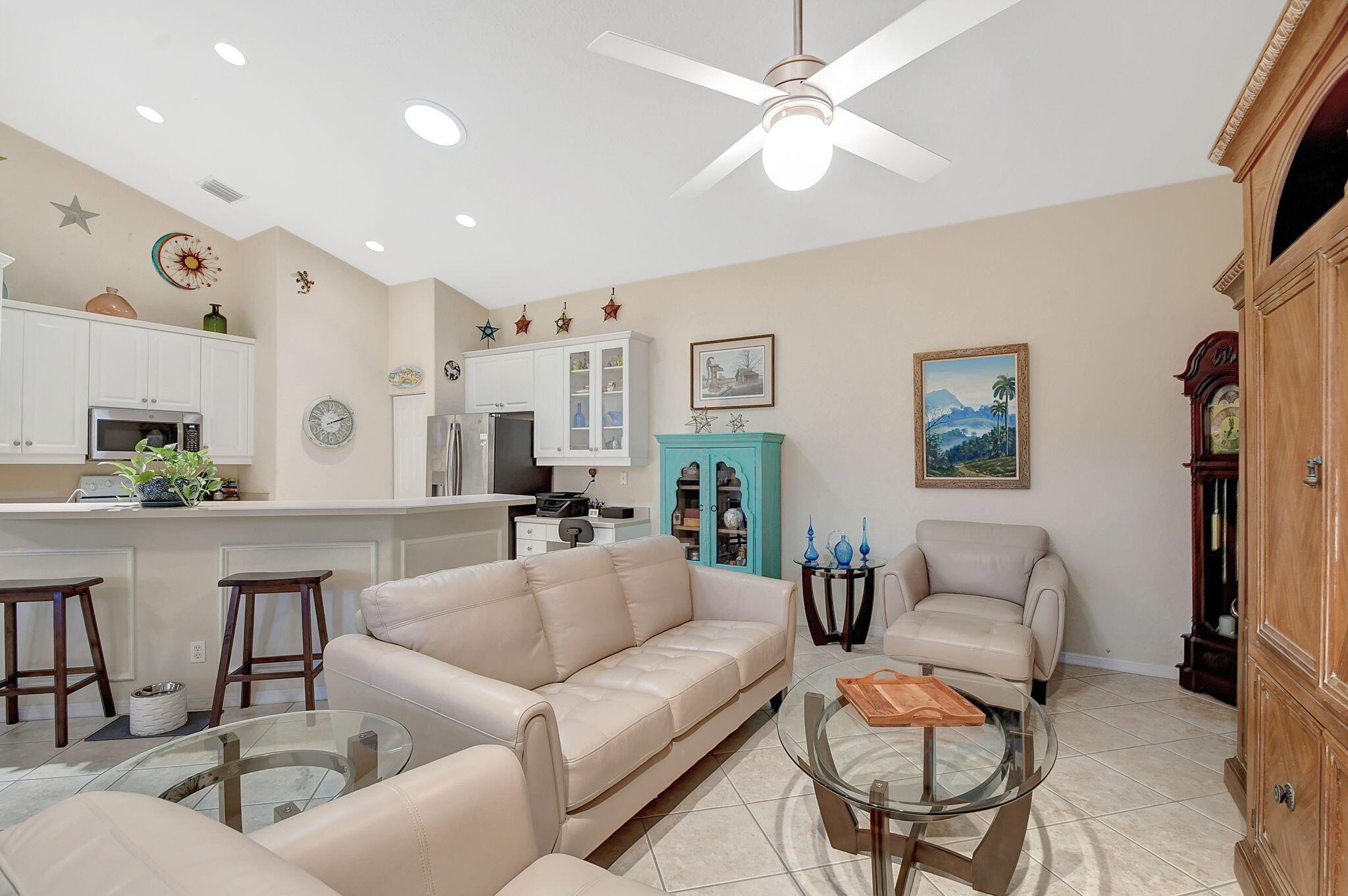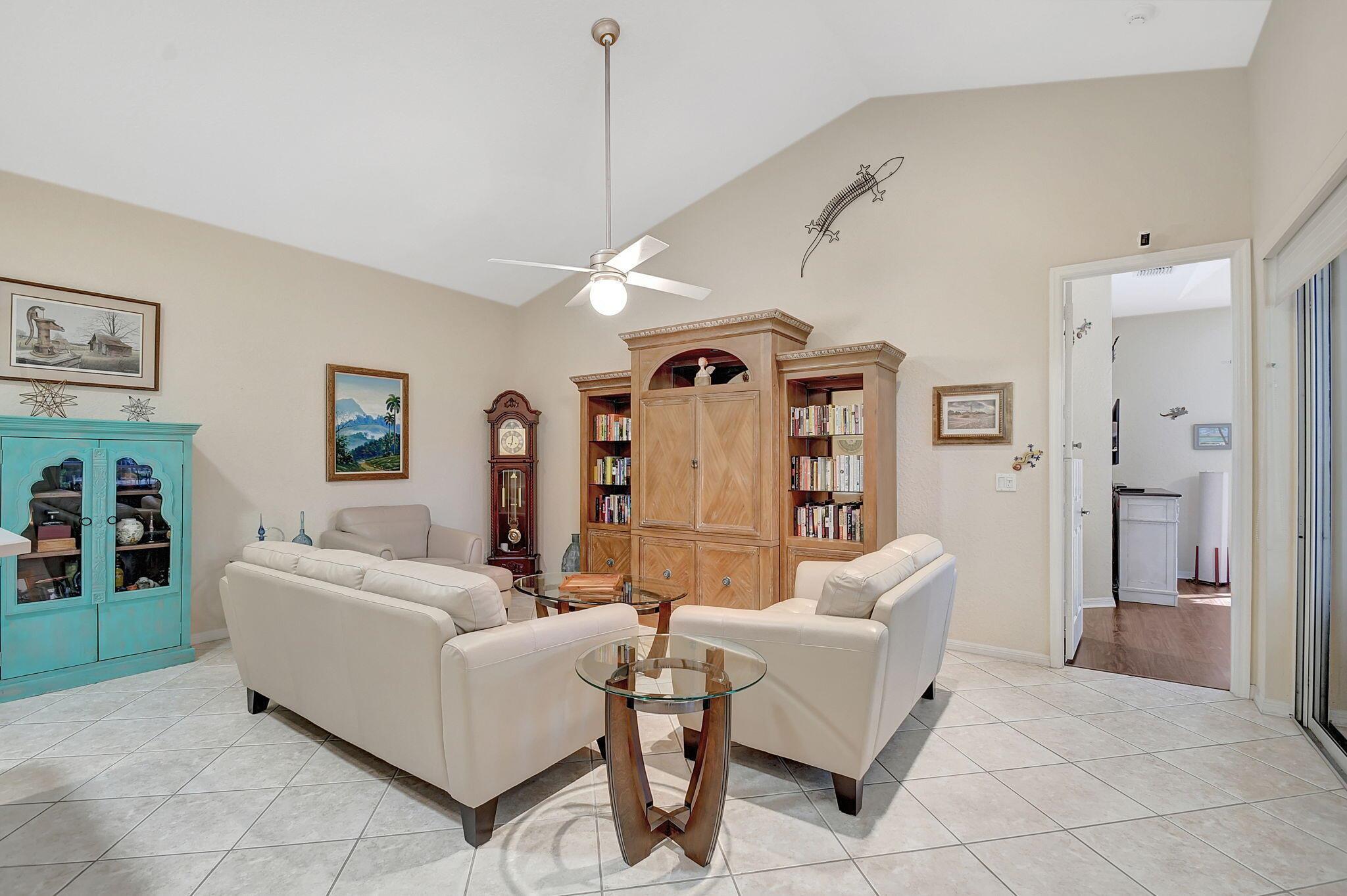 Beautifully maintained and loved home, pride in ownership here! Light and bright with many great features! 2 screen enclosed patios for additional living space, great for entertaining , relaxing and enjoying. High vaulted ceilings with sky light and recessed lighting. Water filtration system. High-end LG washer & dryer. Newer roof and AC. Accordion shutters. Large spacious en suite off primary bedroom that boasts a huge walk in closet. Nice corner fenced in lot, with beautiful mature trees and plants. Brick paver driveway. HOA includes basic cable, alarm system, WIFI, internet, lawn maintenance and a resort style clubhouse with lots of amenities and activities all within close walking distance from the house. Close to so many restaurants, shops, PBI, turnpike and beach less than 10 miles!