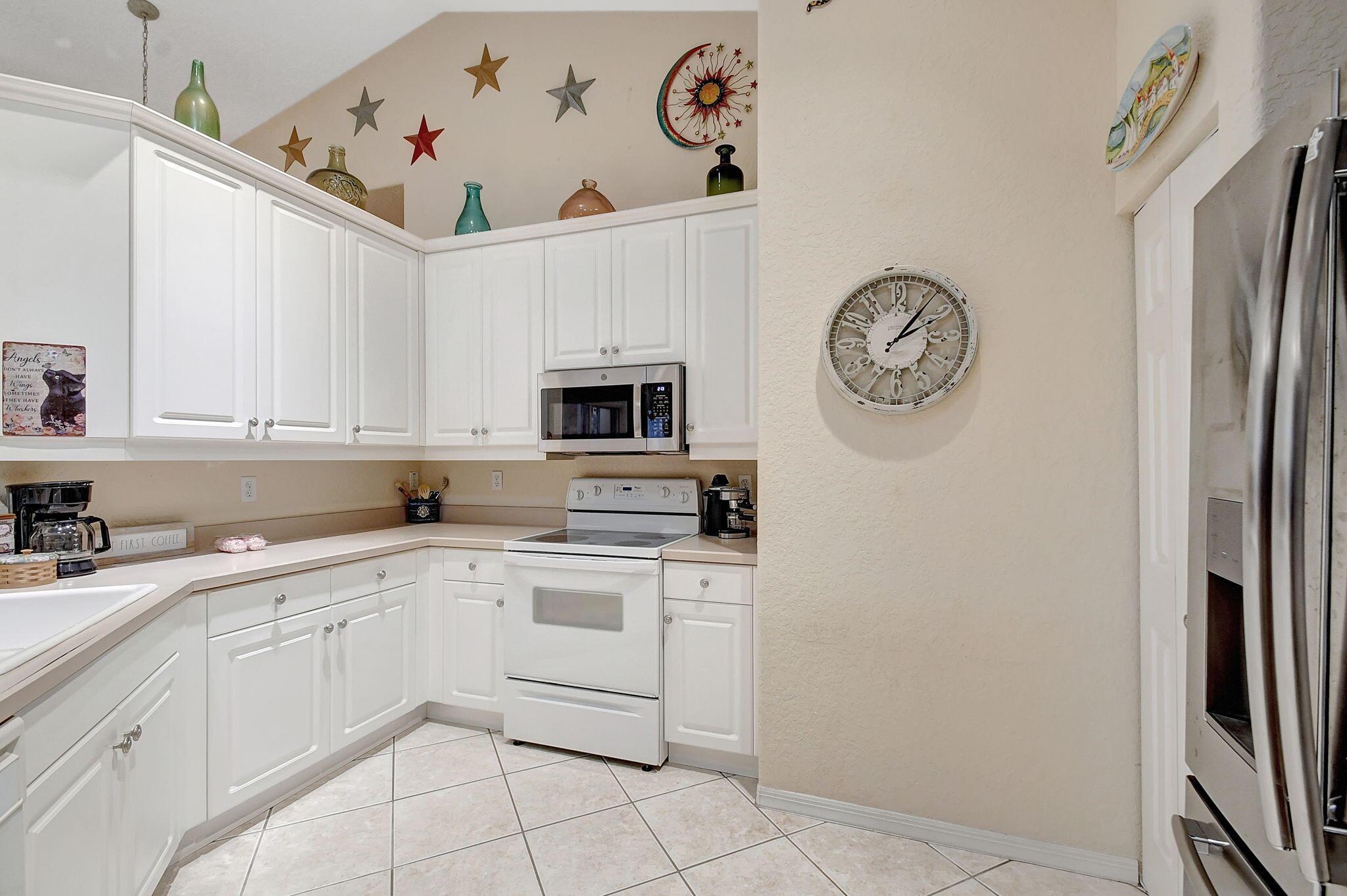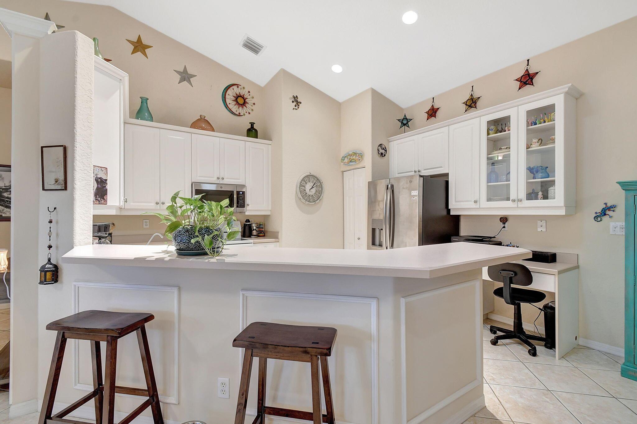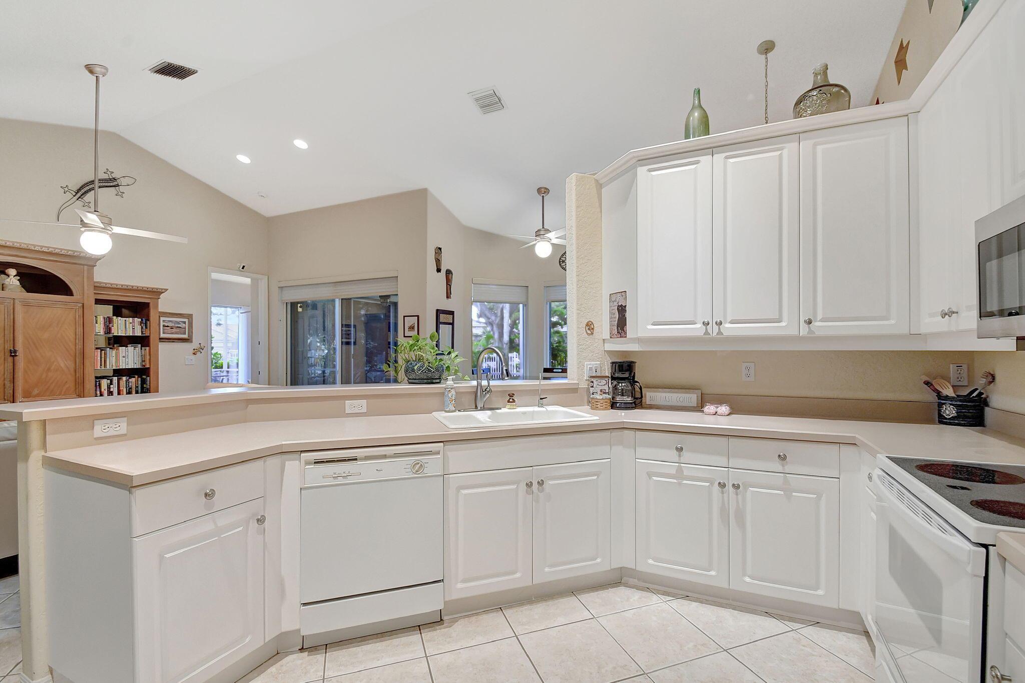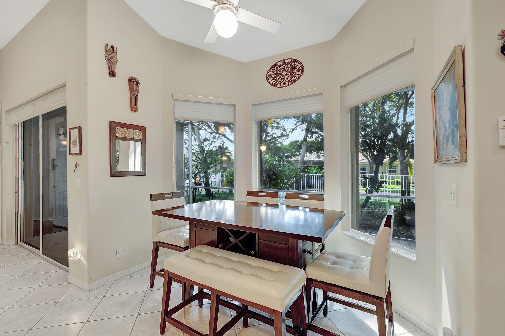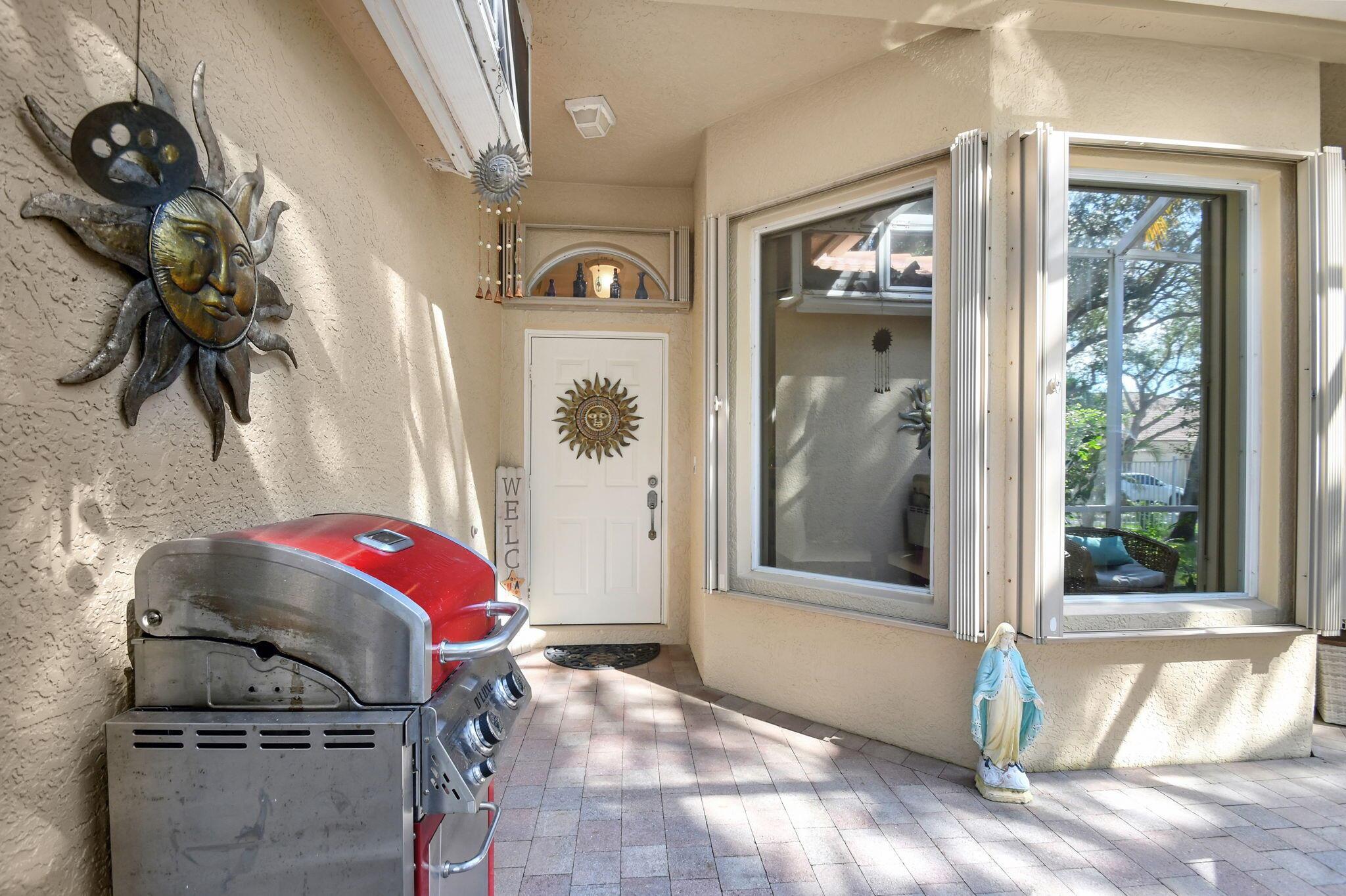 Beautifully maintained and loved home, pride in ownership here! Light and bright with many great features! 2 screen enclosed patios for additional living space, great for entertaining , relaxing and enjoying. High vaulted ceilings with sky light and recessed lighting. Water filtration system. High-end LG washer & dryer. Newer roof and AC. Accordion shutters. Large spacious en suite off primary bedroom that boasts a huge walk in closet. Nice corner fenced in lot, with beautiful mature trees and plants. Brick paver driveway. HOA includes basic cable, alarm system, WIFI, internet, lawn maintenance and a resort style clubhouse with lots of amenities and activities all within close walking distance from the house. Close to so many restaurants, shops, PBI, turnpike and beach less than 10 miles!