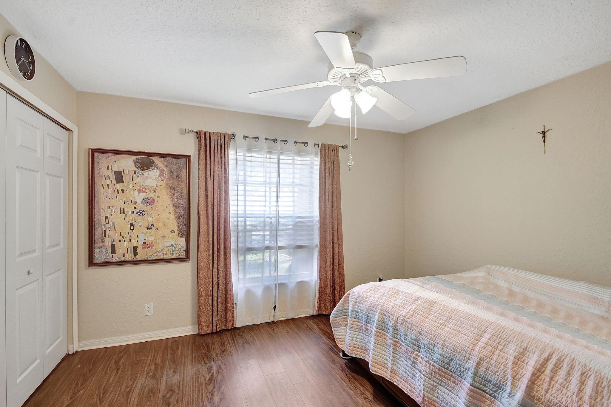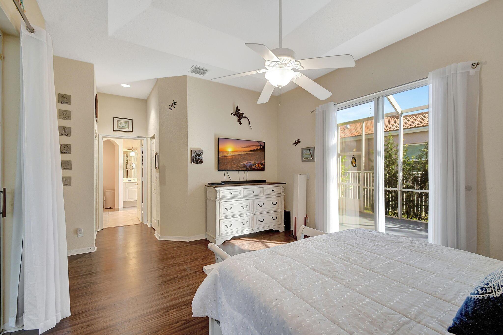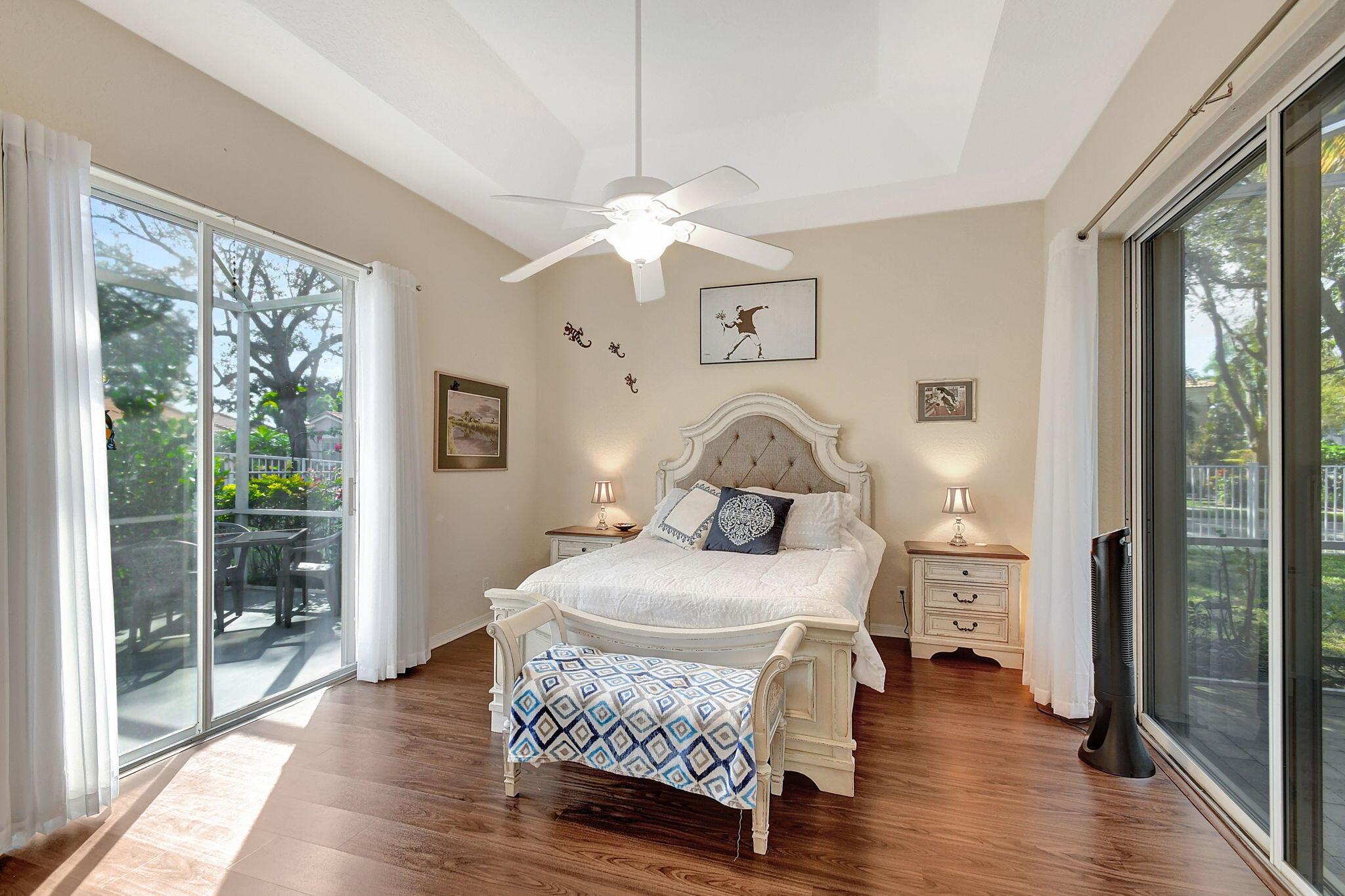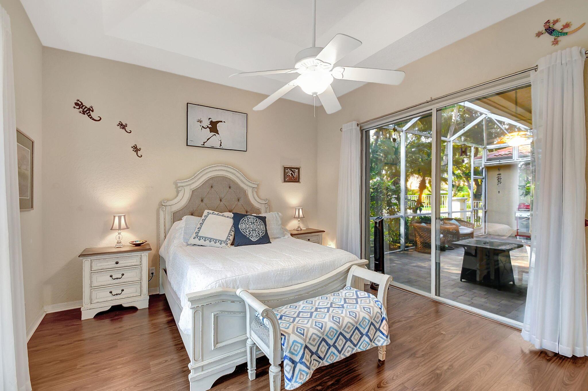 Beautifully maintained and loved home, pride in ownership here! Light and bright with many great features! 2 screen enclosed patios for additional living space, great for entertaining , relaxing and enjoying. High vaulted ceilings with sky light and recessed lighting. Water filtration system. High-end LG washer & dryer. Newer roof and AC. Accordion shutters. Large spacious en suite off primary bedroom that boasts a huge walk in closet. Nice corner fenced in lot, with beautiful mature trees and plants. Brick paver driveway. HOA includes basic cable, alarm system, WIFI, internet, lawn maintenance and a resort style clubhouse with lots of amenities and activities all within close walking distance from the house. Close to so many restaurants, shops, PBI, turnpike and beach less than 10 miles!